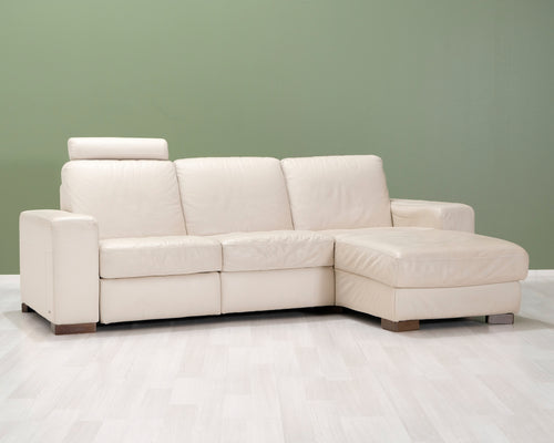 3-istuttava nahkasohva divaanilla luonnonvalkoinen