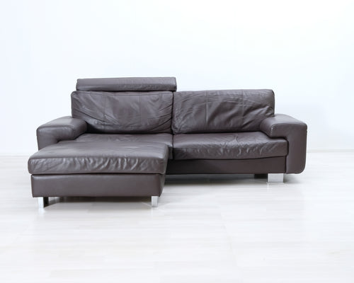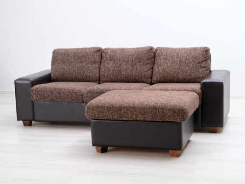 3-istuttava nahkasohva ja rahi ruskea