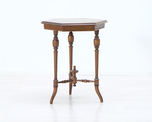Antiikkinen sivupöytä kuusikulmaisella pöytälevyllä