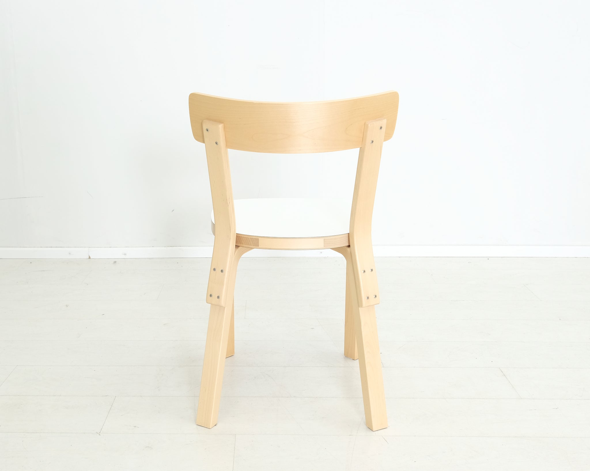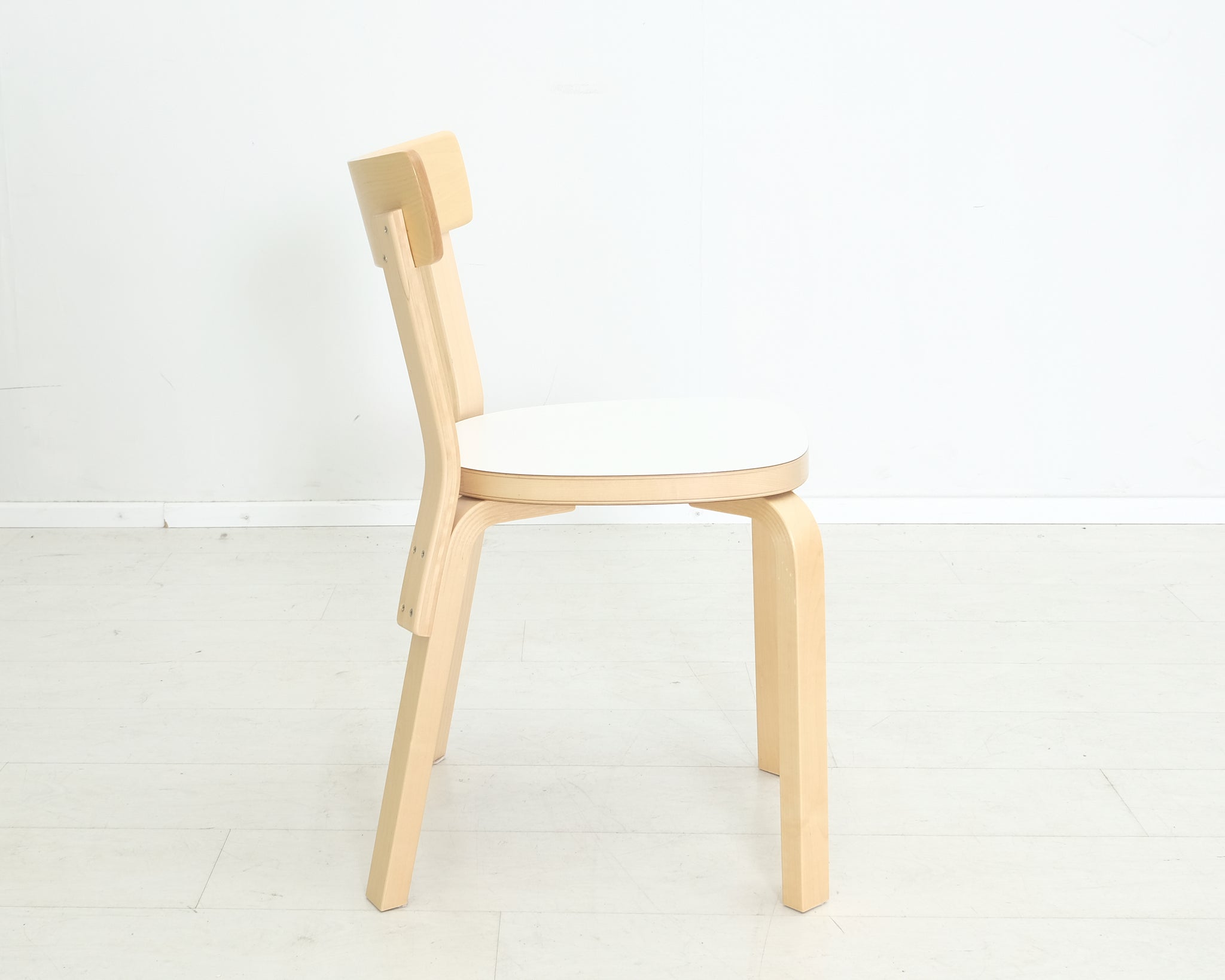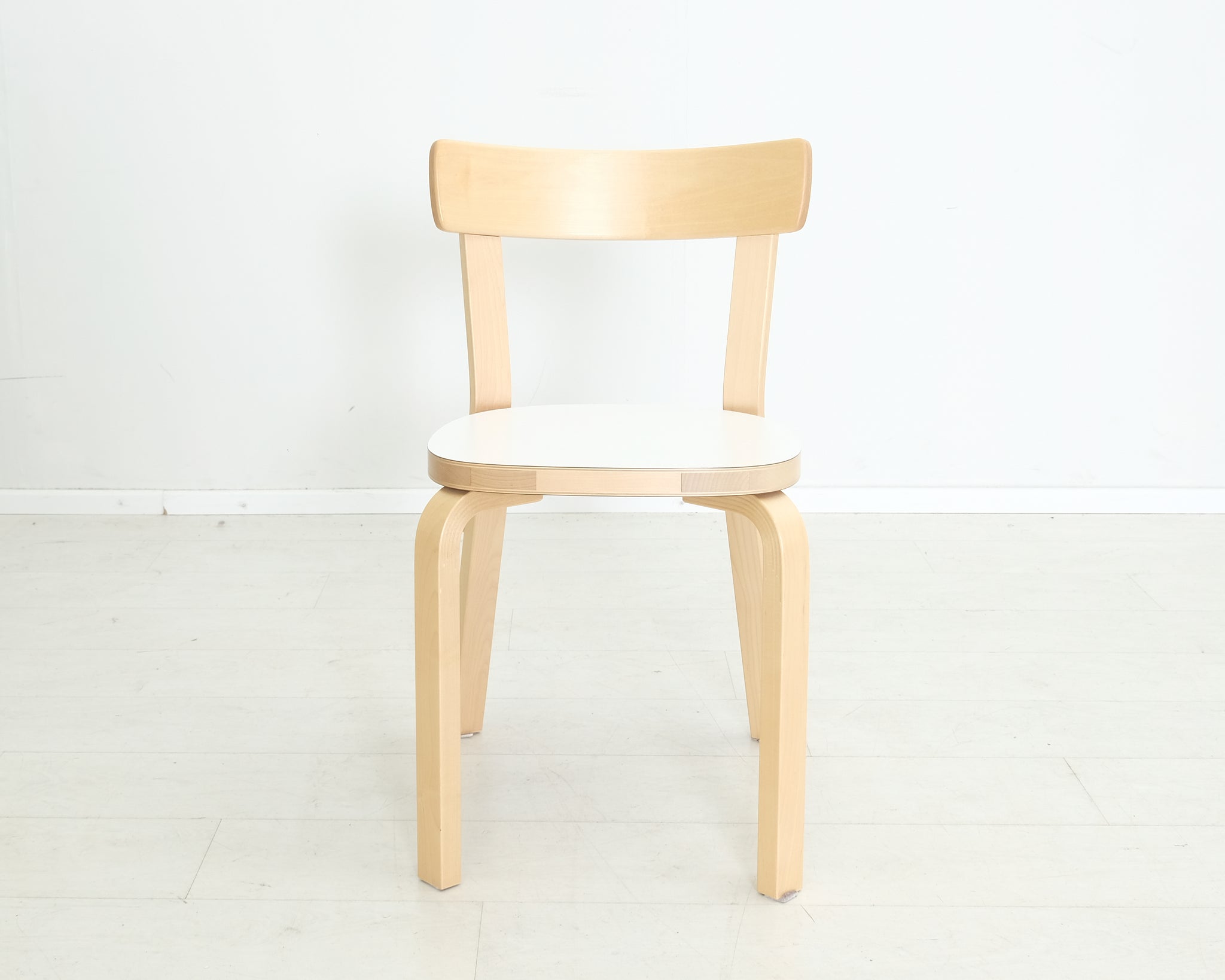 Artekin 69-malli kuuluu Alvar Aallon suunnittelemiin suosikkituoleihin. Ruokatuoli on klassikko vuodelta 1935. Jalkarakenteena on käytetty Aallon kuuluisia, tunnuksenomaisia L-jalkoja. Tuoli on tukeva ja hyvä istua. Valkoinen laminaatti istuinosassa.