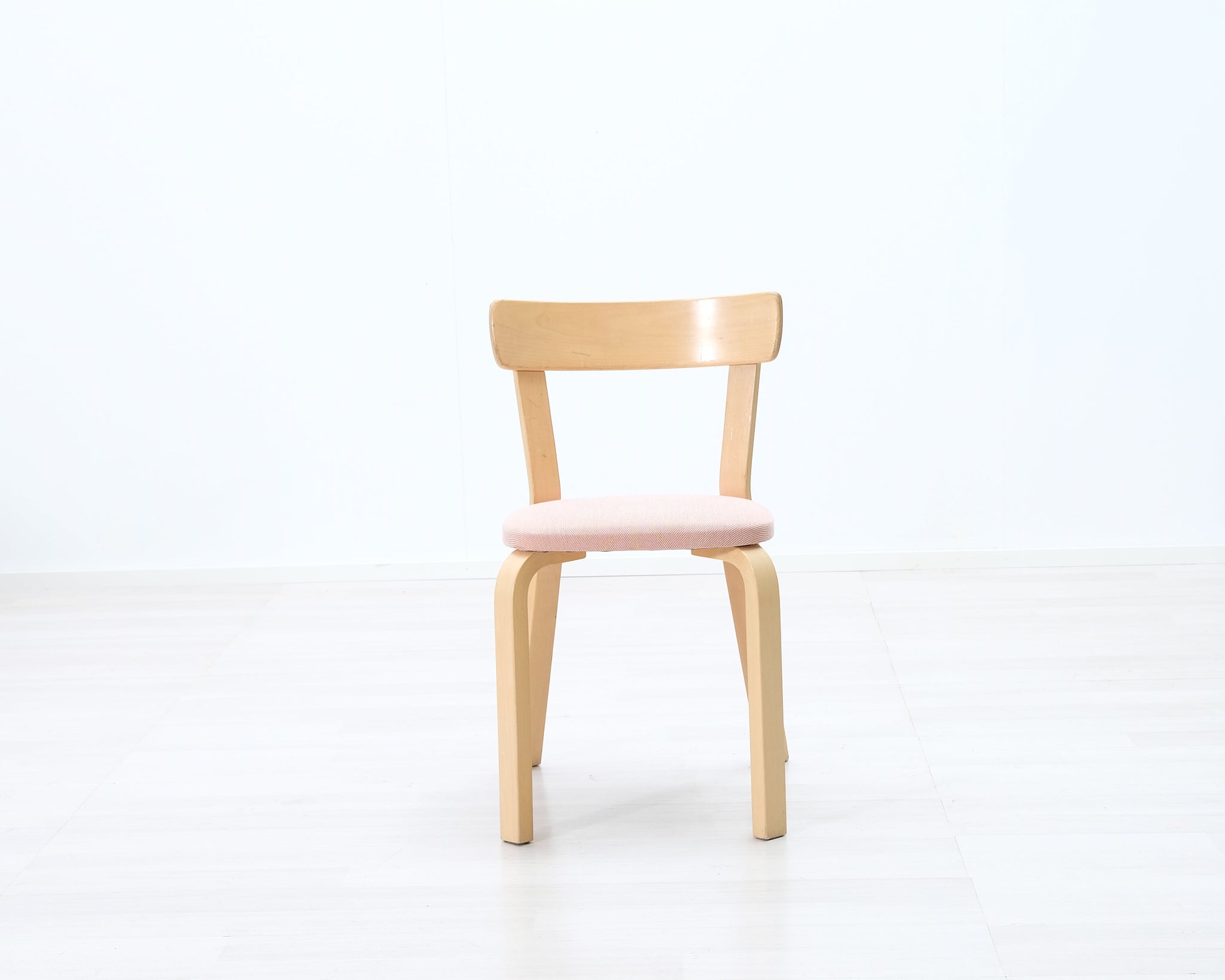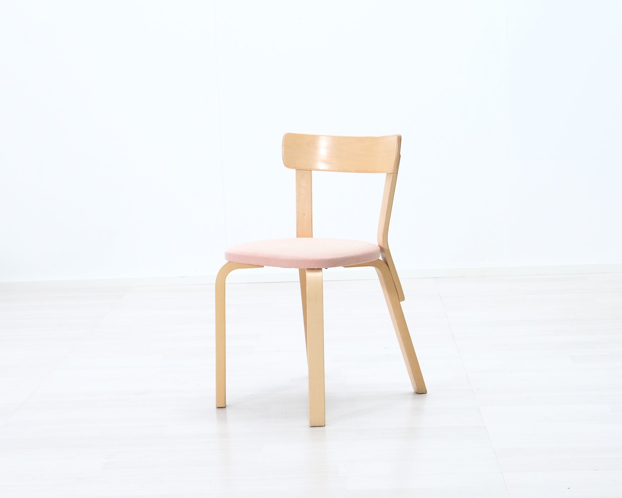 Alvar Aallon Artekille suunnittelema tuoli 69 on todellinen klassikko. Vuonna 1935 suunnitellussa tuolissa on leveämpi selkänoja ja istuin. Tämän vuoksi tuoli sopii mainiosti niin ruokailuun kuin työskentelyyn. Tuolissa on patentoidut L-jalat ja kangasistuin.