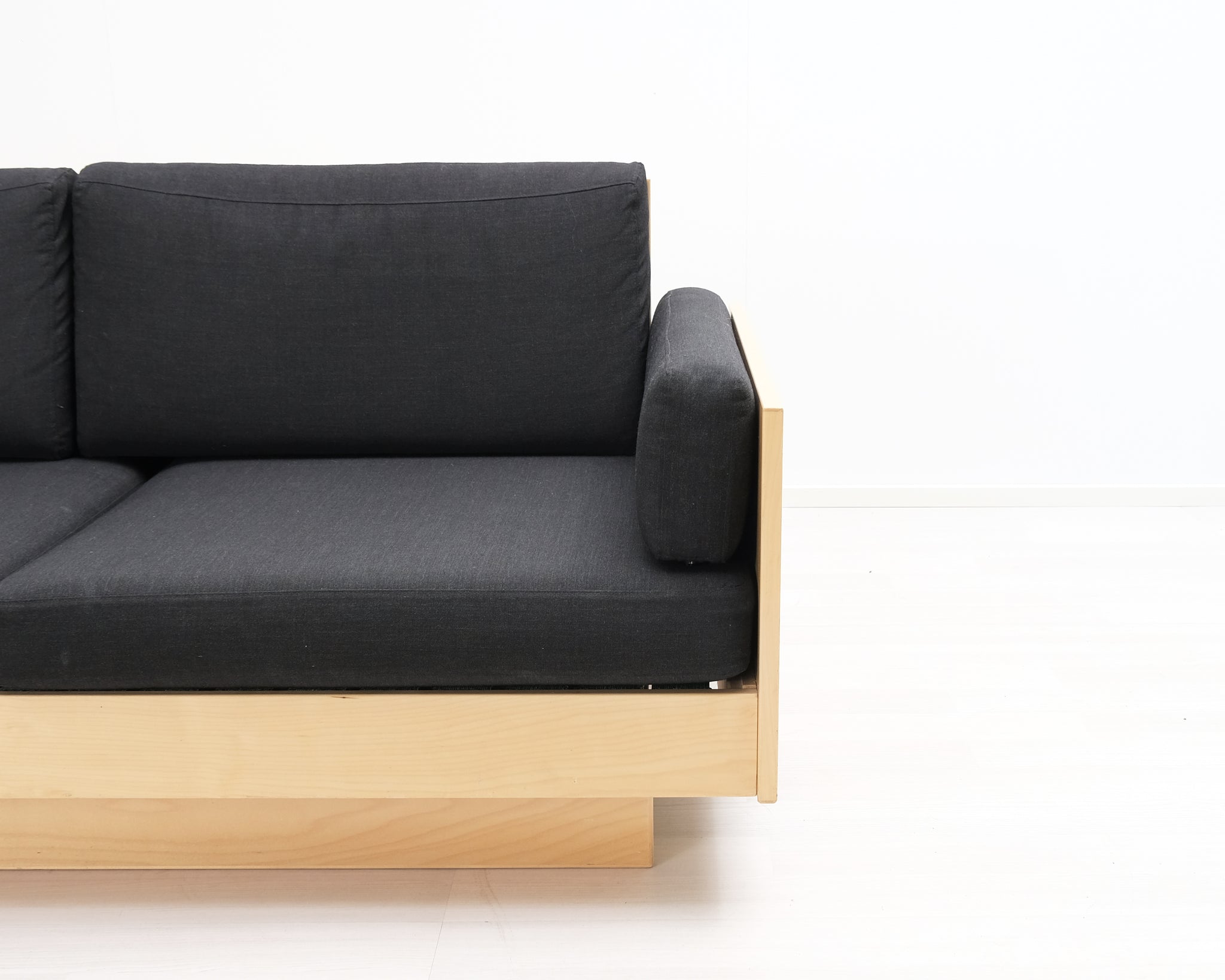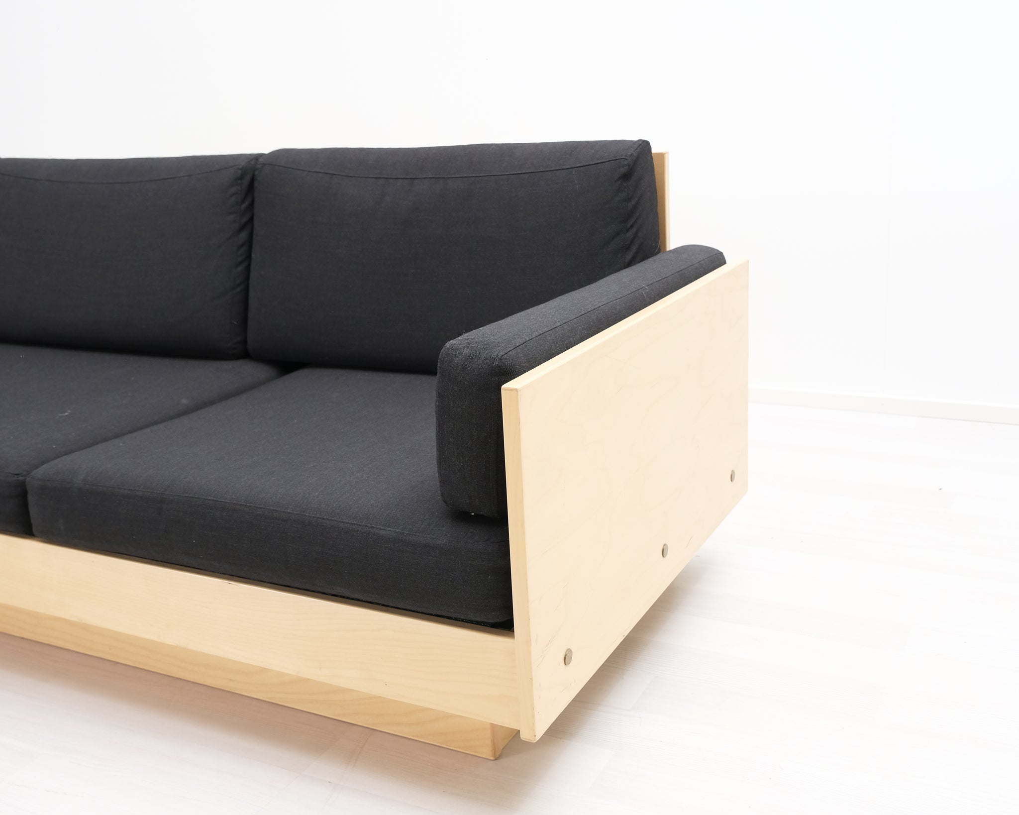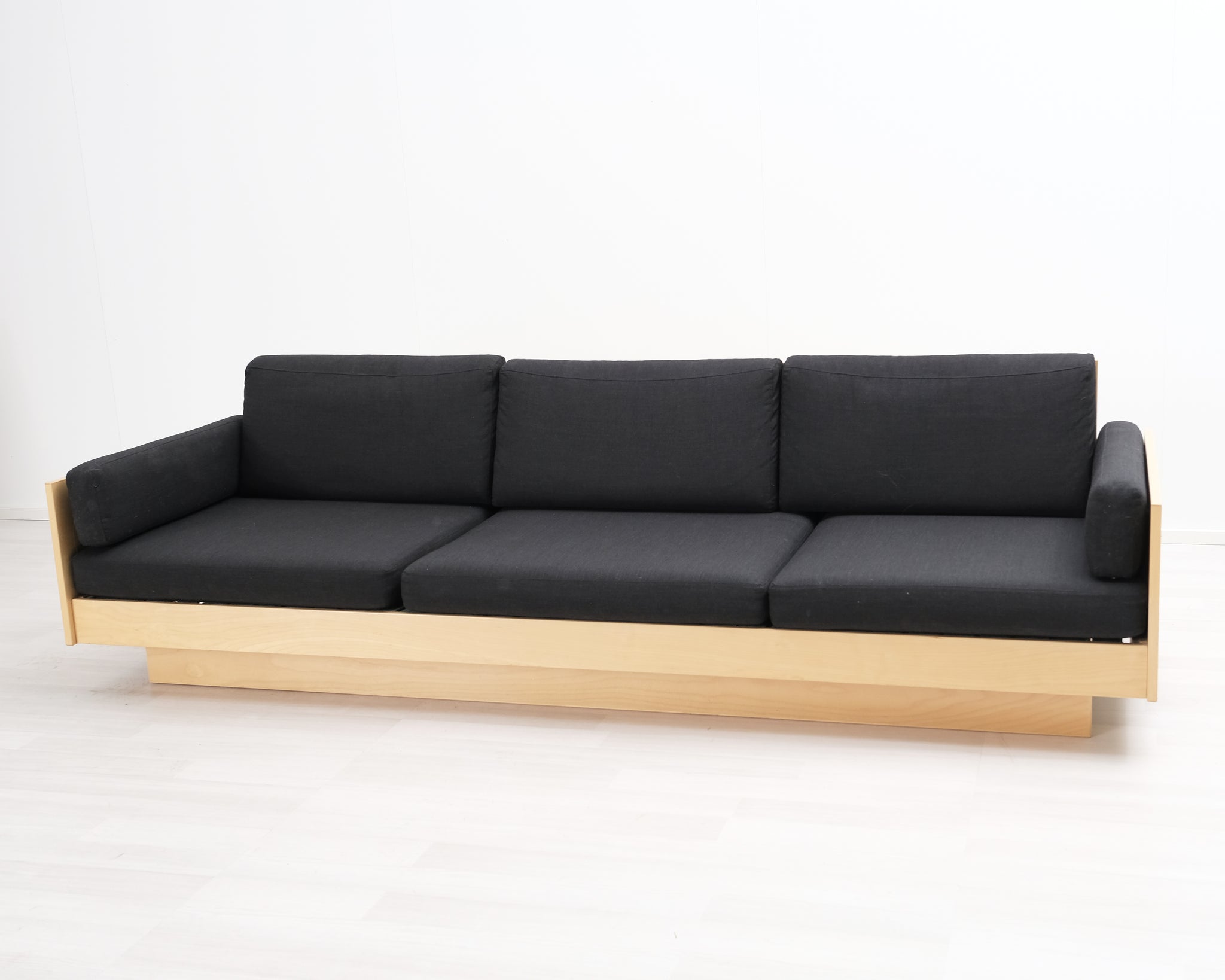 Ben af Schulténin Artekille suunnittelema, upea puurunkoinen sohva. Todella tunnistettava kappale suomalaista designia. Alkuperäinen niskatuki poistettu. Musta verhoilu.