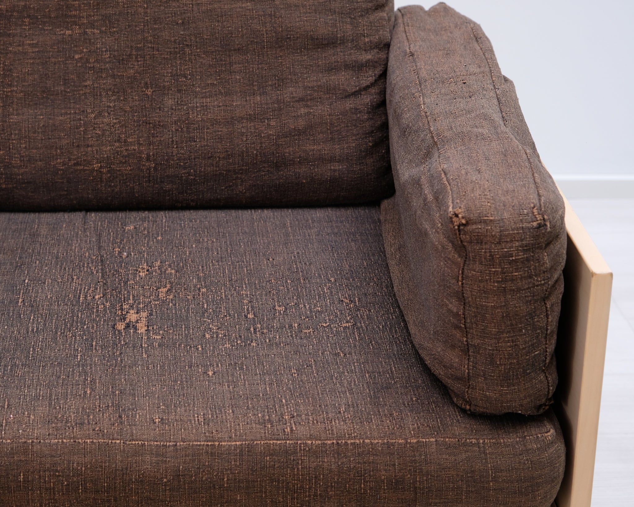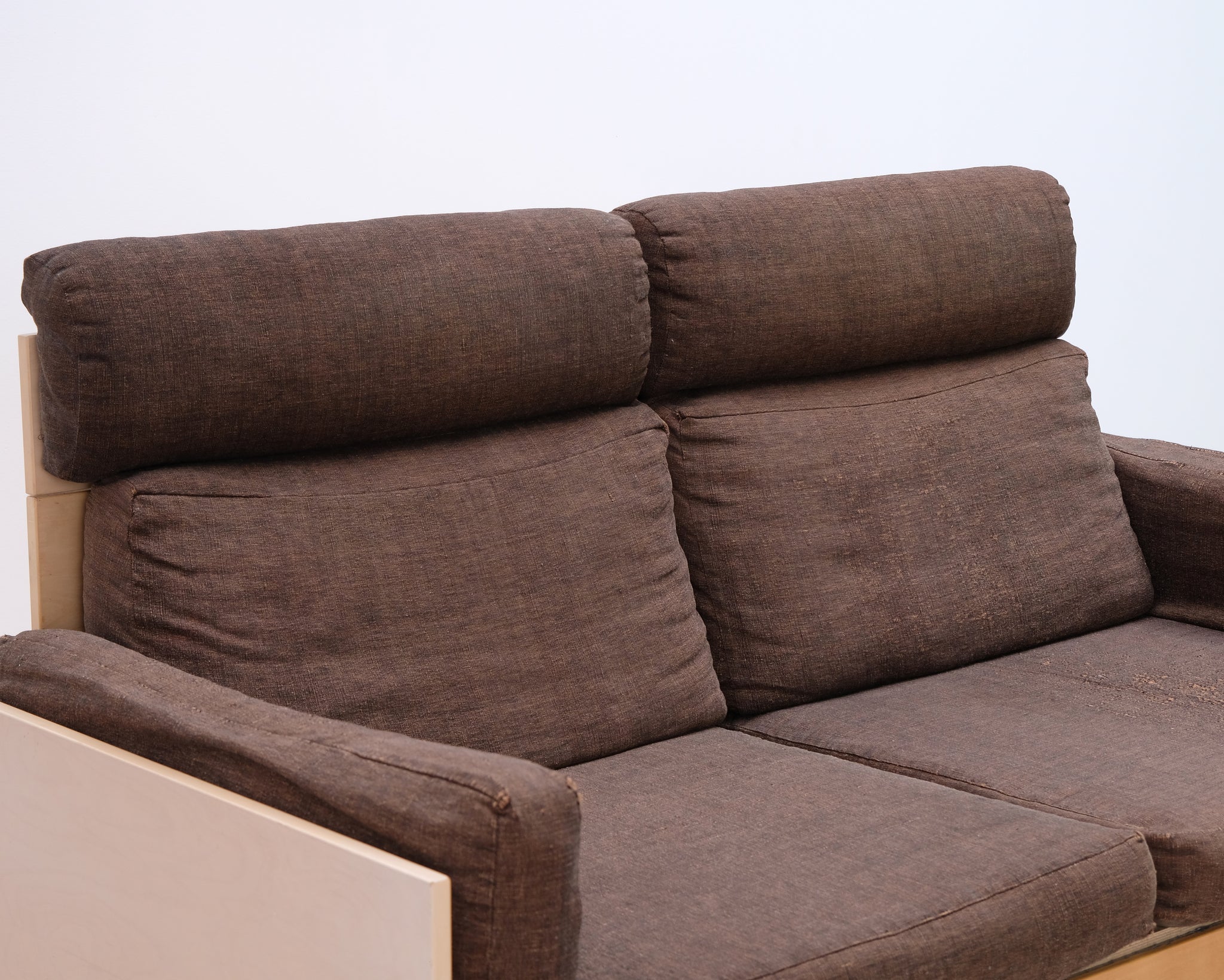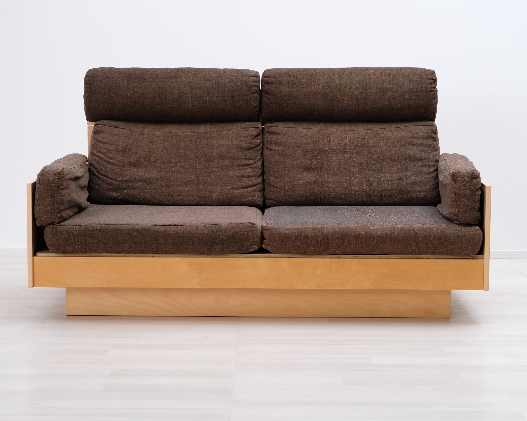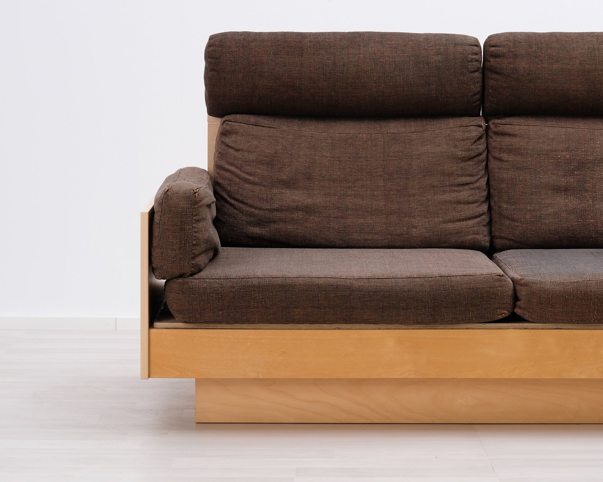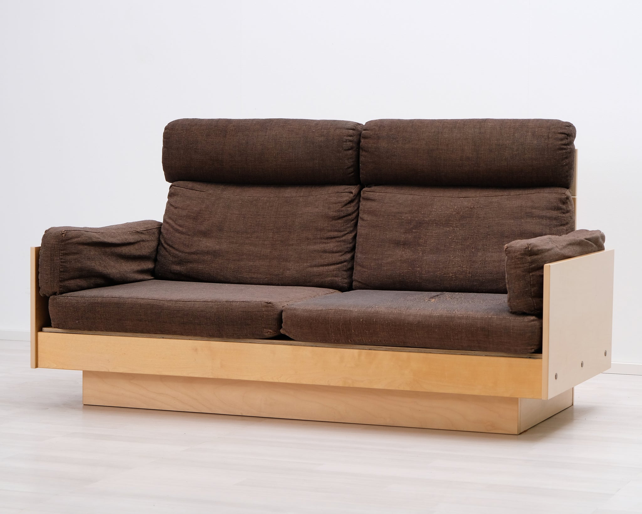 Ben af Schultenin 1960-luvulla suunnittelema Artek 555 -sohva. Sohvassa on kaunis koivurunko ja niskatuet, jotka antavat sohvalle tunnistettavan ilmeen. Sohva on verhoilun tarpeessa, mutta osaavissa käsissä siitä saa olohuoneen todellisen katseenvangitsijan.