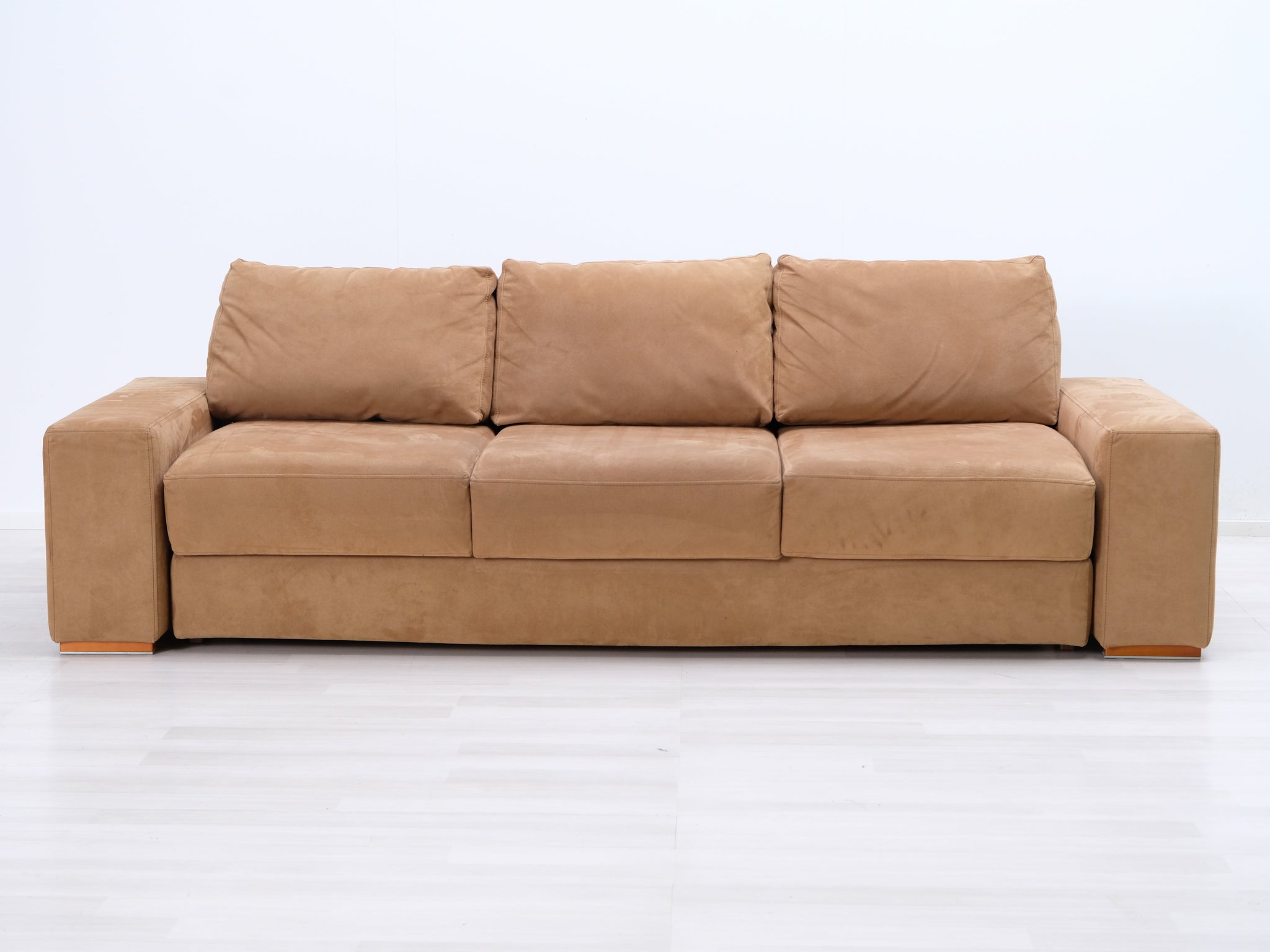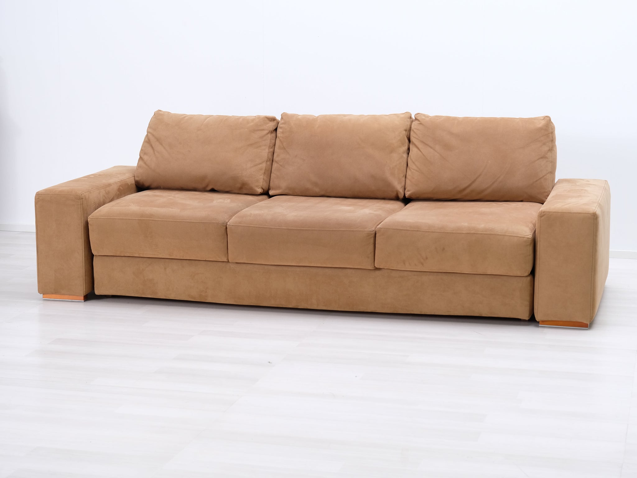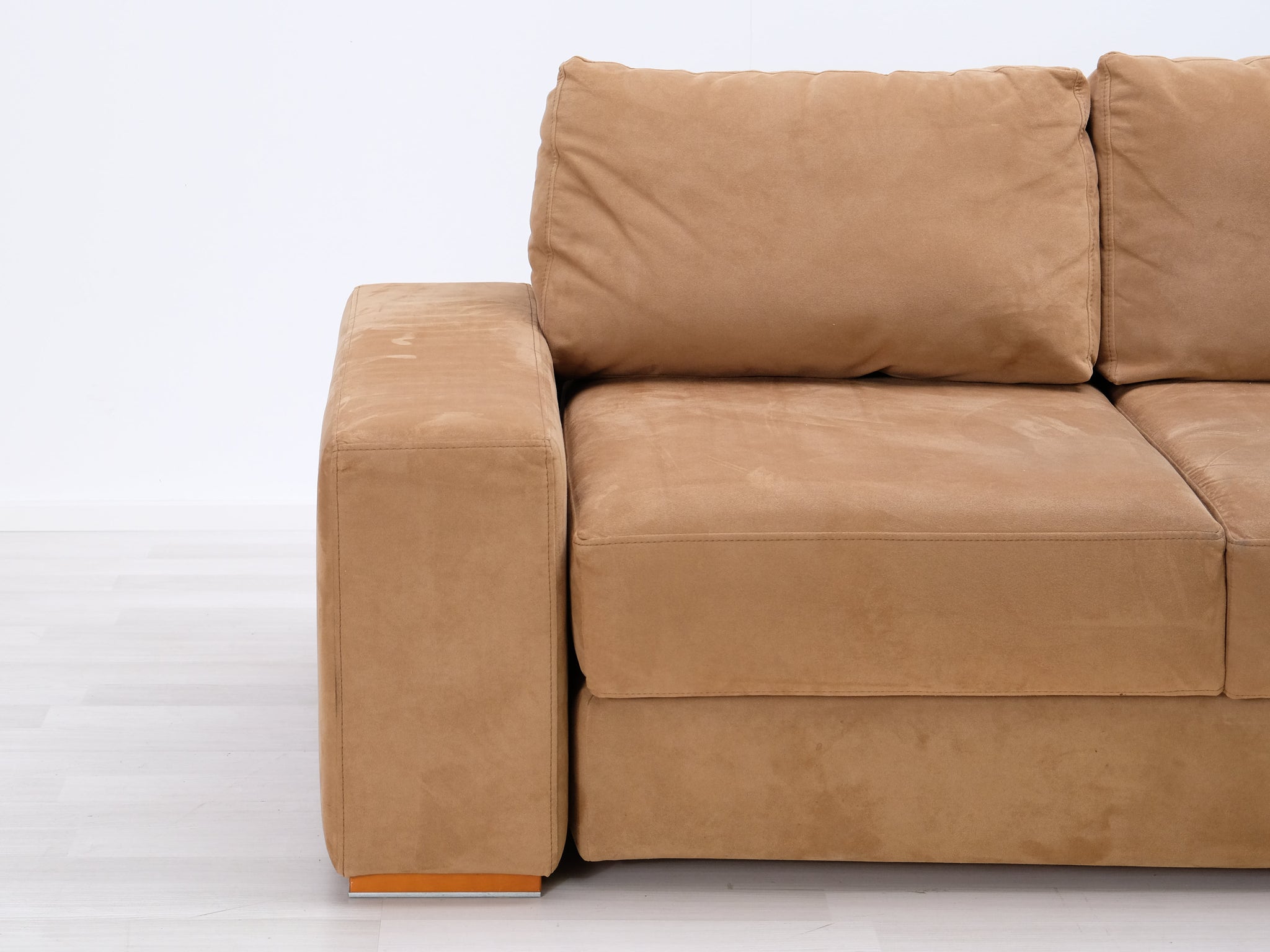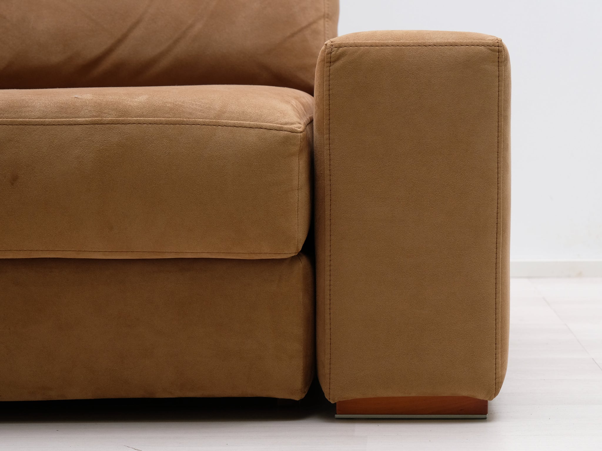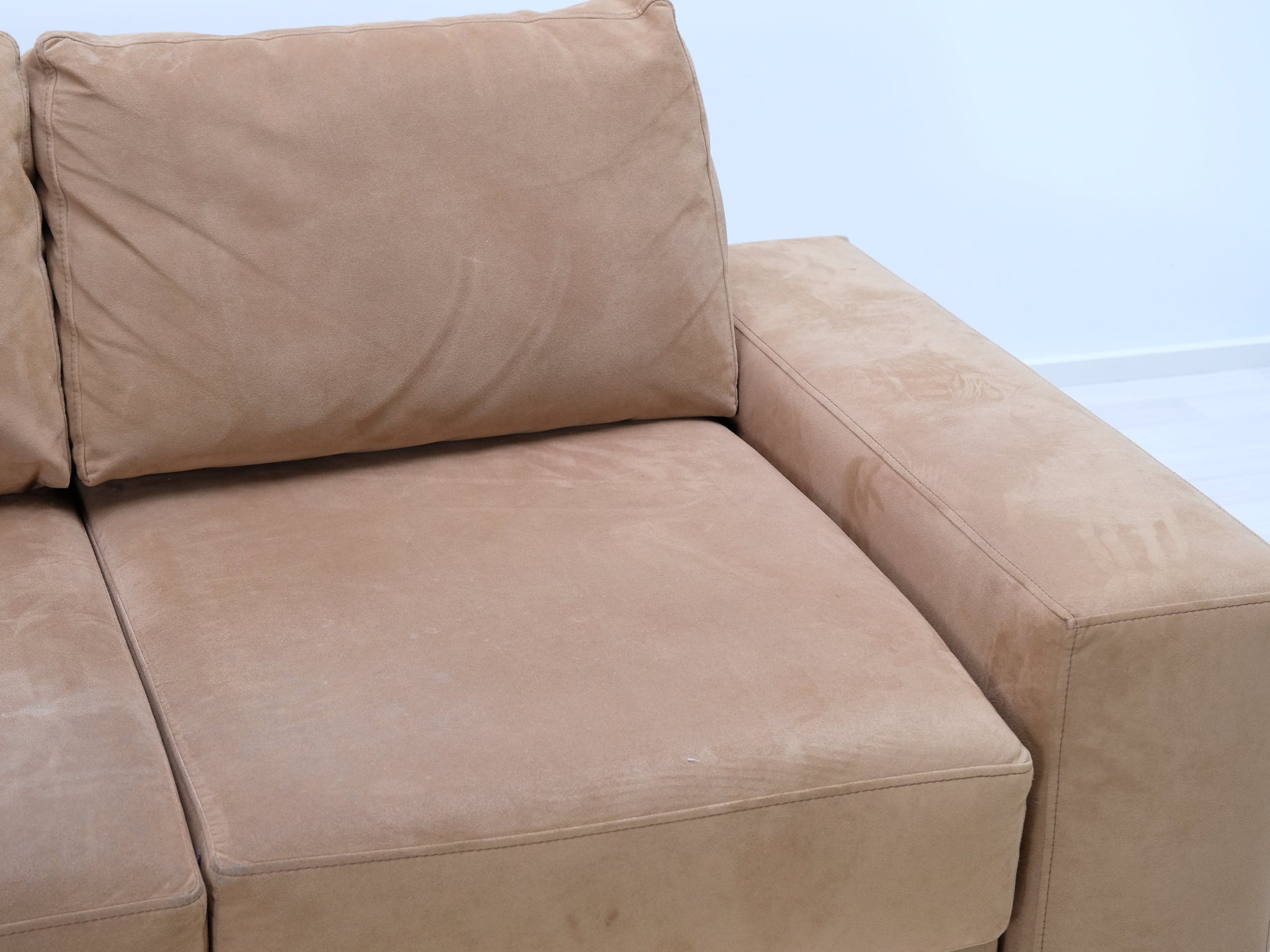 Tämä ihanan pehmeällä Alcantara-kankaalla verhoiltu sohva on tyylikäs ja moneen kotiin sopiva. Alcantara jäljittelee tuntumaltaan mokkanahkaa ja on erittäin kestävää, mikä tekeekin siitä ihanteellisen verhoilumateriaalin sohville. Tälle tilavalle sohvalle mahtuu vaivatta kolme henkeä, leveät käsinojat lisäävät löhöilymukavuutta.