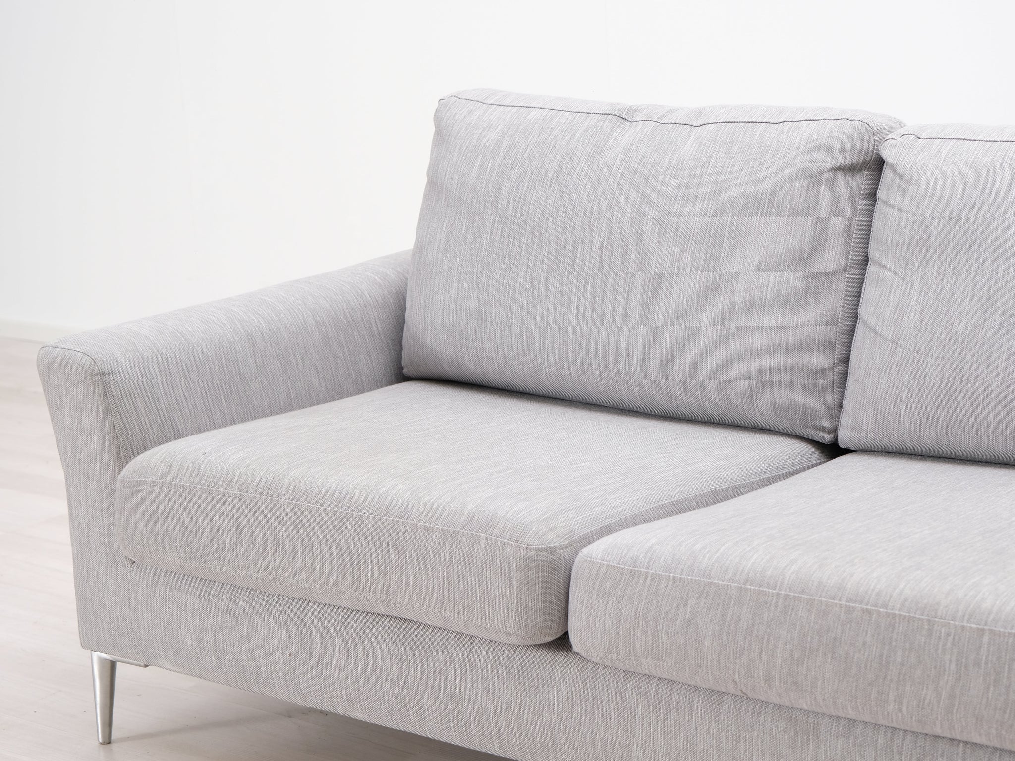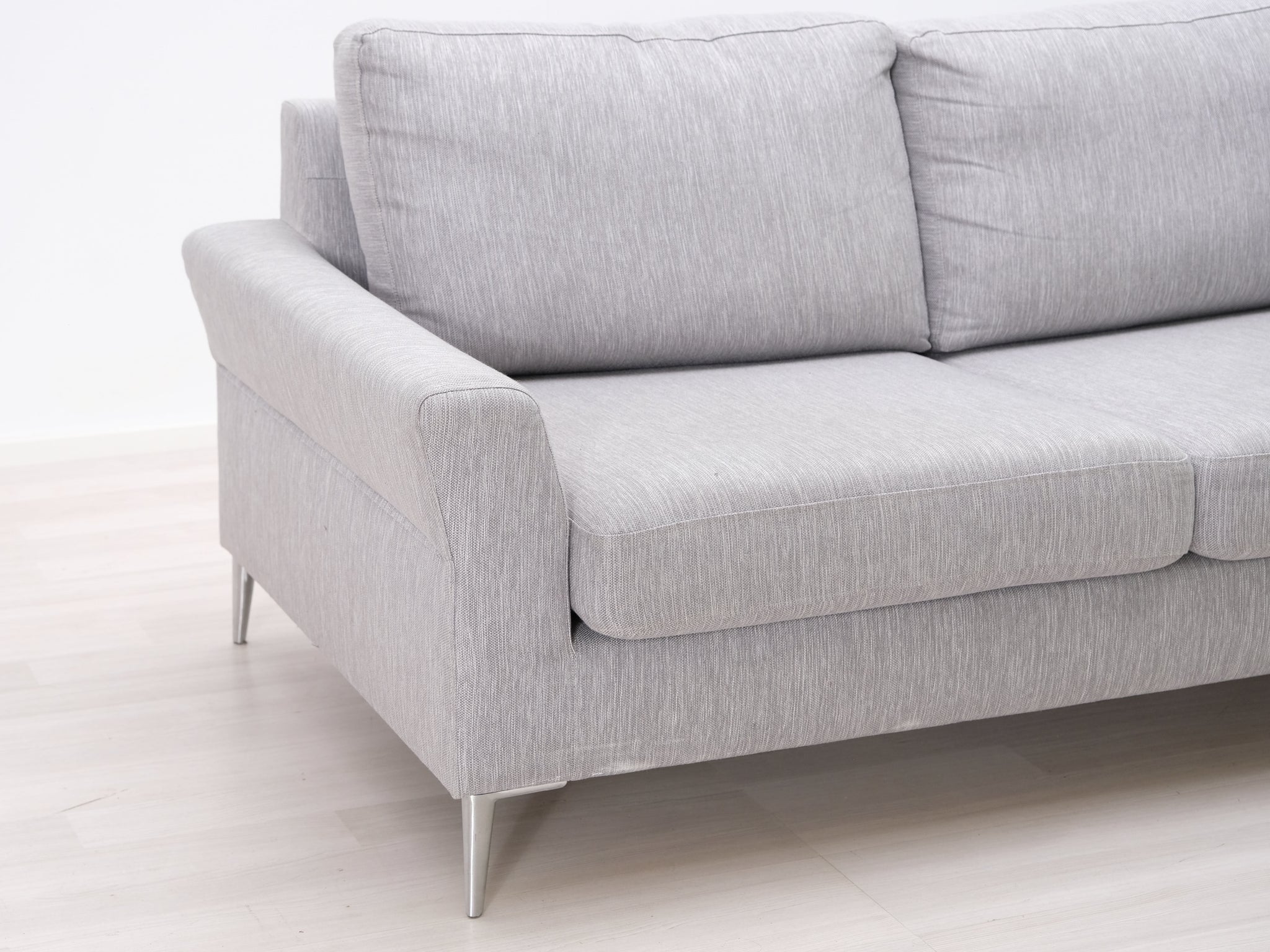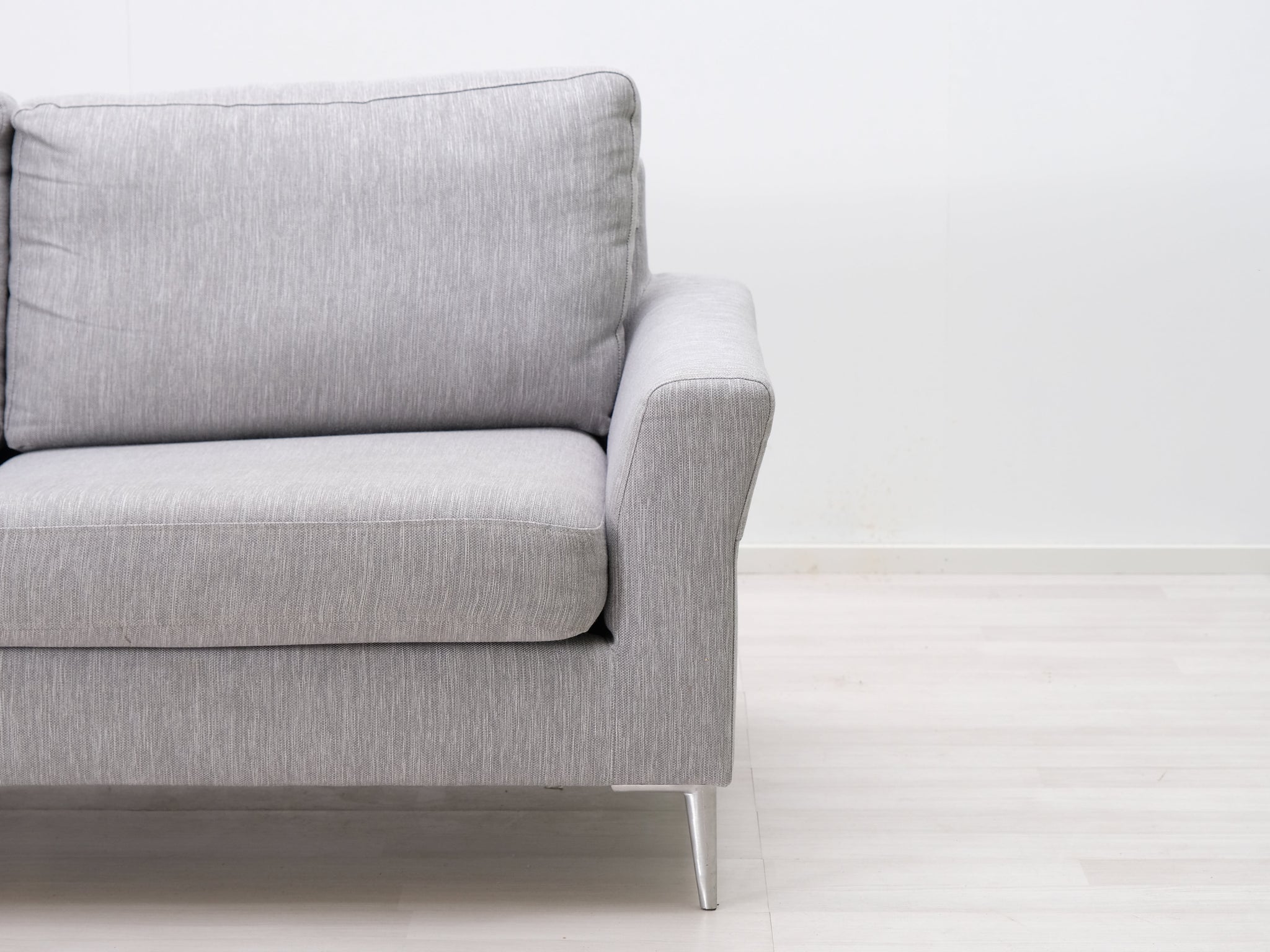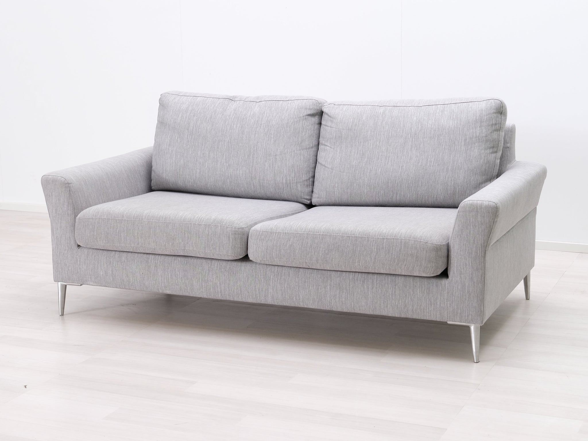 Askon valmistama harmaa kangassohva. Viimeistelty design ja erinomainen istumamukavuus. Sohvan yleisilmettä keventää ohuet metallijalat.