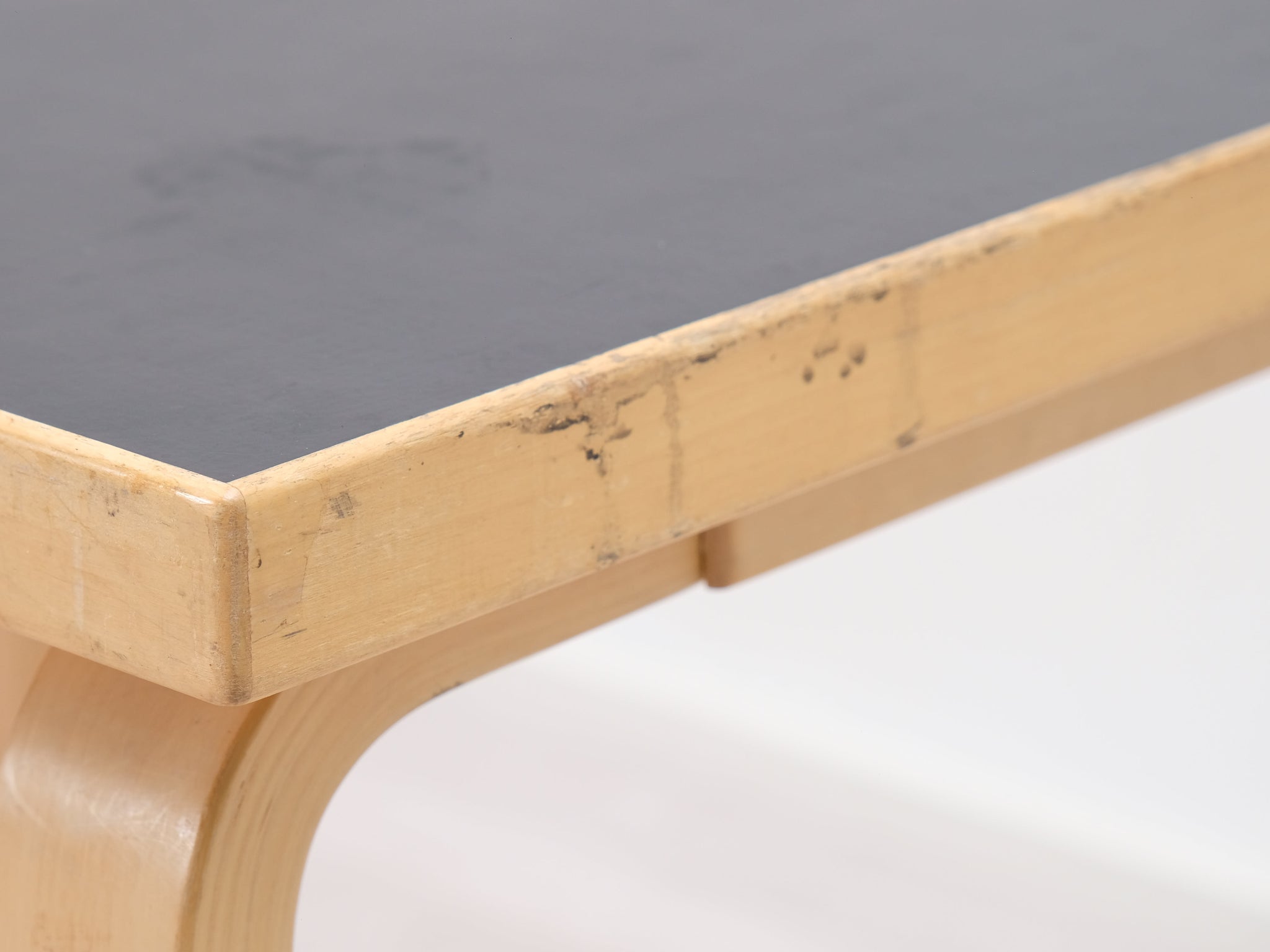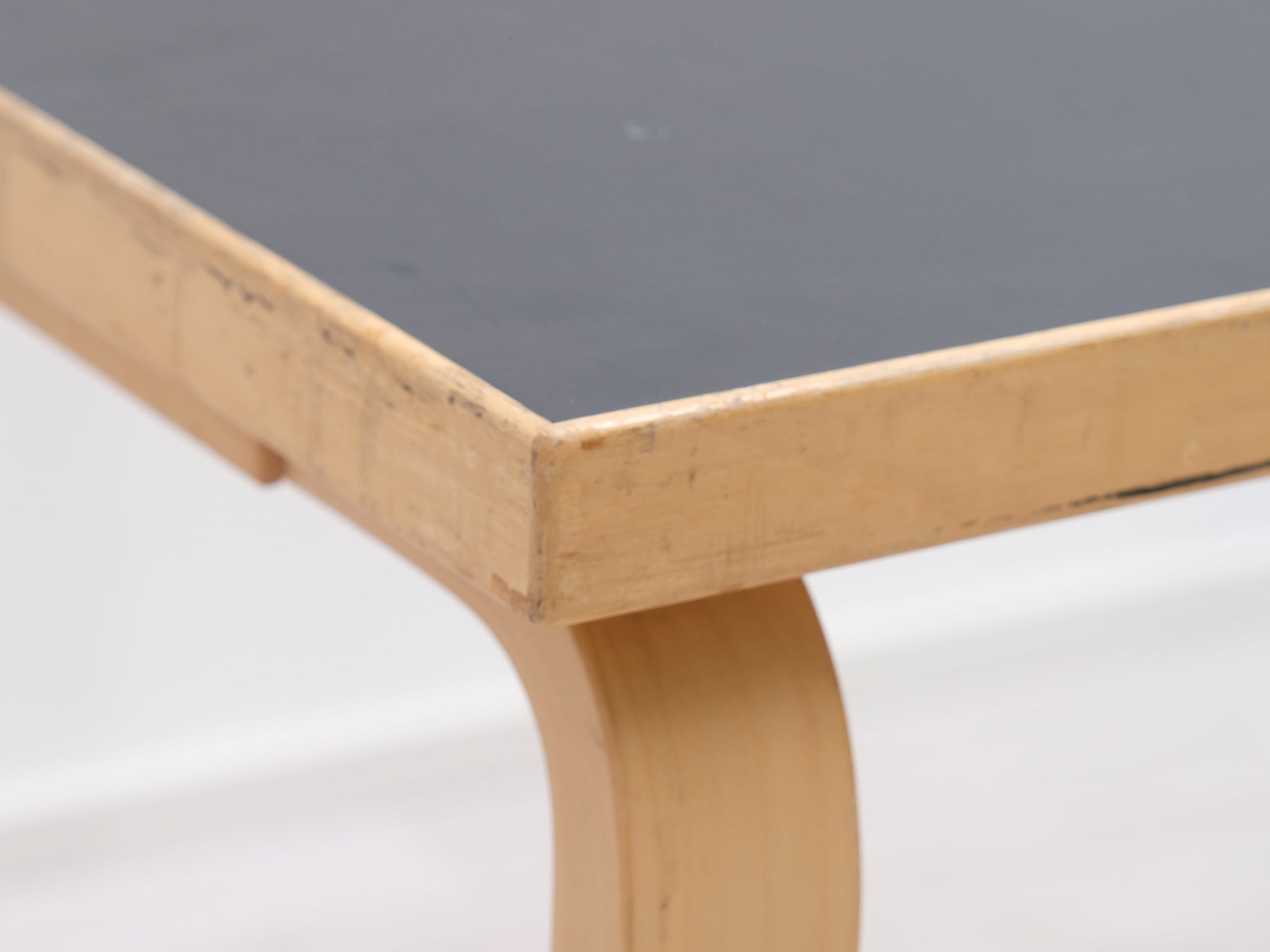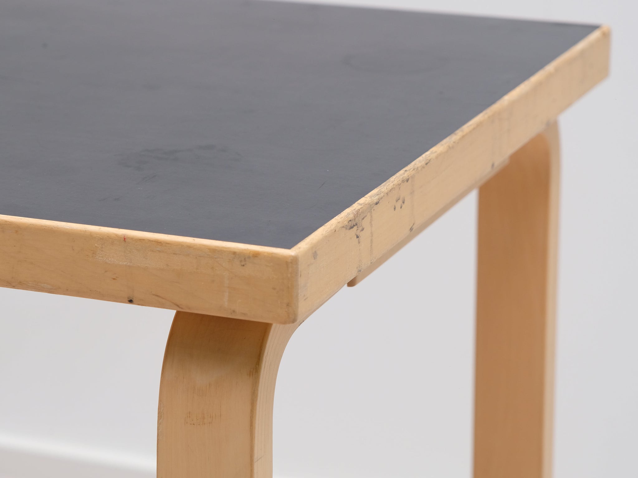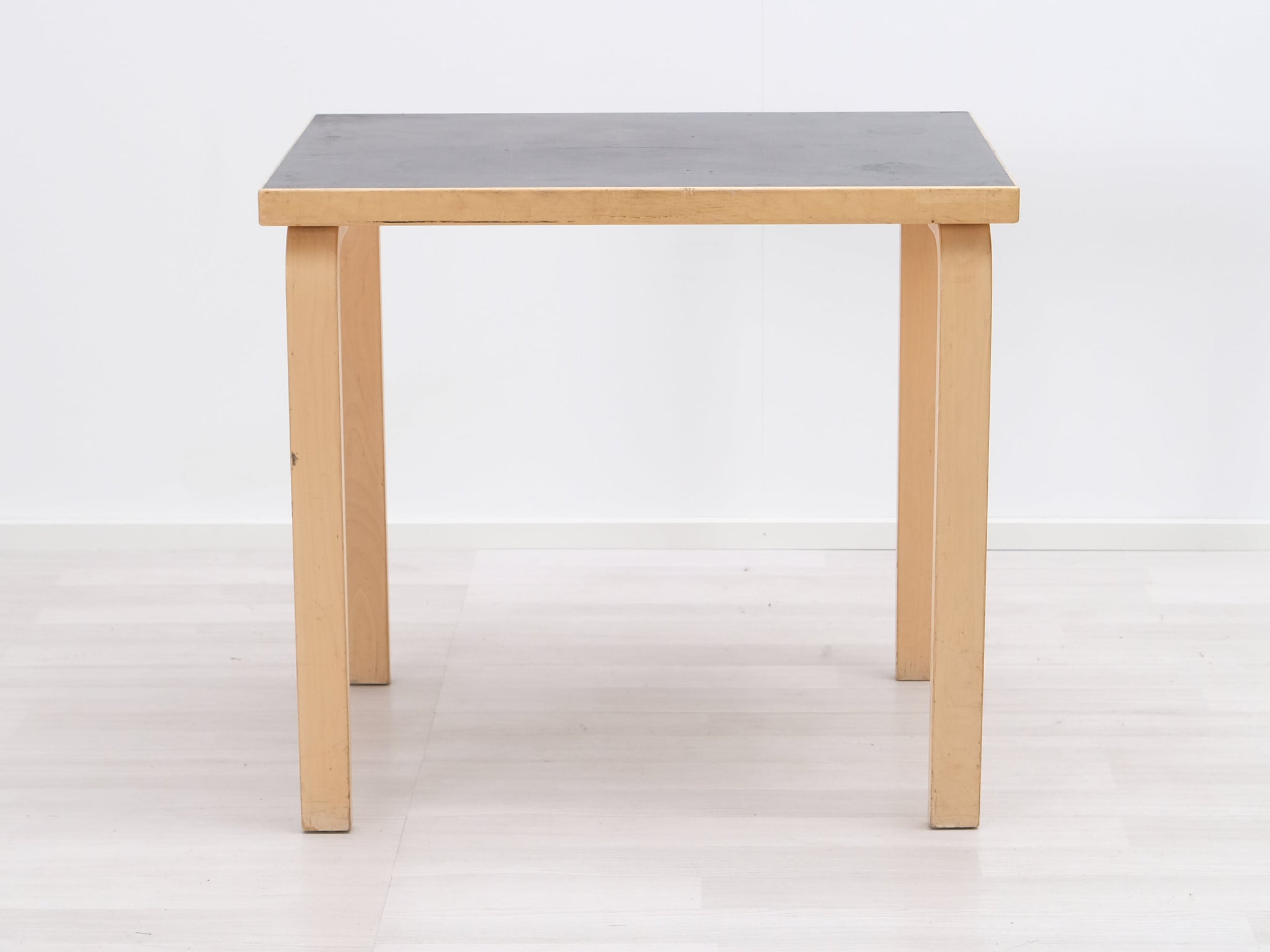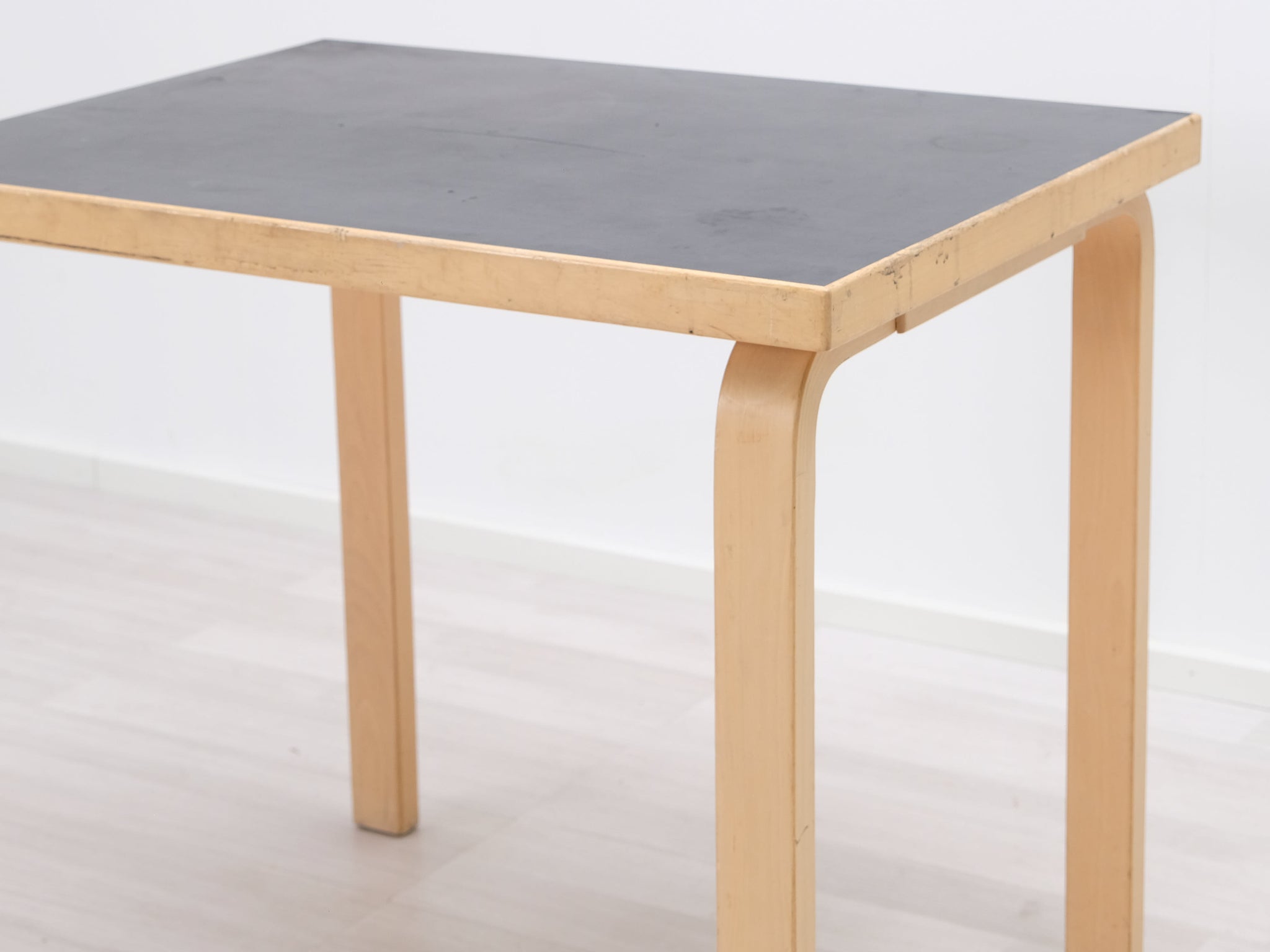 Artekin pikkupöytä. Pöydässä on Alvar Aallon suunnittelulle tunnusomaista arjen estetiikkaa pelkistetyn ulkonäön ja toiminnallisuuden muodossa. Pöydän päämateriaalina on koivu ja sen musta linoleumpinta on helppo puhdistaa. Patentoidu L-jalat.