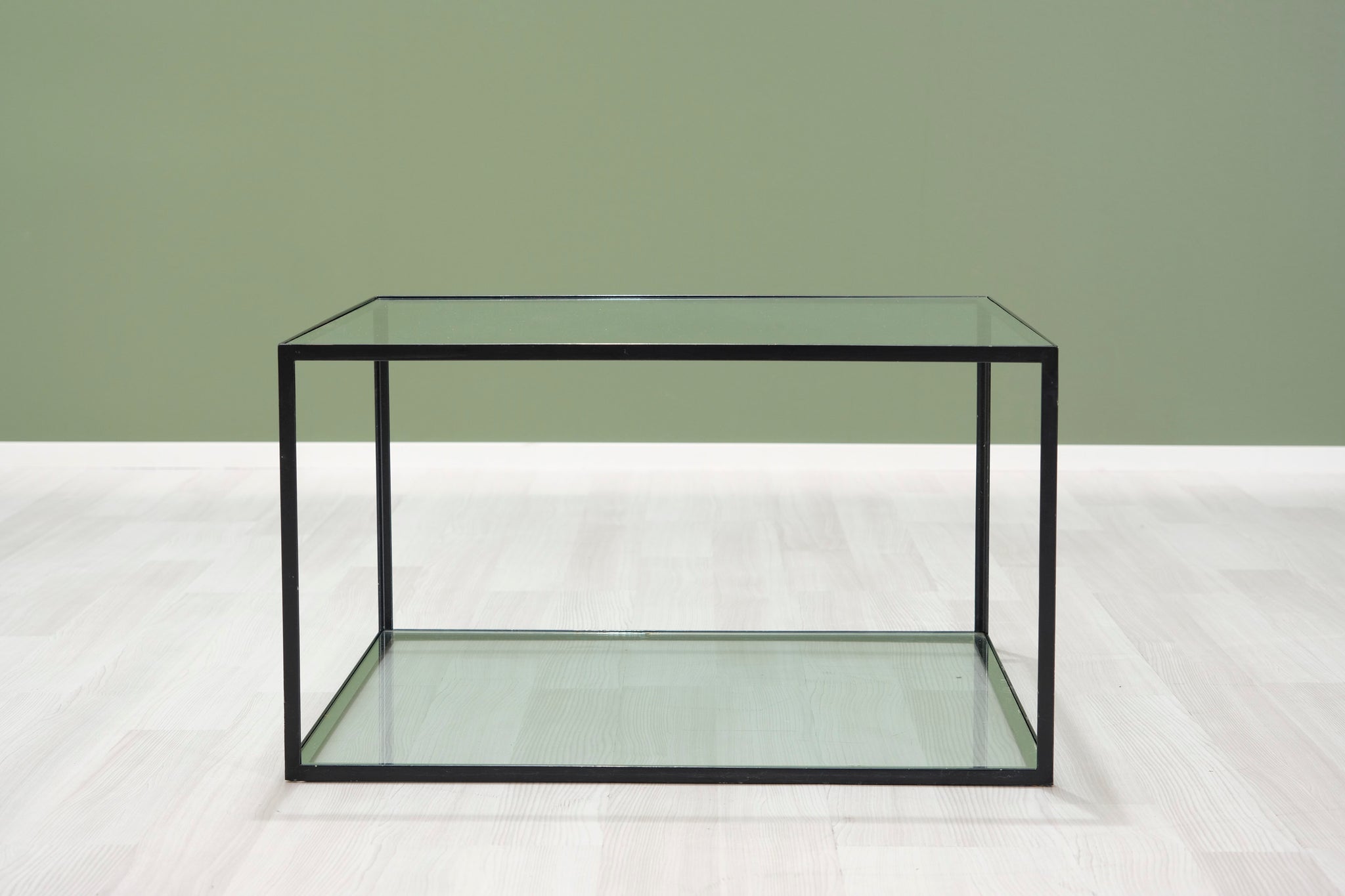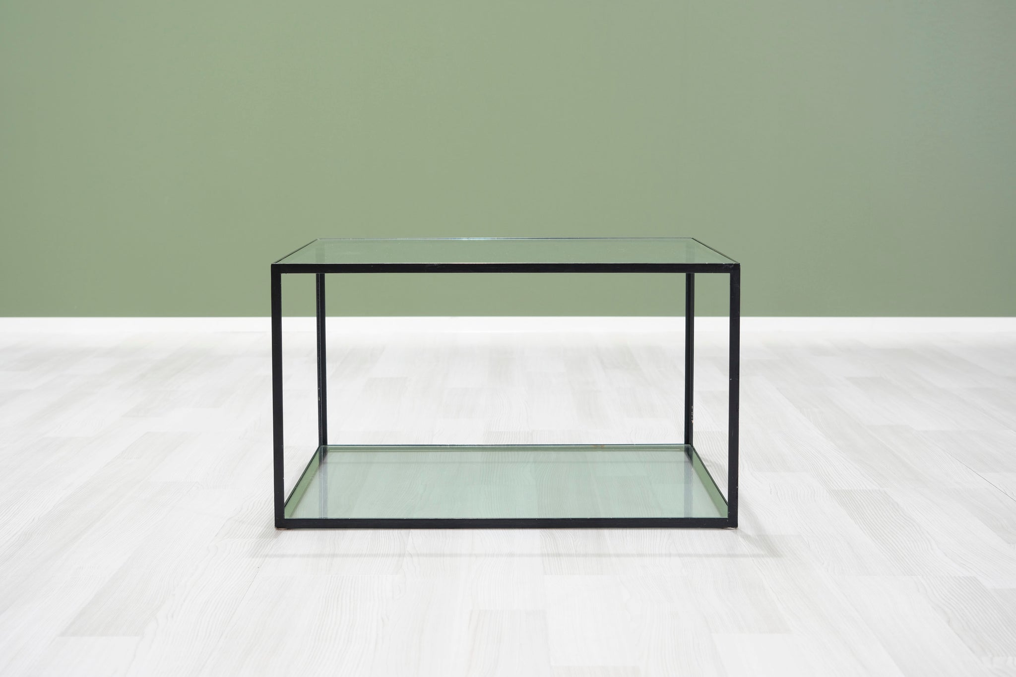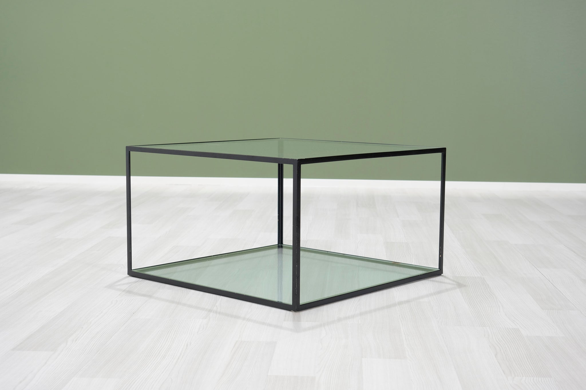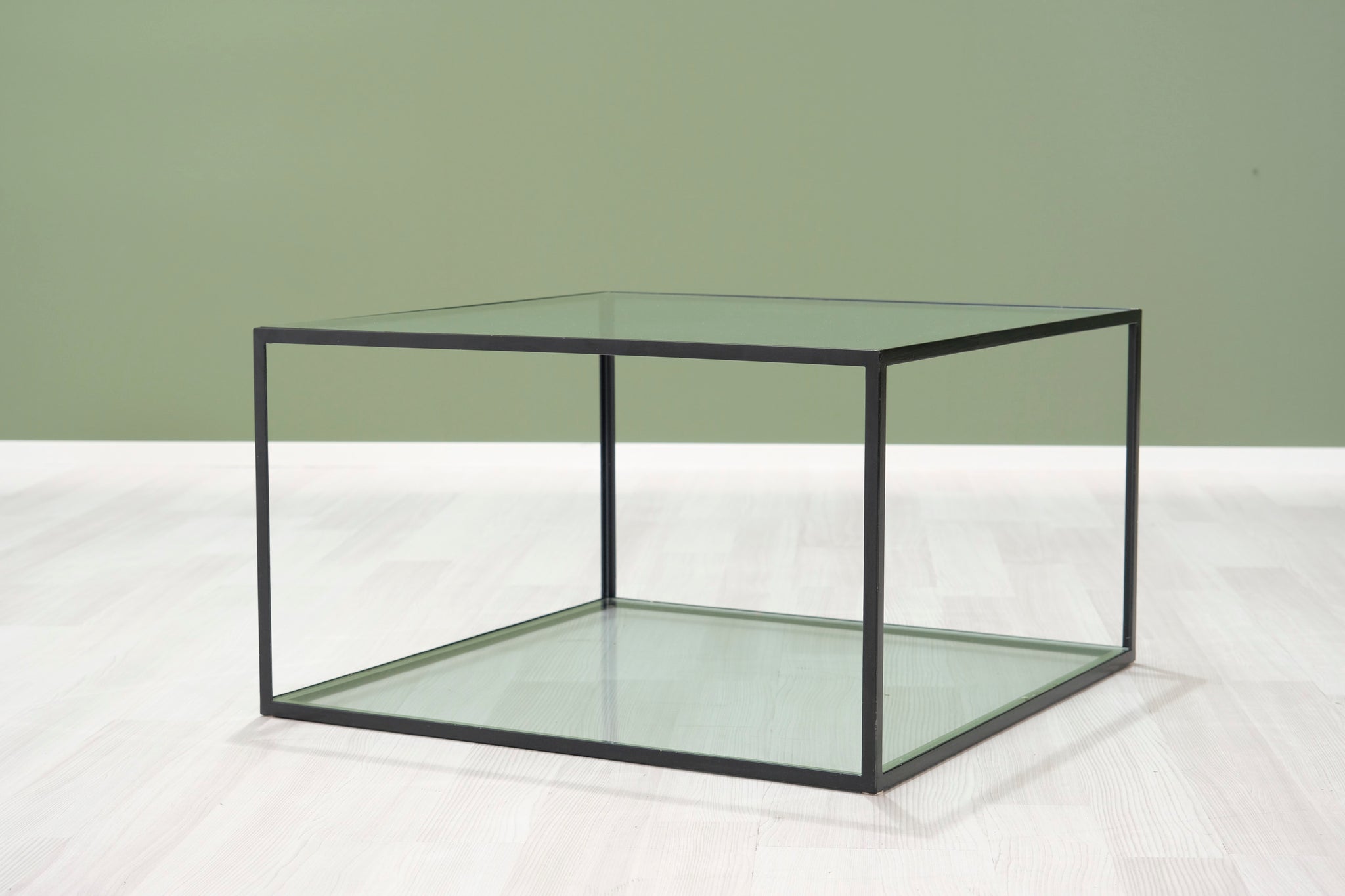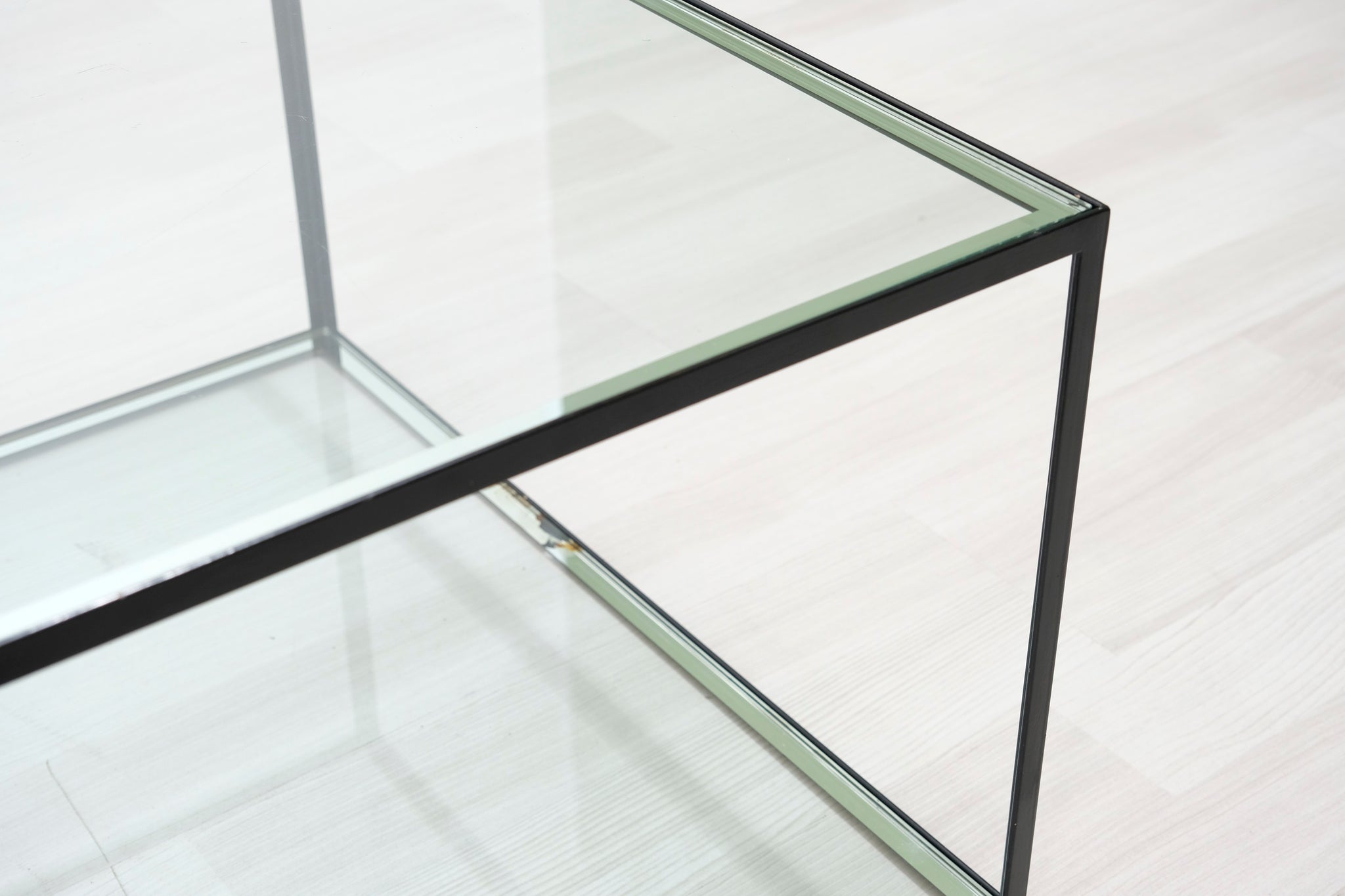 B&B Italian sohvapöytä. Metallista valmistettu runko ja kaksi lasilevyä. B&B Italia -brändin huonekalut edustavat italialaista huippumuotoilua. Huonekalut valmistetaan käsin yrityksen omalla tehtaalla Novedratessa, Milanon pohjoispuolella.