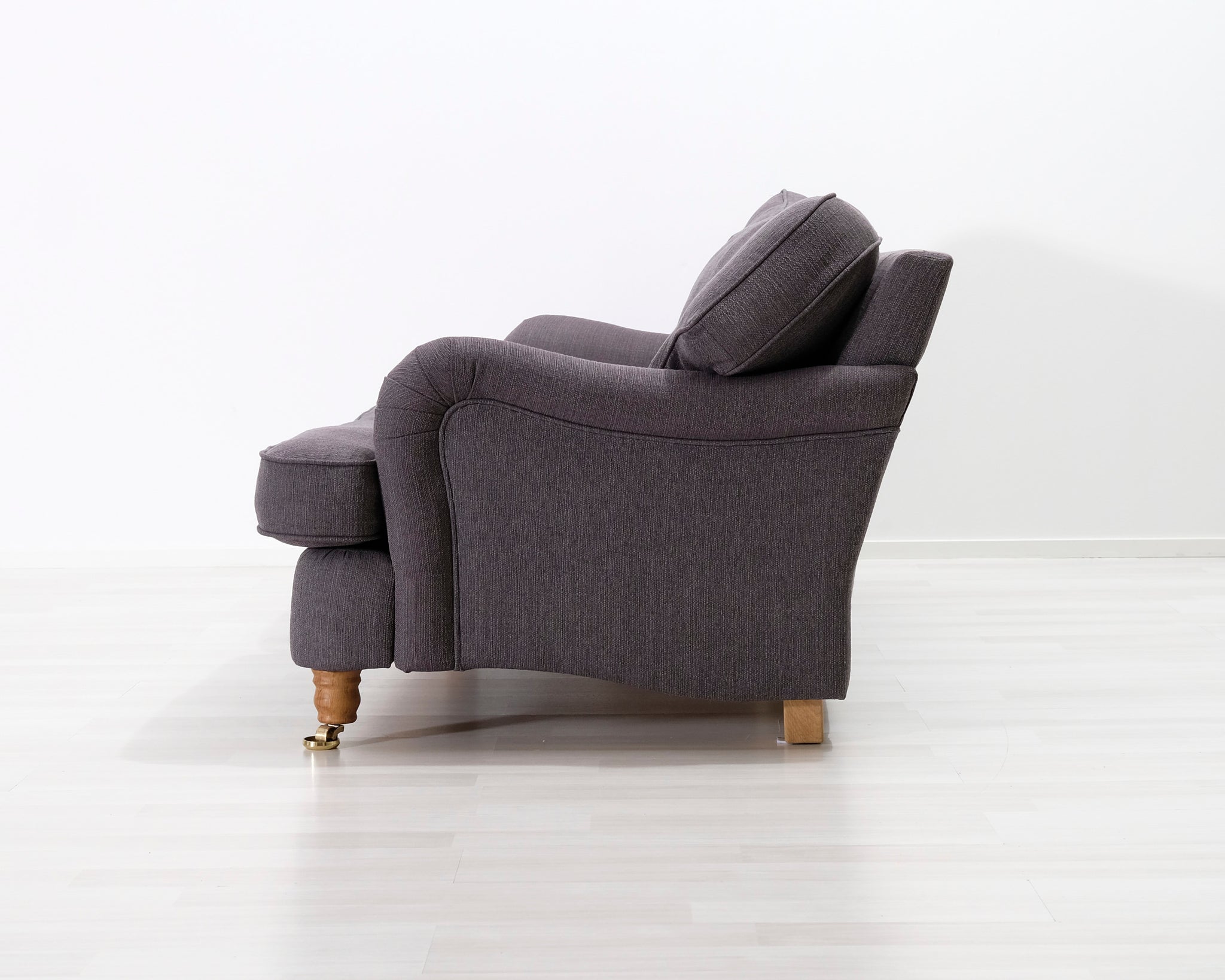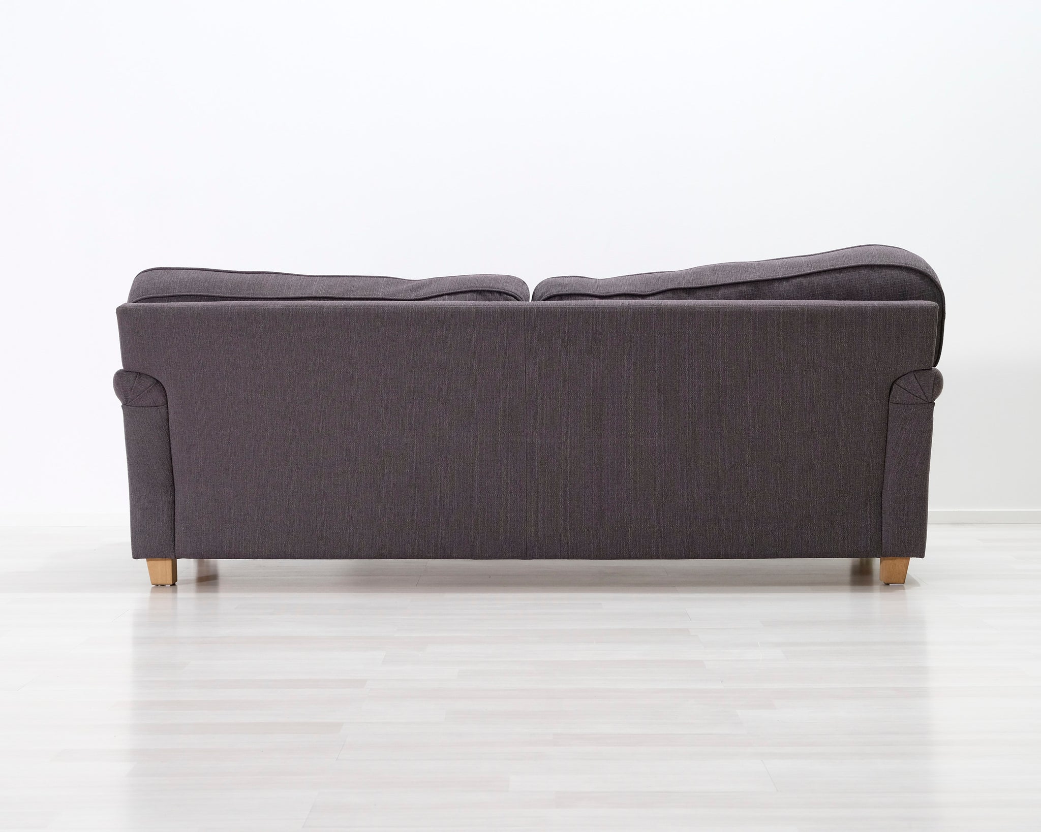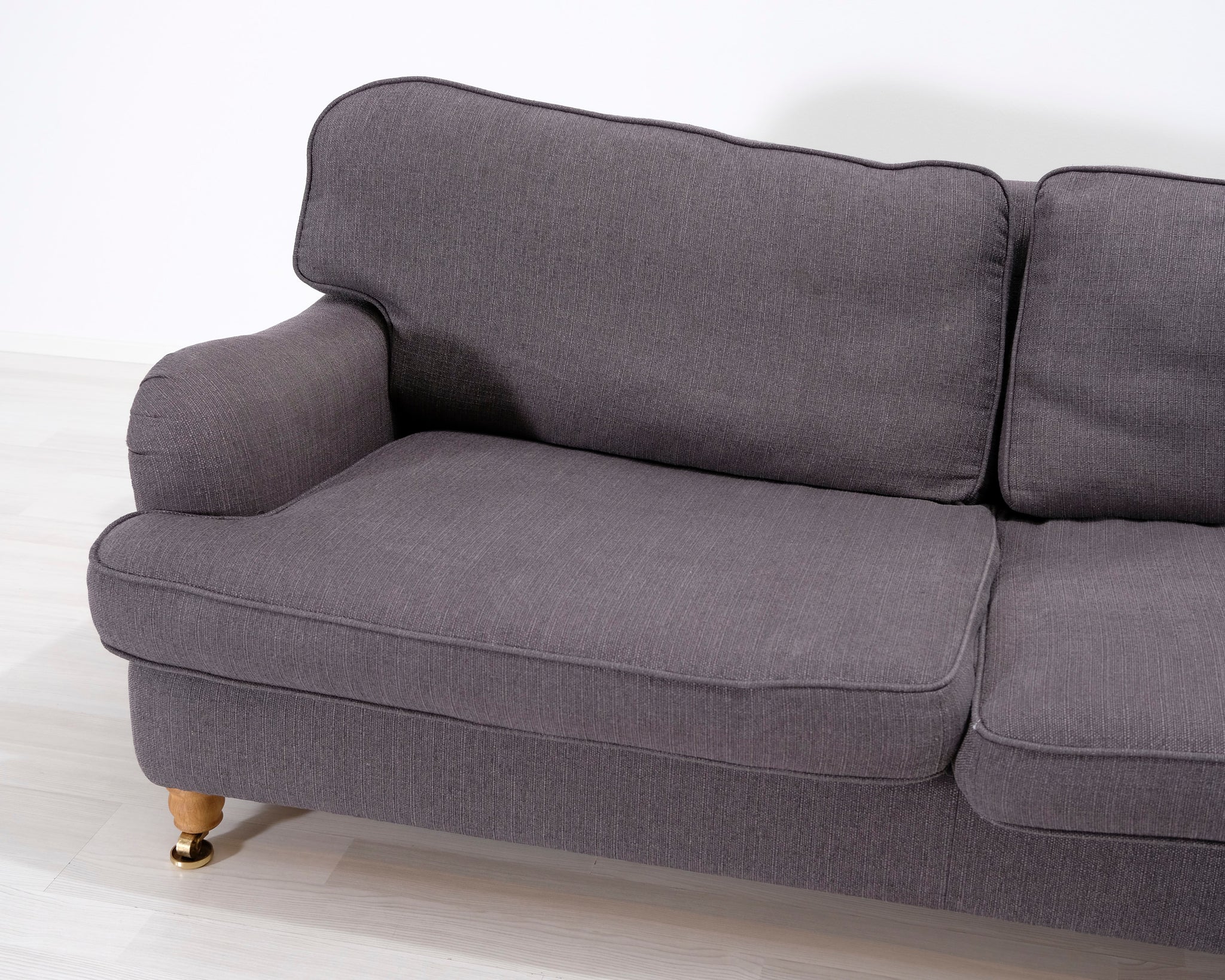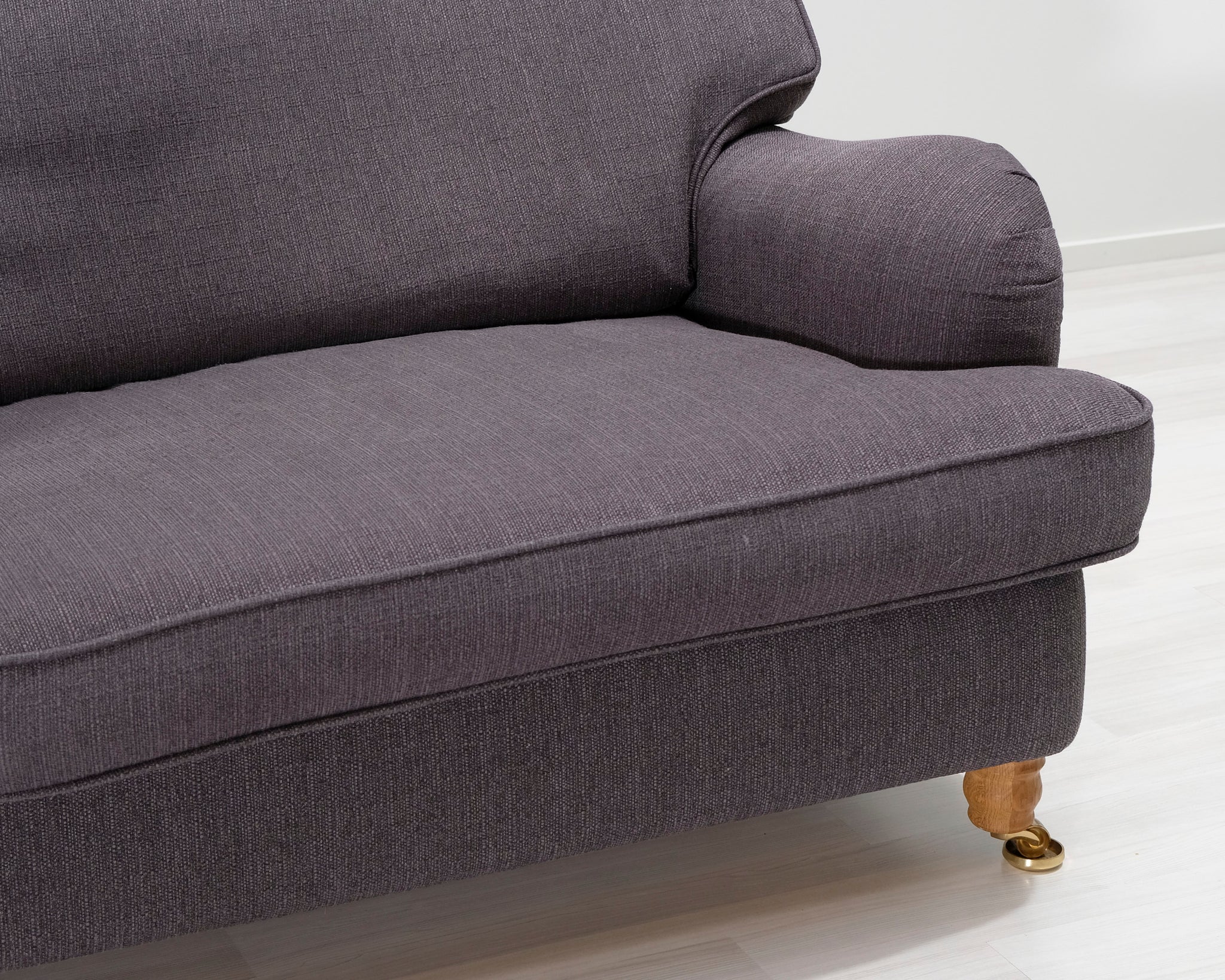 Harmaa Howard-tyylinen sohva. Untuvatäyte.