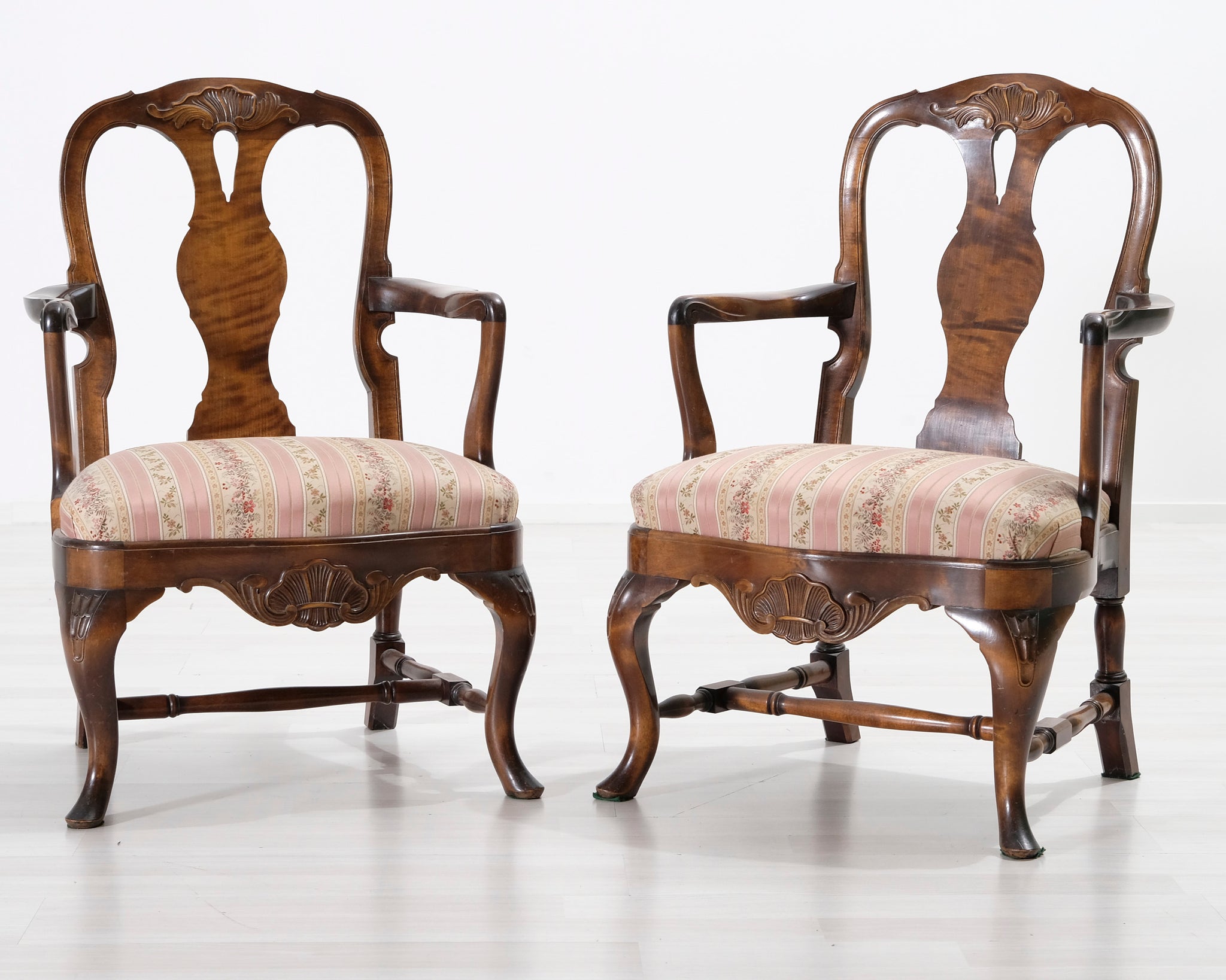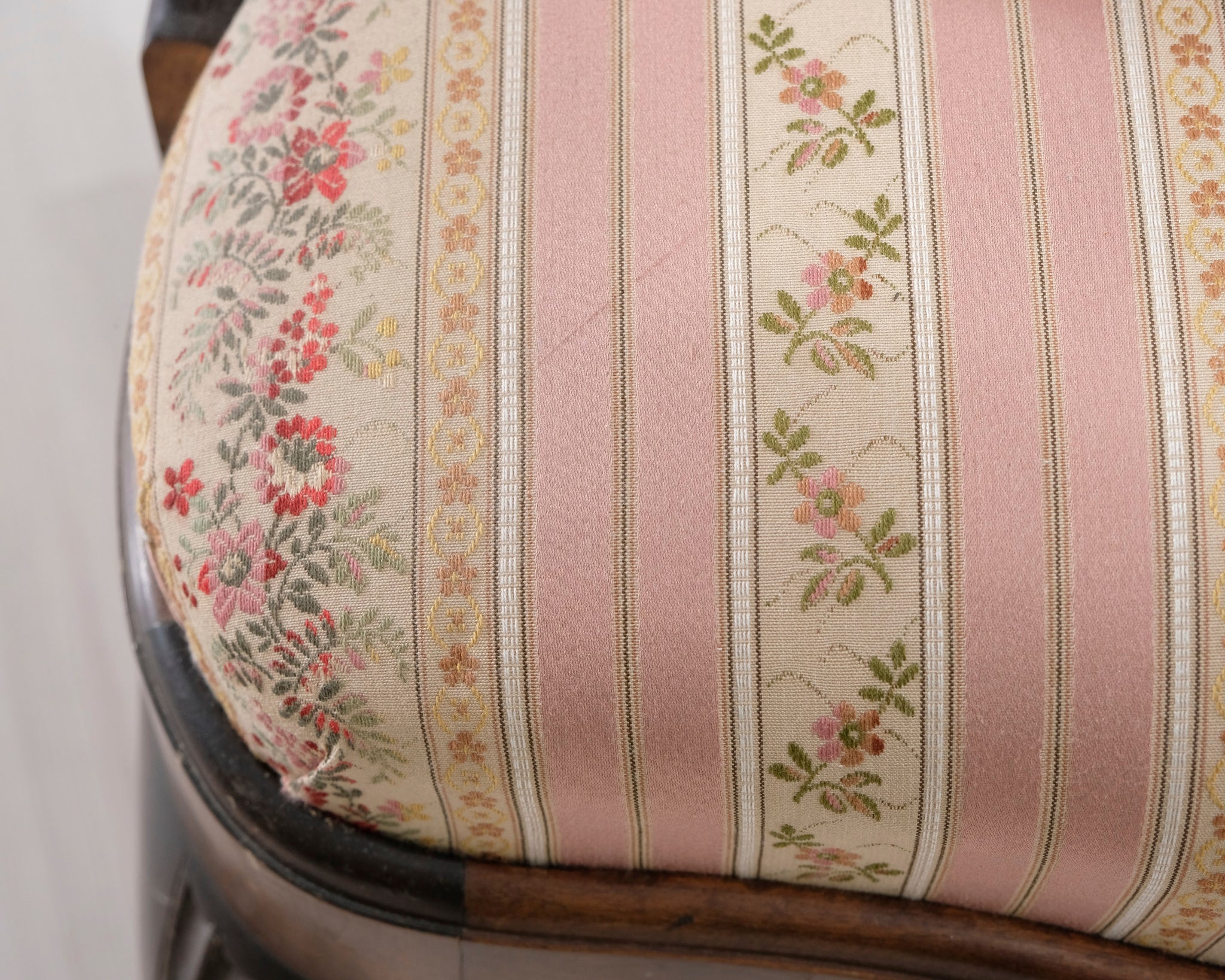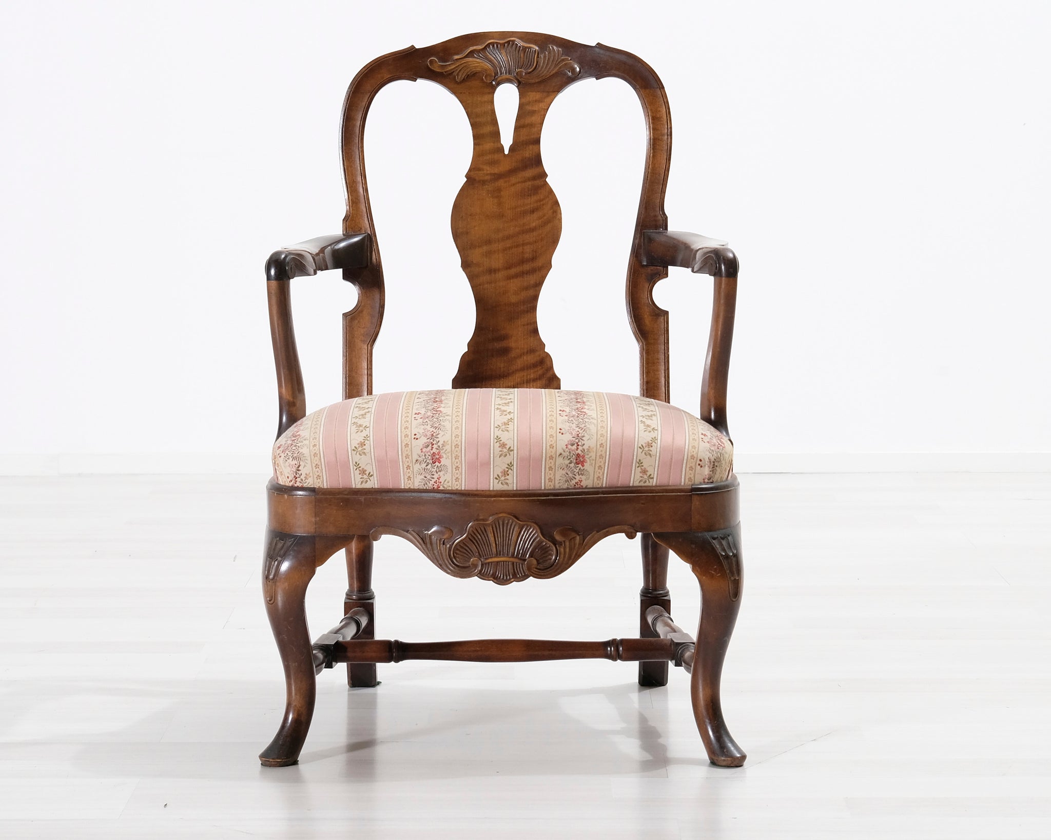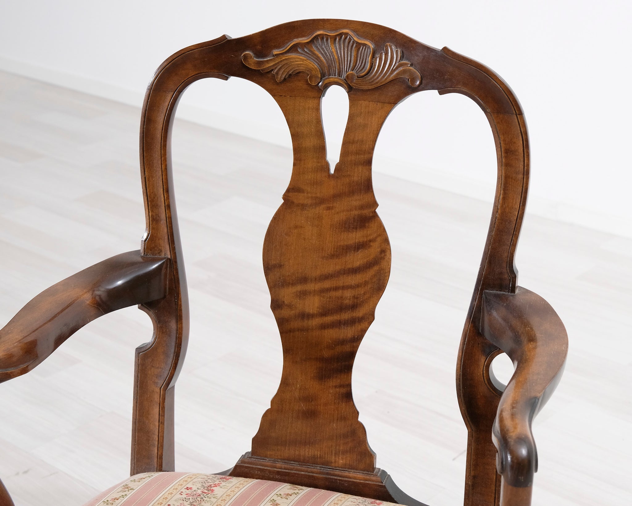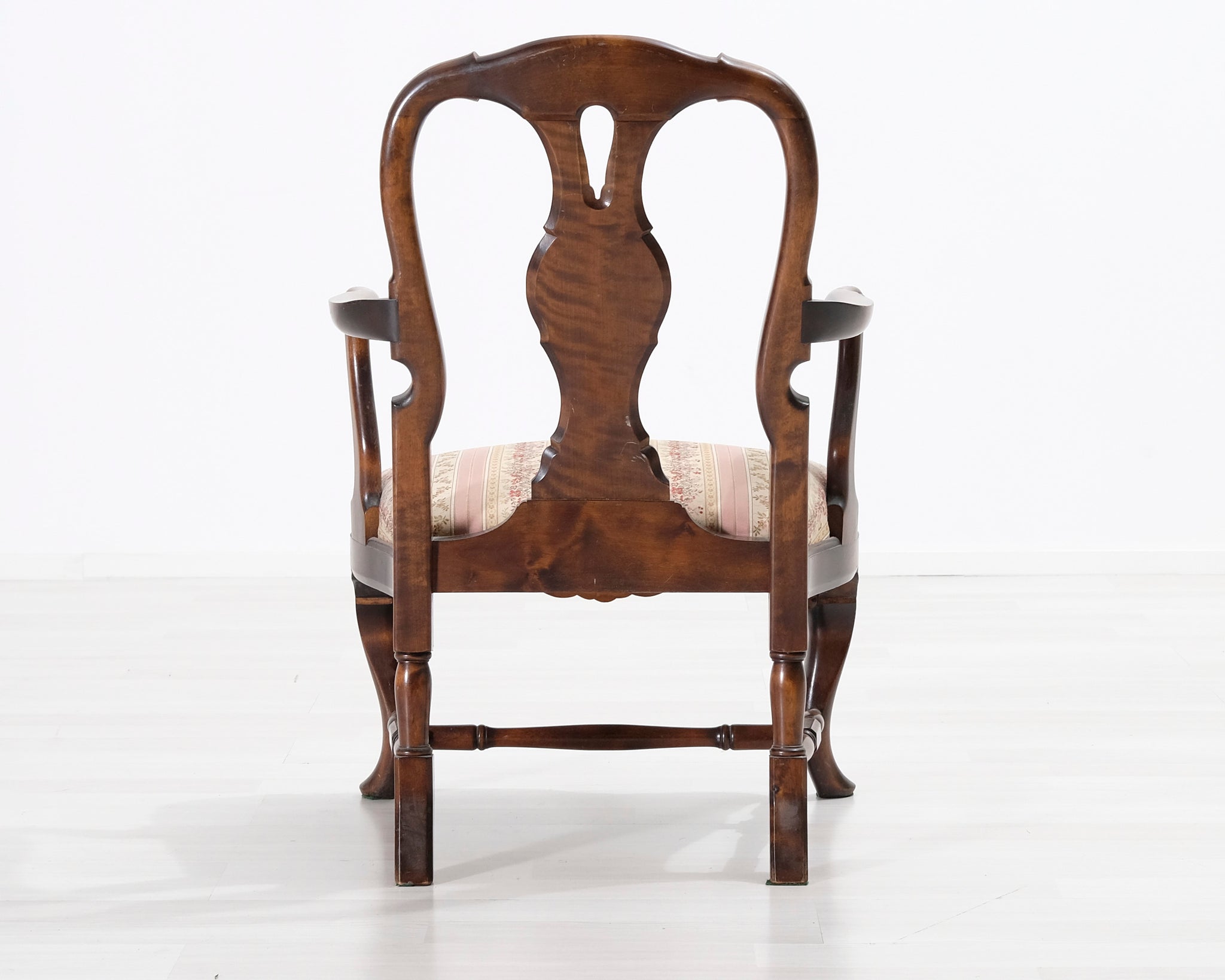 Antiikkinen nojatuoli kukallisella istuimella