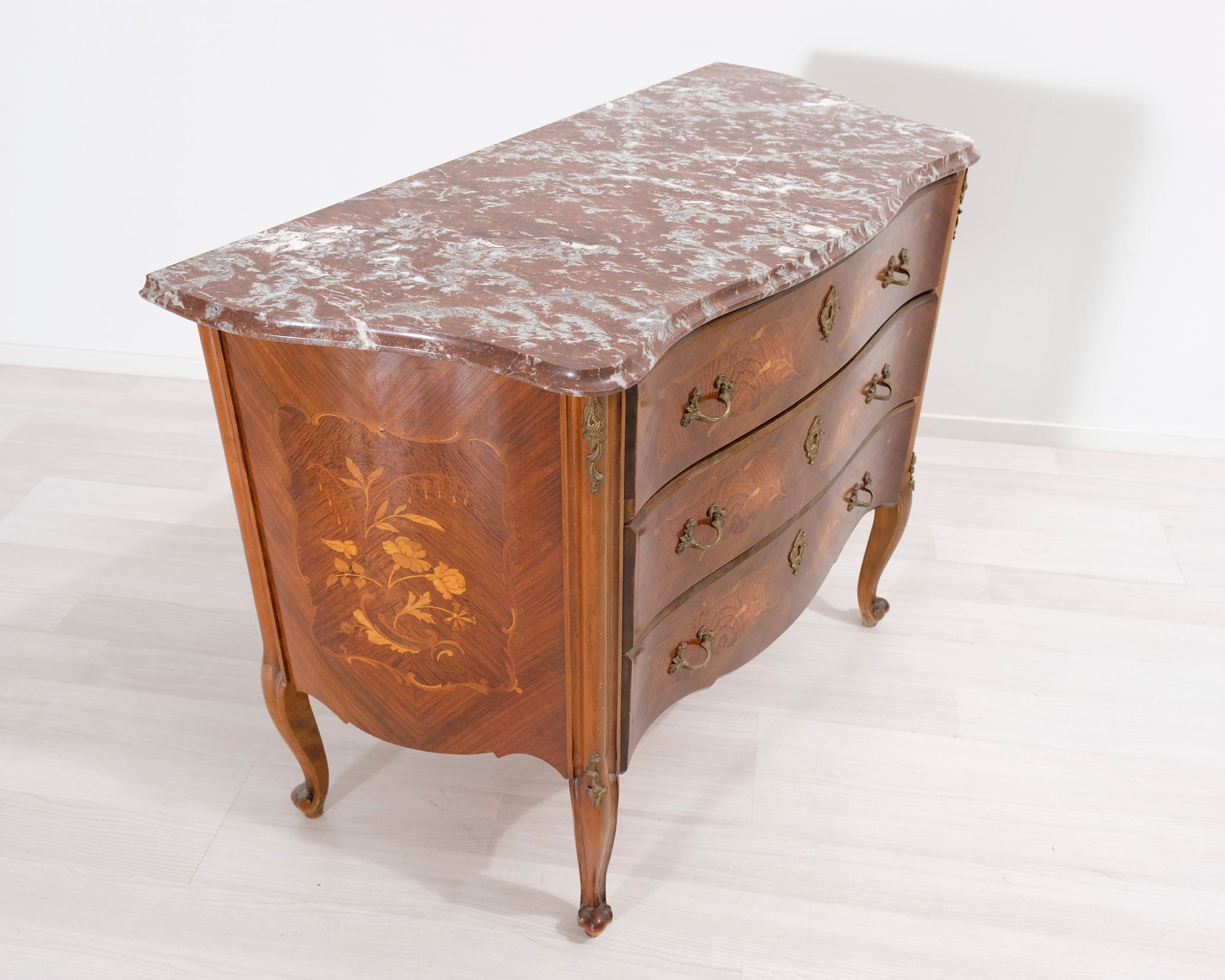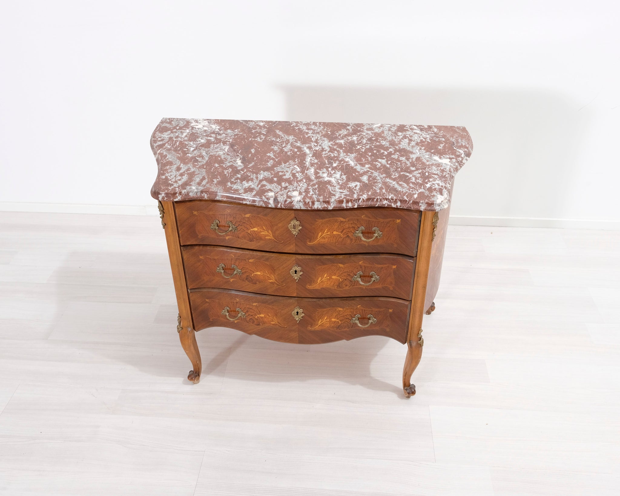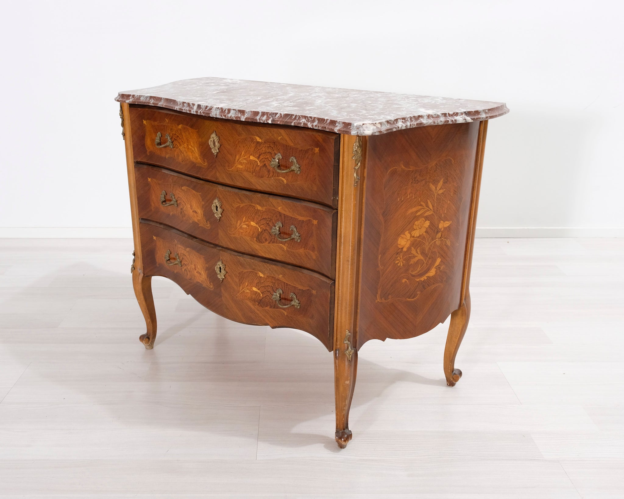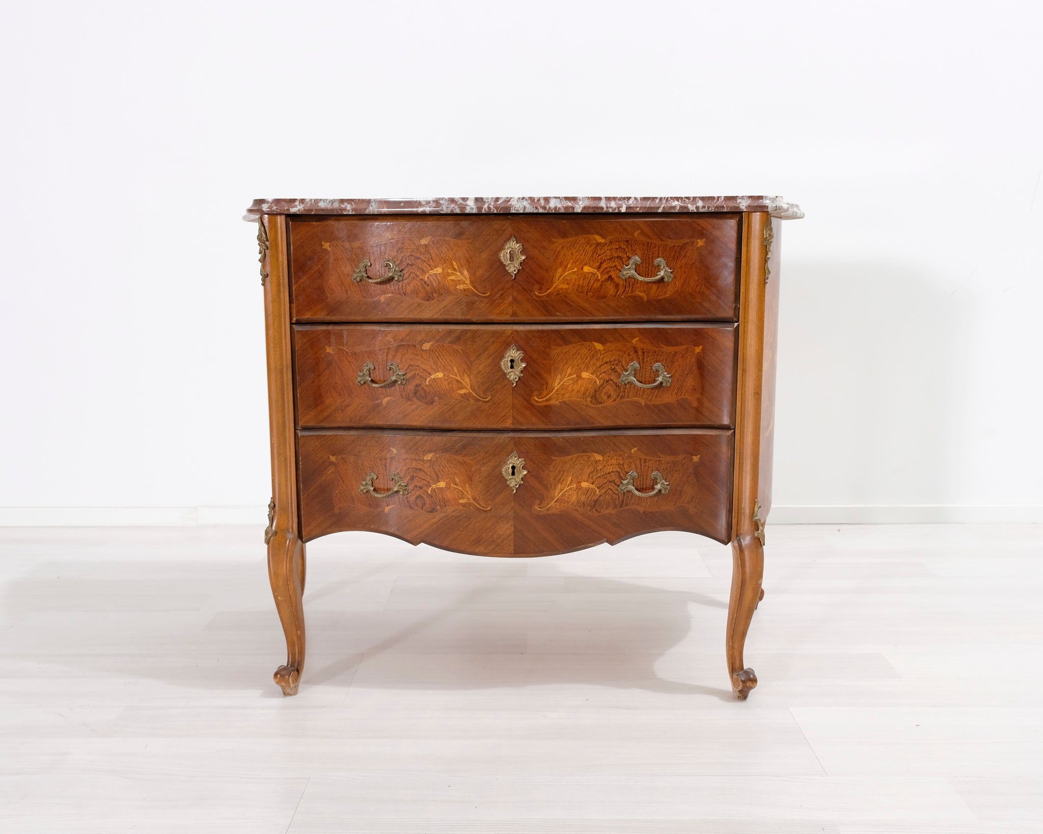 1930-luvulla valmistettu lipasto. Päällinen marmoria. Kaksi kolmesta laatikosta lukittavia.