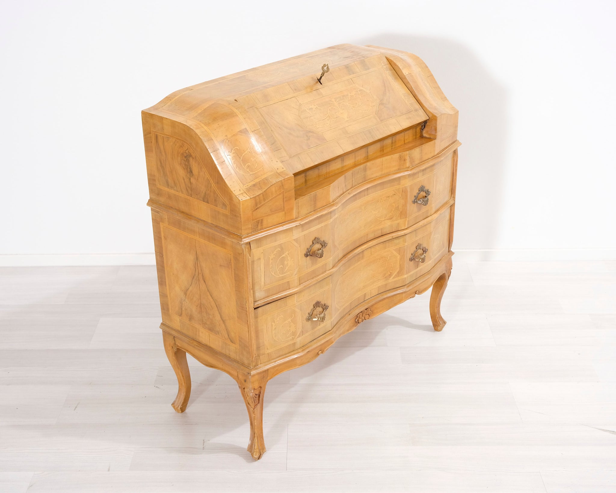 1930-luvulla valmistettu kirjoituslipasto. Avaamalla kalffin saat pöytälevyn ja lisäksi sen takaa paljastuu pieniä laatikoita ja säilytystilaa esim. toimistotarvikkeille.