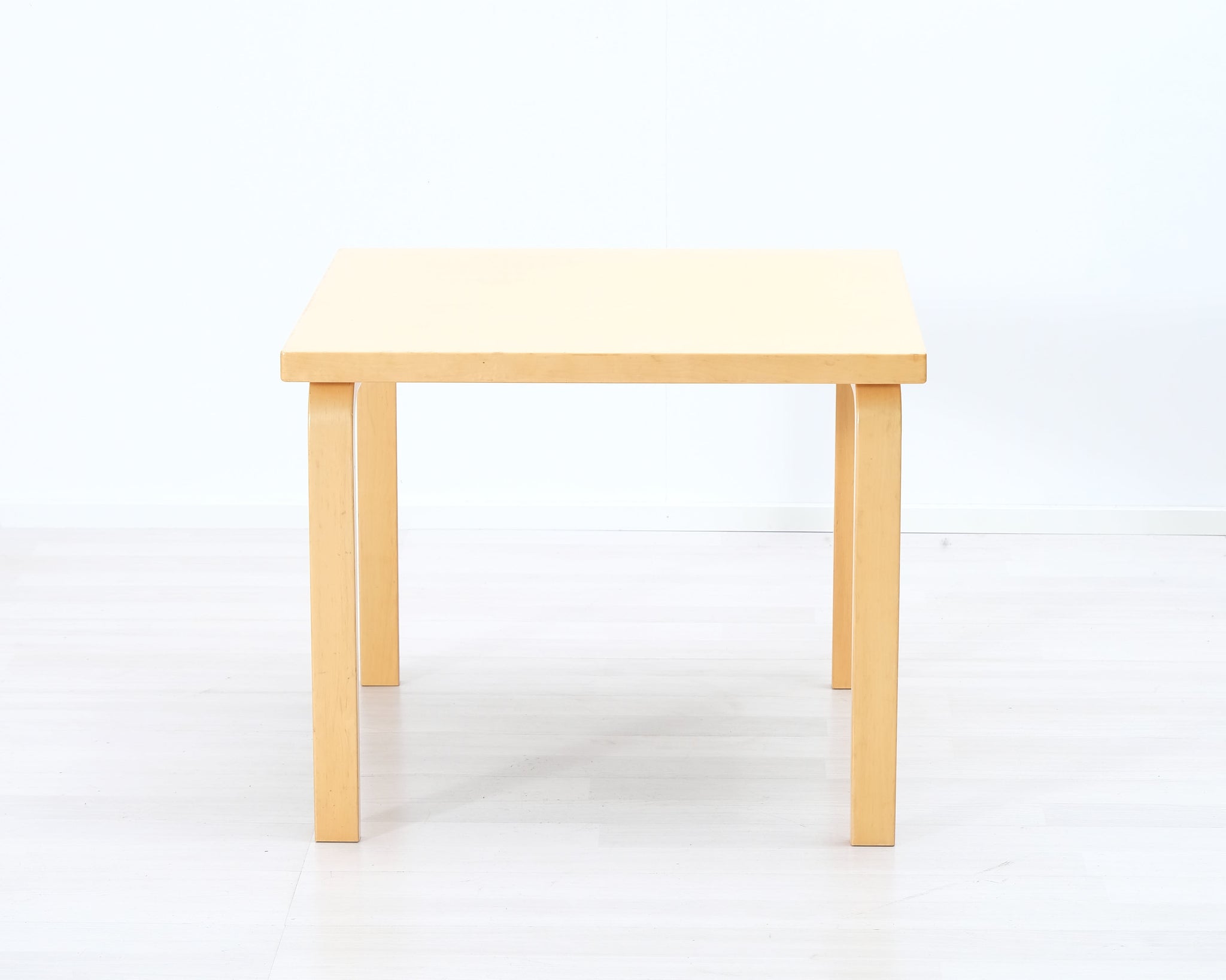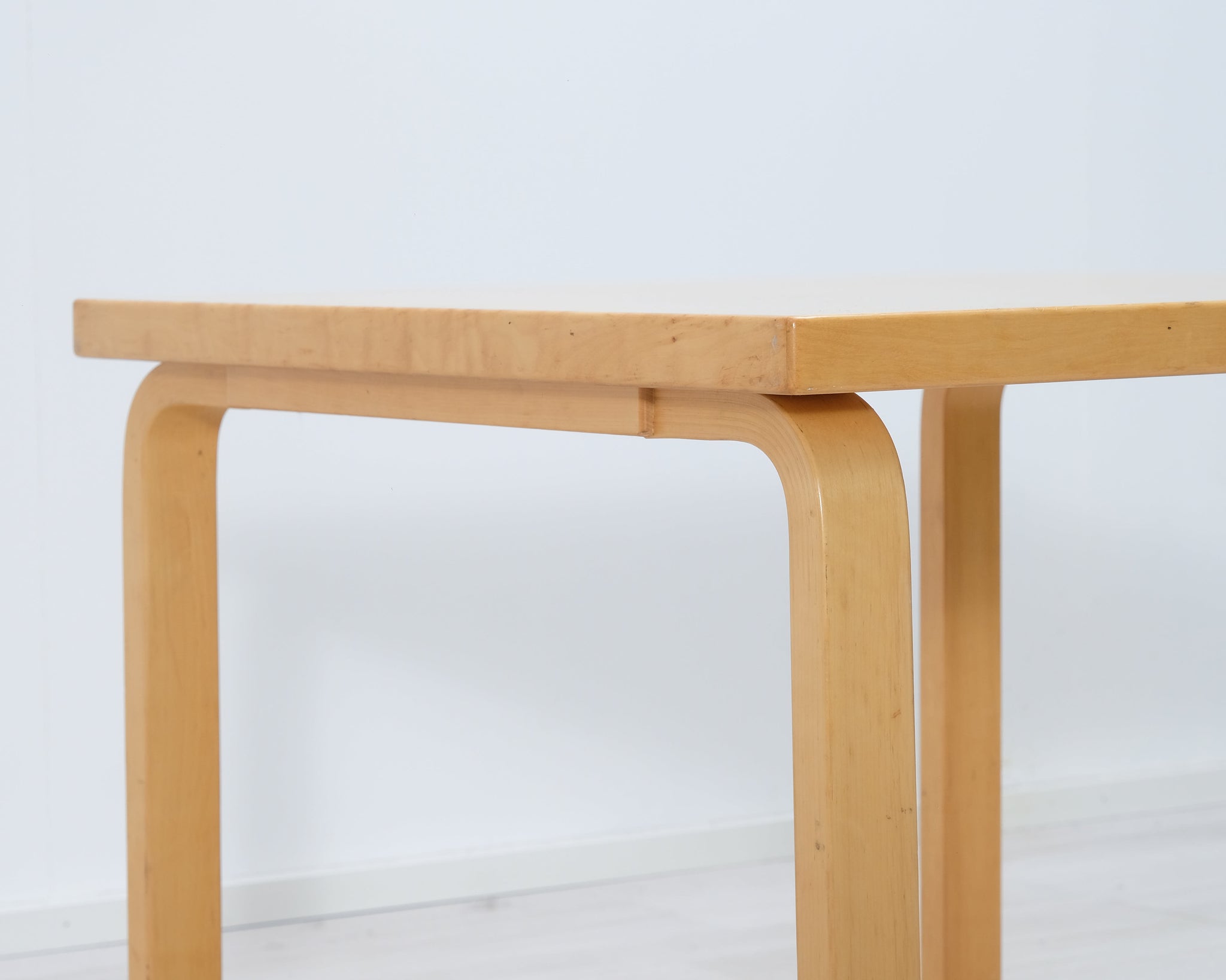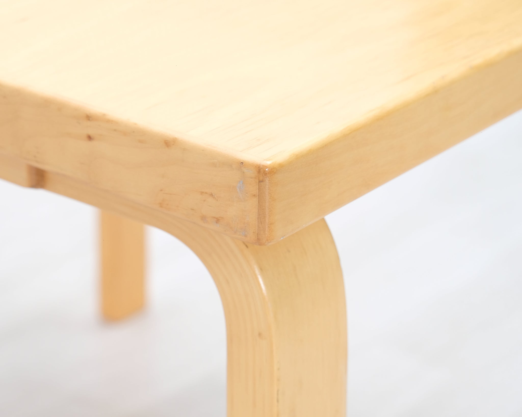 Artekin sivupöytä. Pöydässä on Alvar Aallon suunnittelulle tunnusomaista arjen estetiikkaa pelkistetyn ulkonäön ja toiminnallisuuden muodossa. Materiaalina koivu.