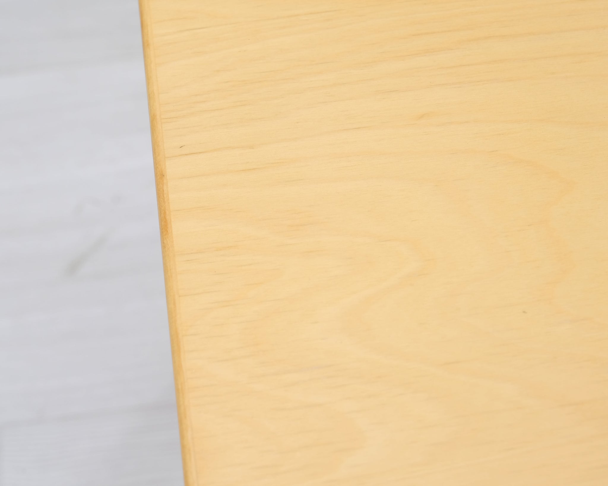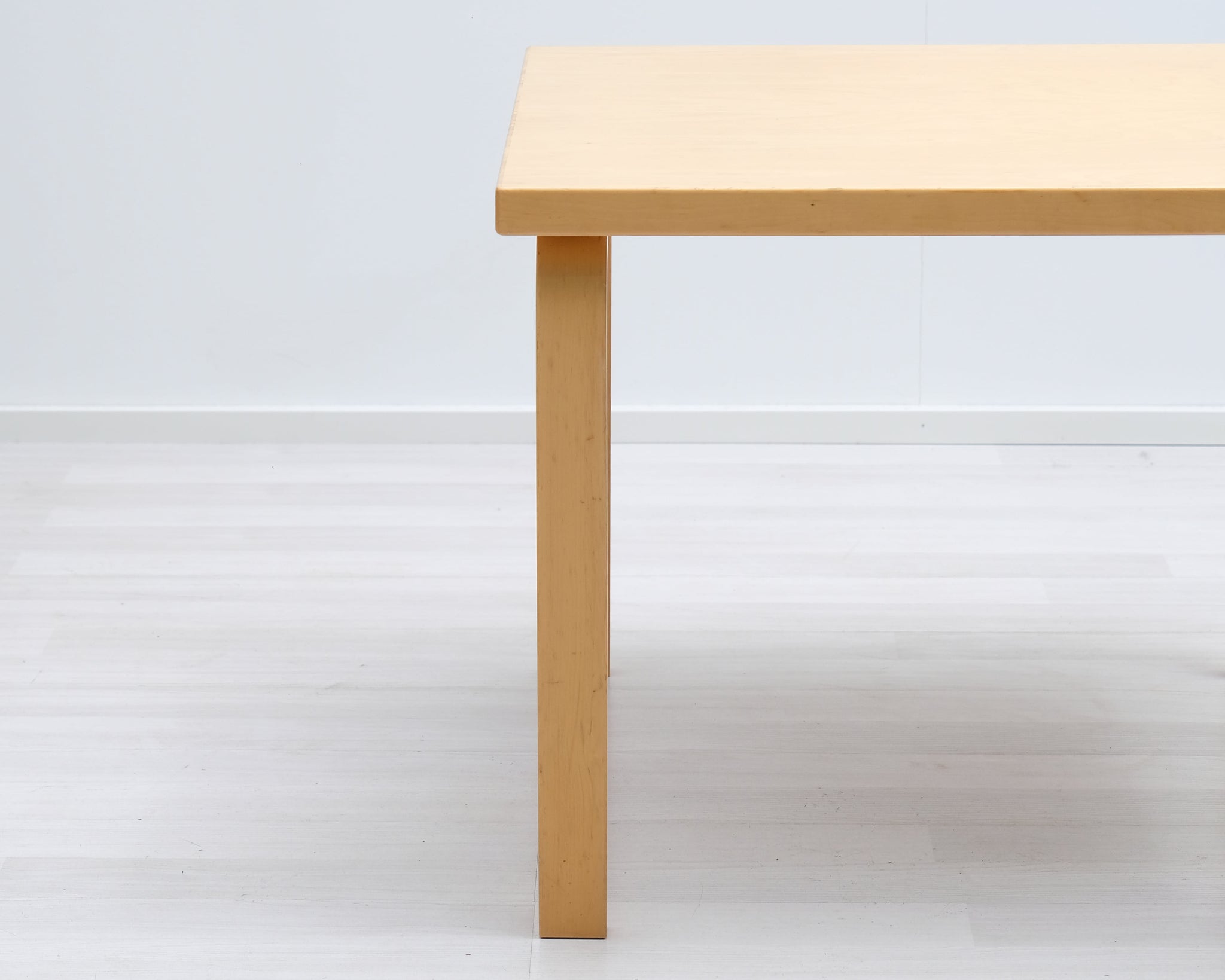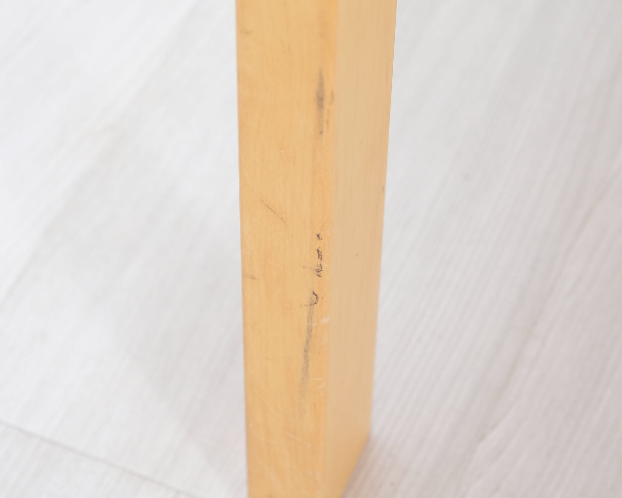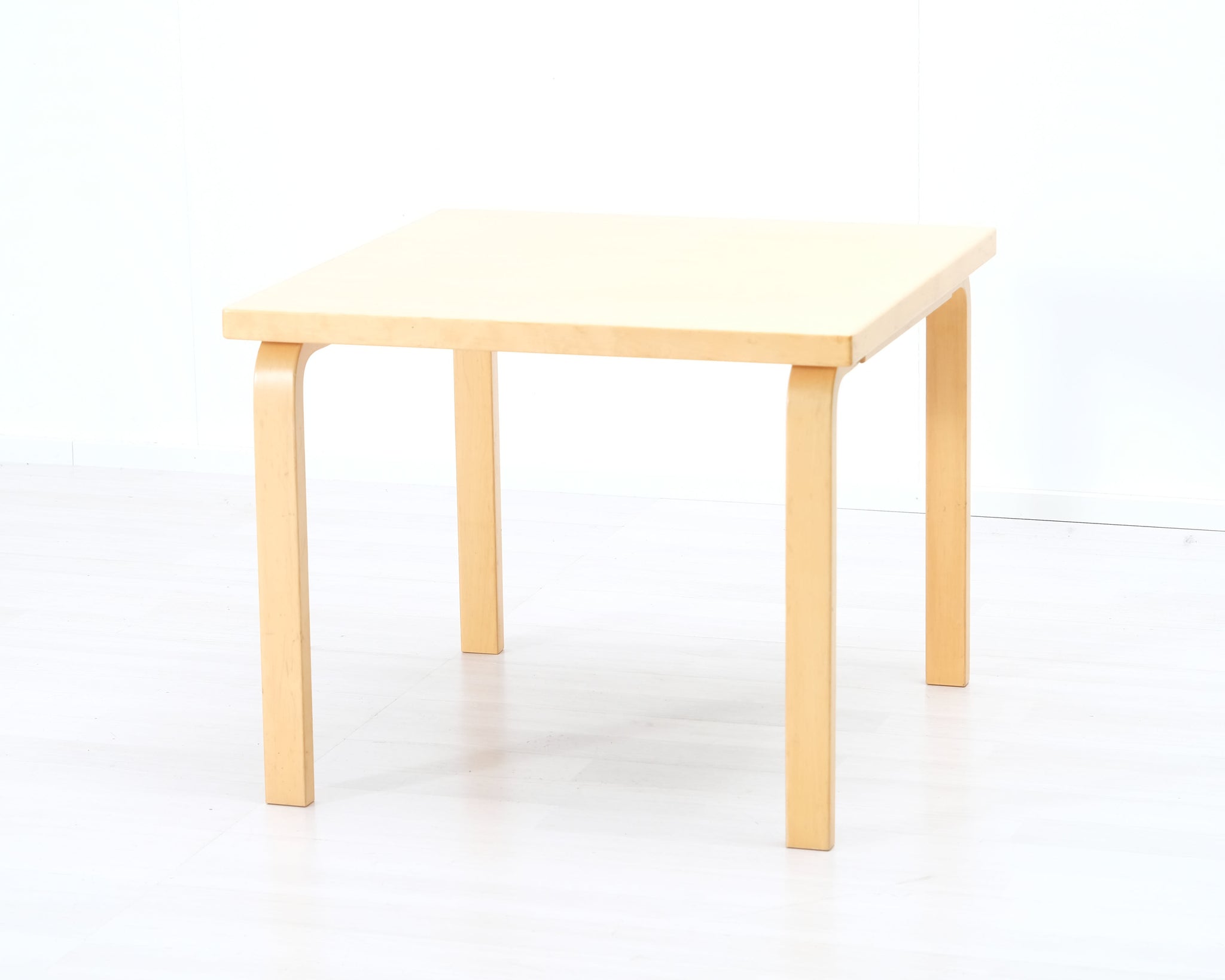 Artekin sivupöytä. Pöydässä on Alvar Aallon suunnittelulle tunnusomaista arjen estetiikkaa pelkistetyn ulkonäön ja toiminnallisuuden muodossa. Materiaalina koivu.