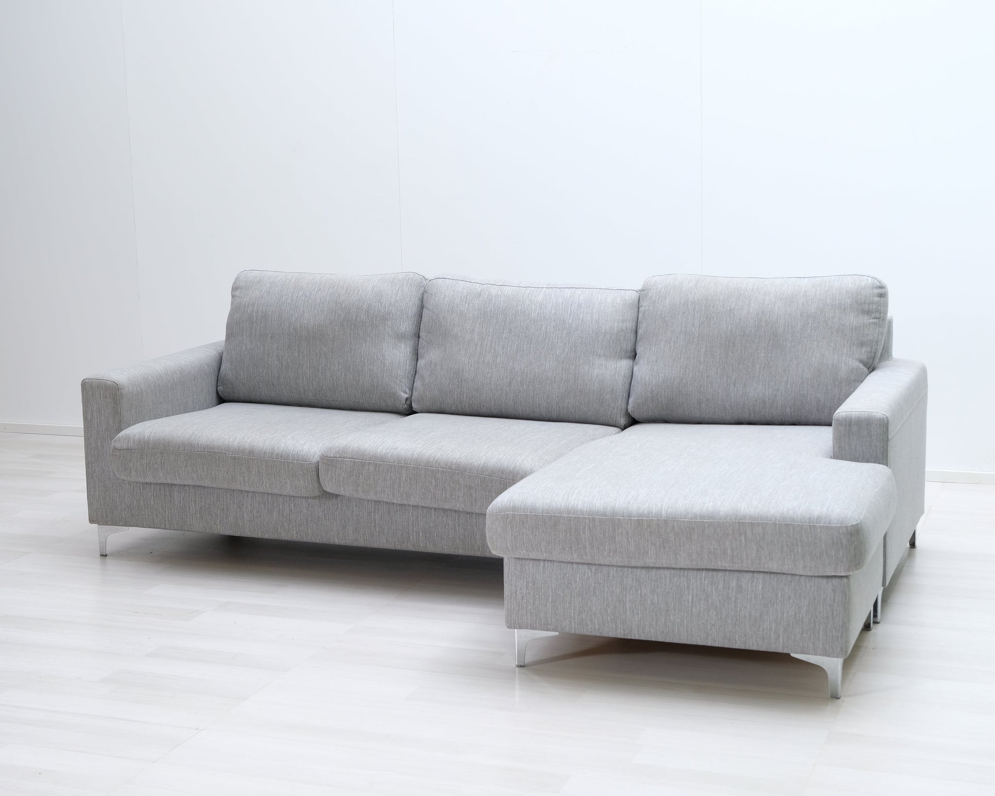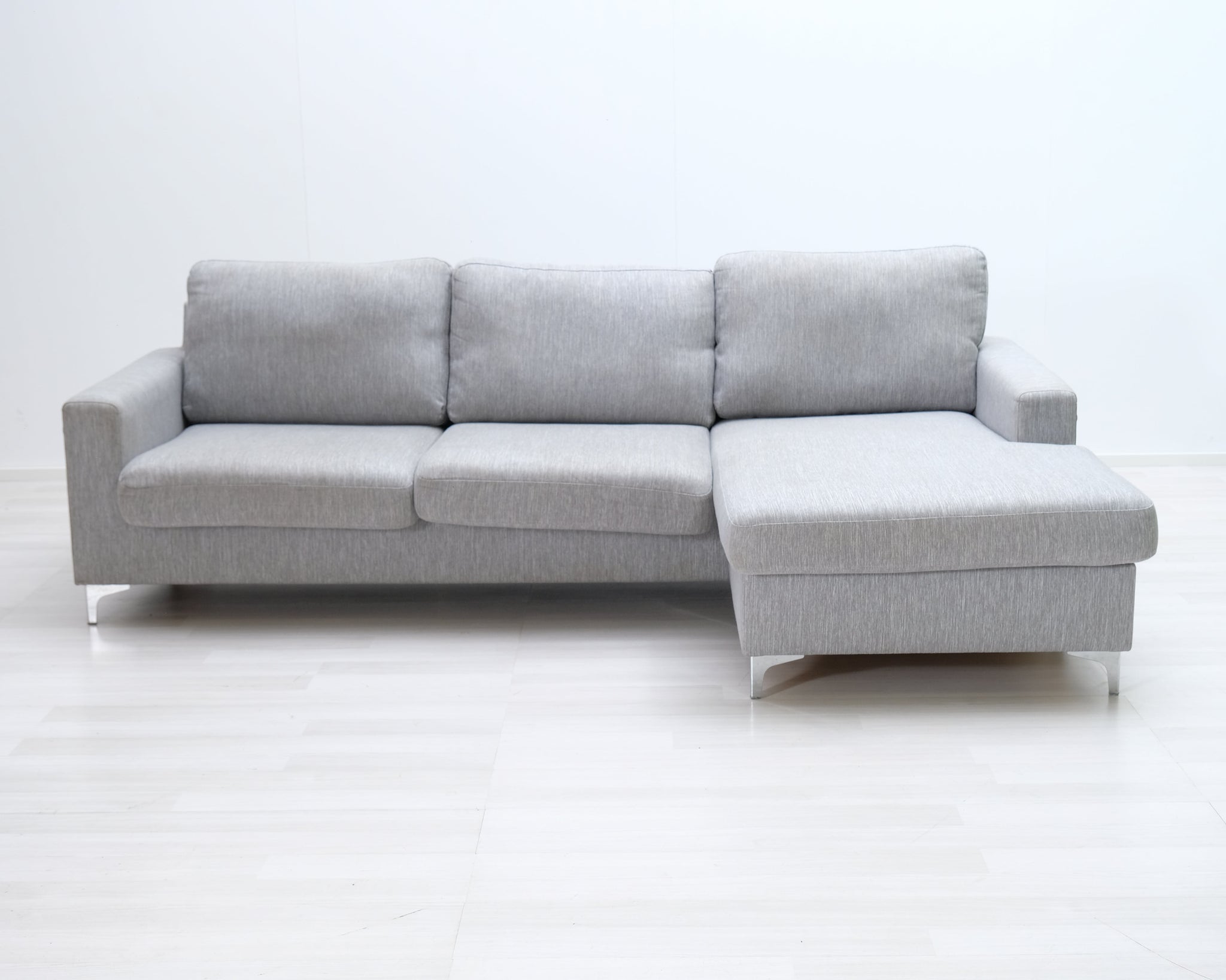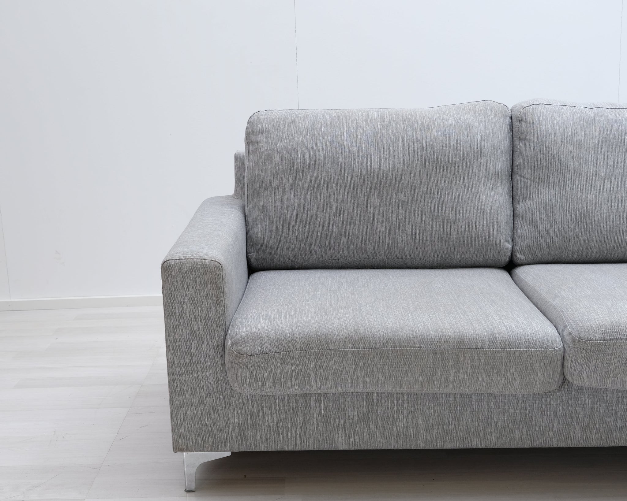Askon valmistama kolmen istuttava divaanisohva. Vaaleanharmaa kangasverhoilu.