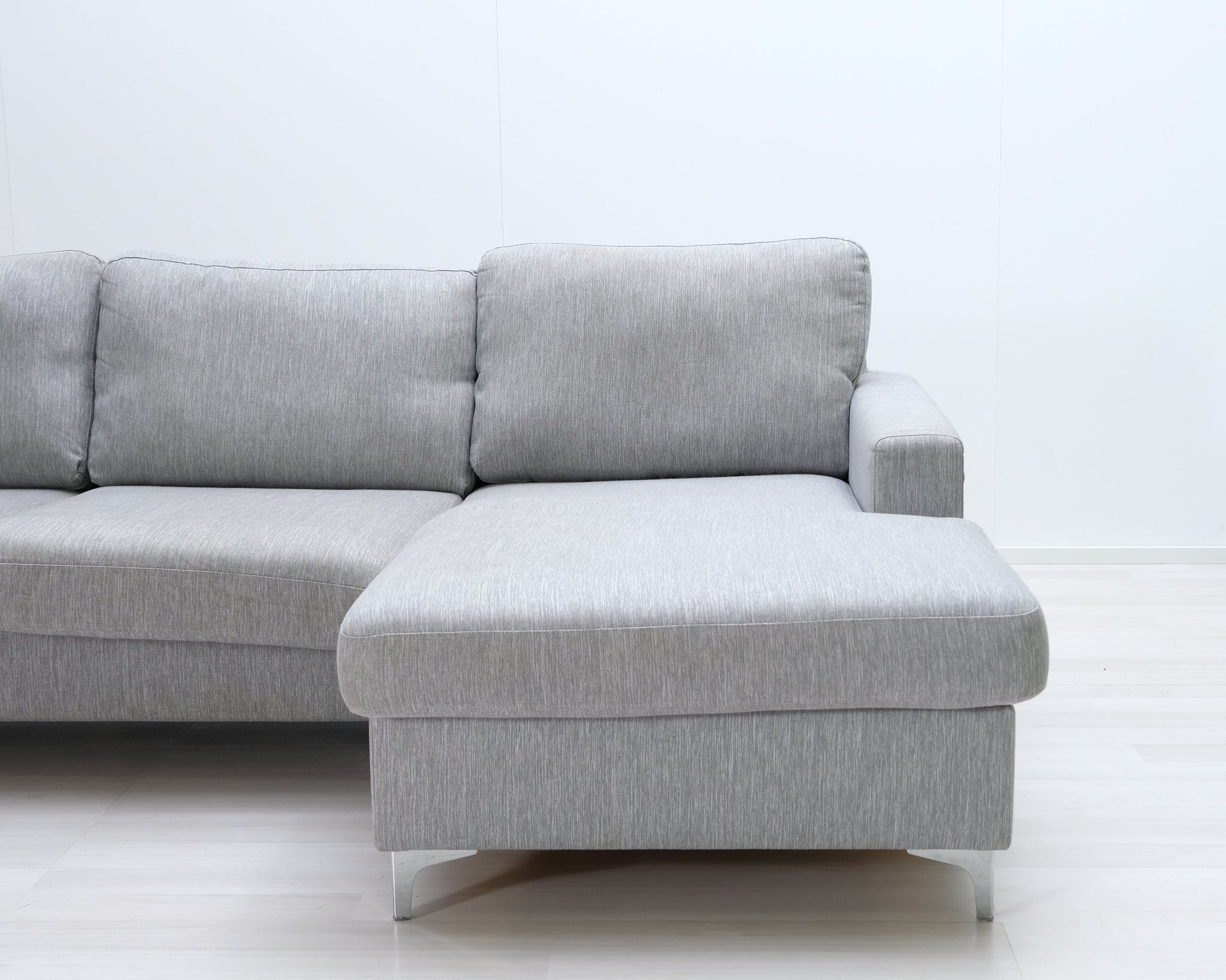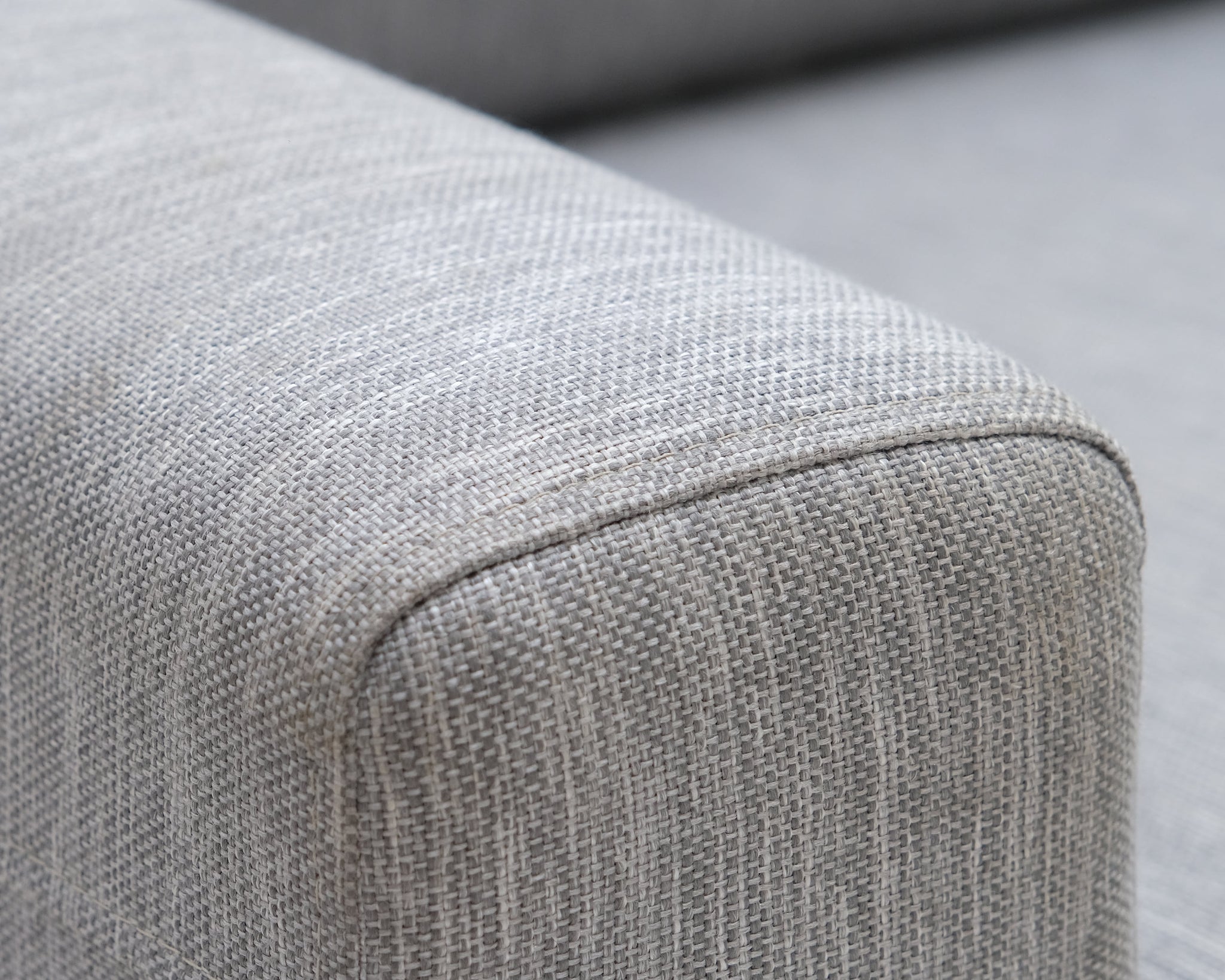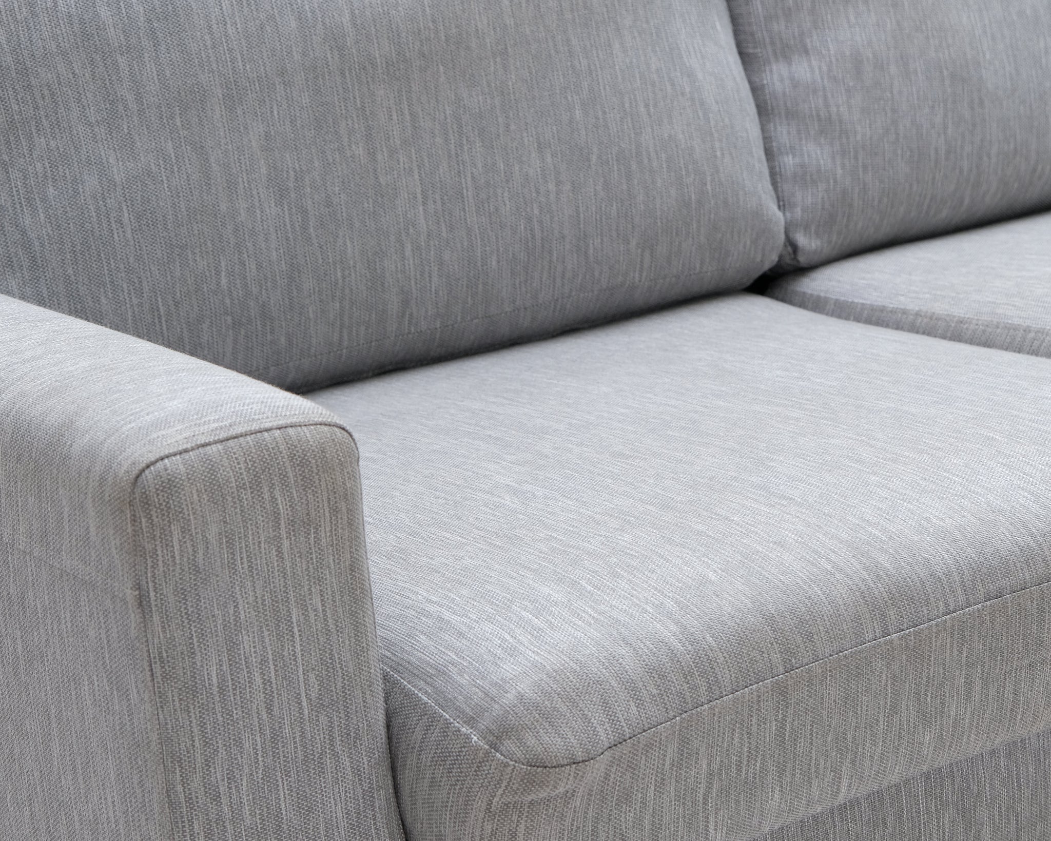 Askon valmistama kolmen istuttava divaanisohva. Vaaleanharmaa kangasverhoilu.