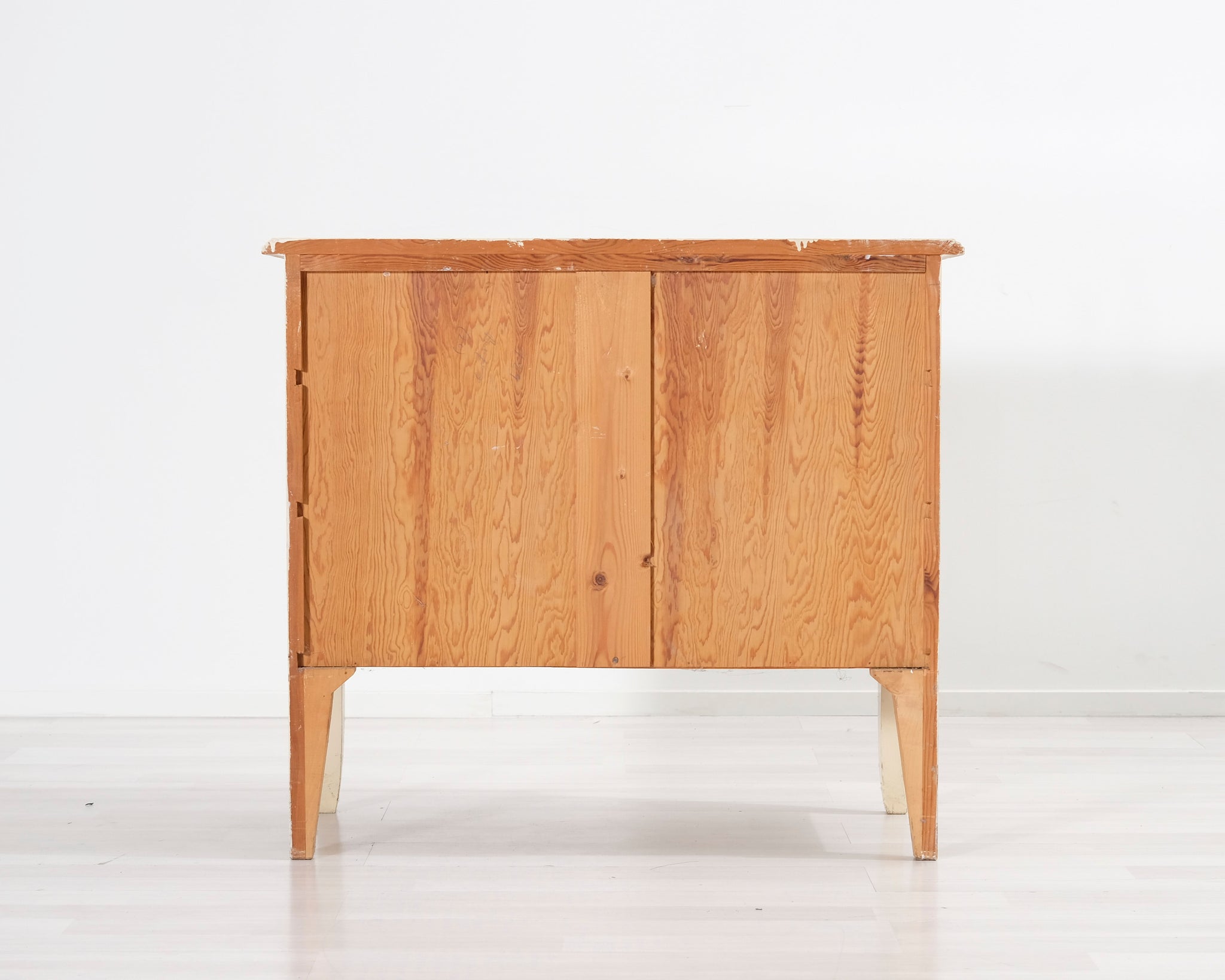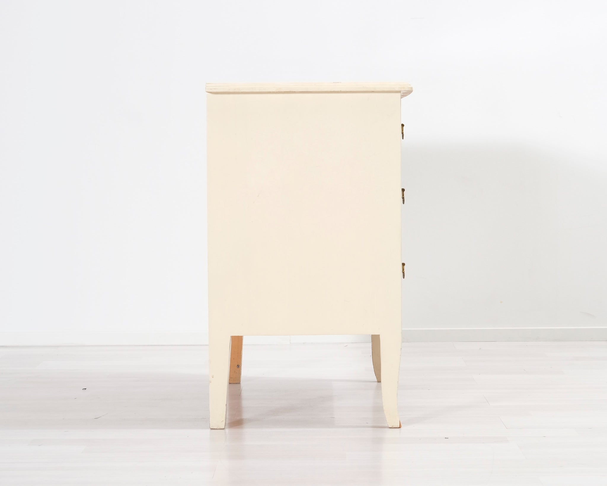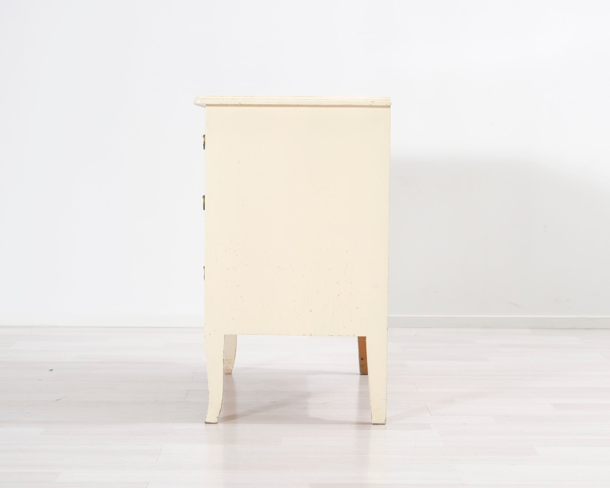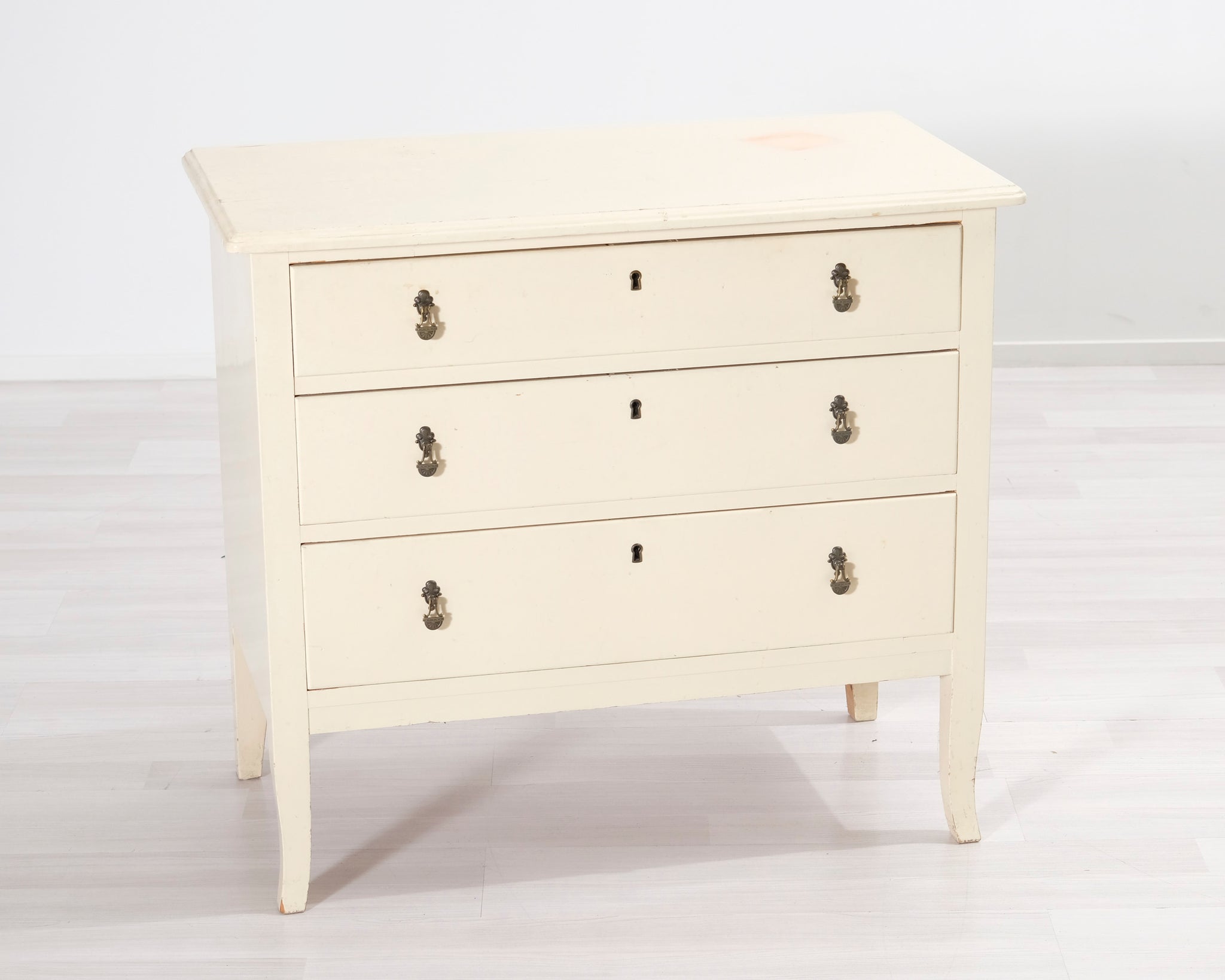 Alkuperäiskunnossa oleva kermanvalkoinen lipasto. Valmistettu 1900-luvun alussa. Koristeelliset vetimet.