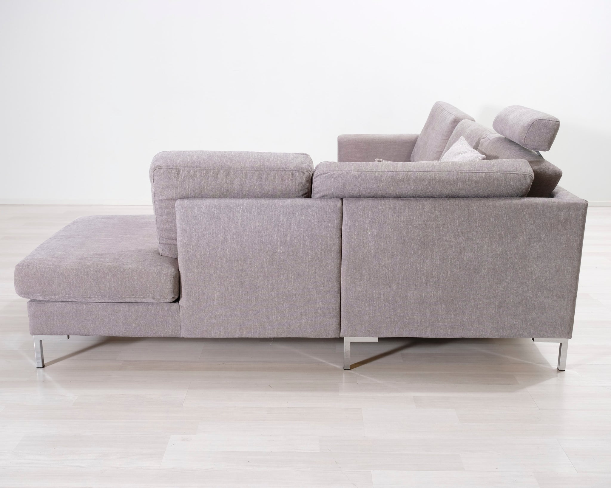 Kaunis harmaa kulmasohva divaanilla. Niskatyyny.