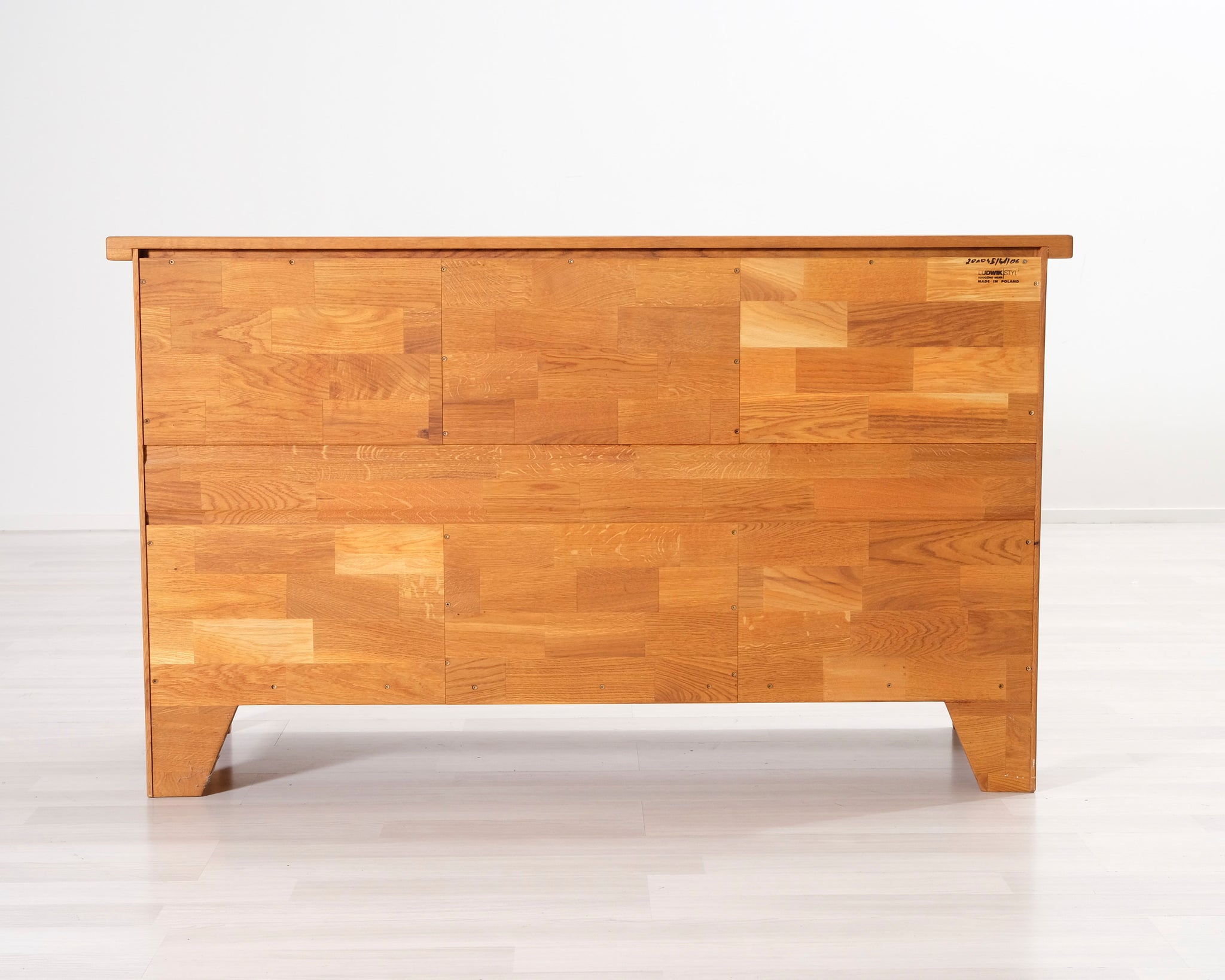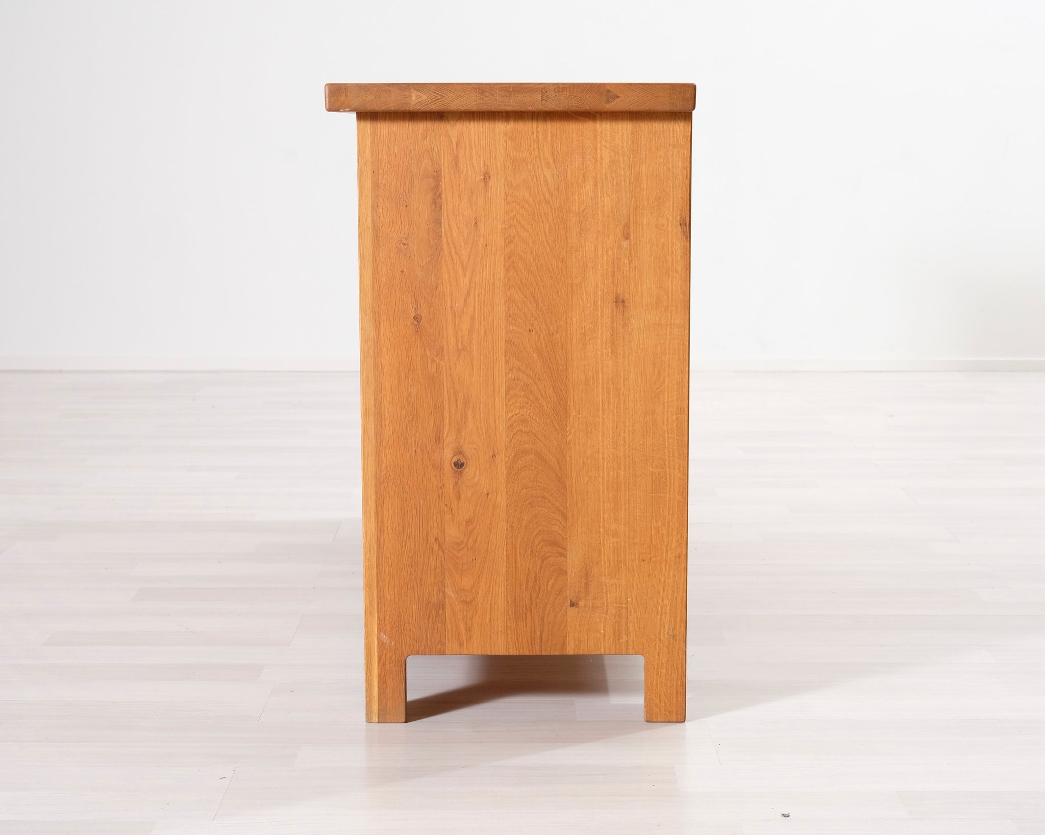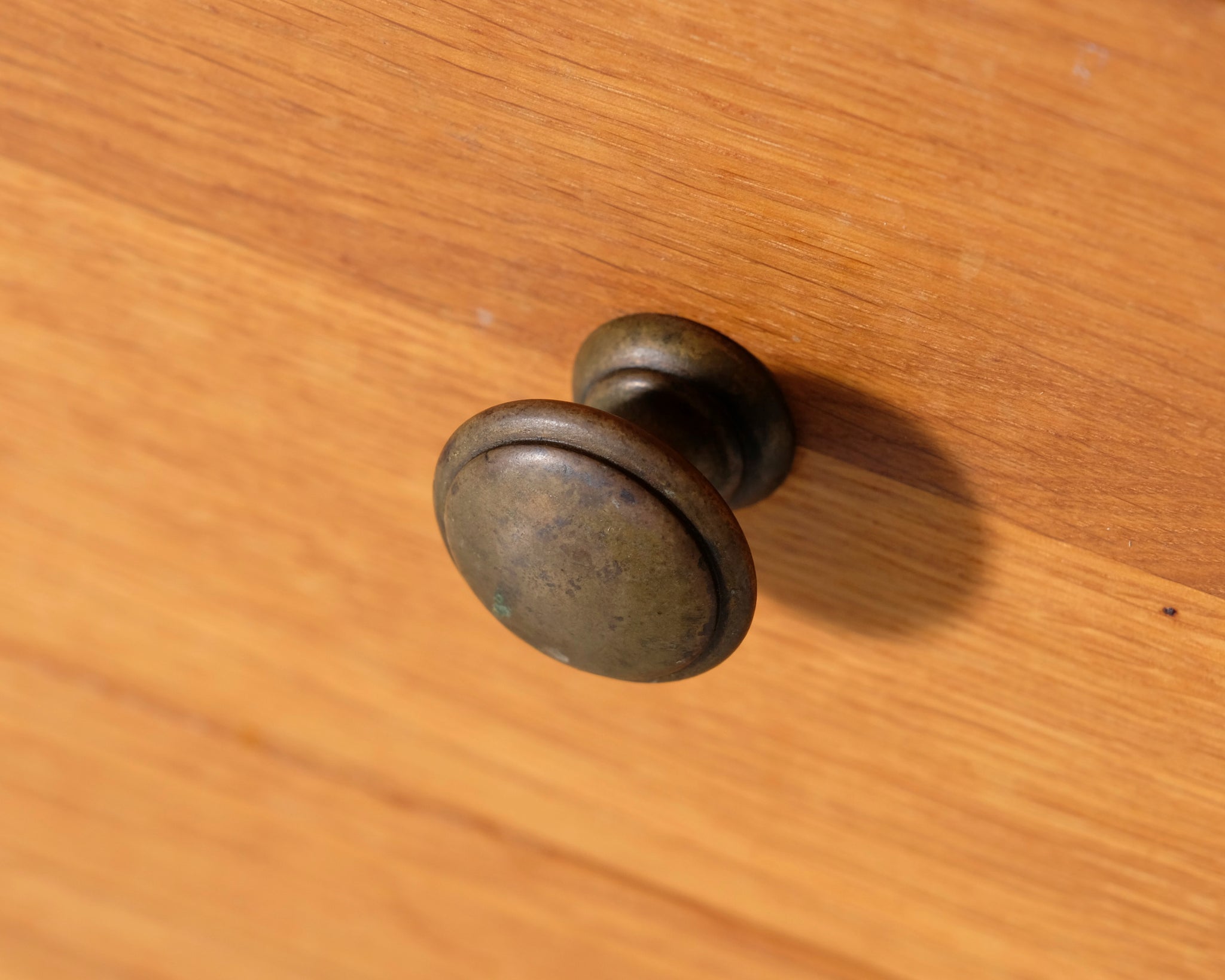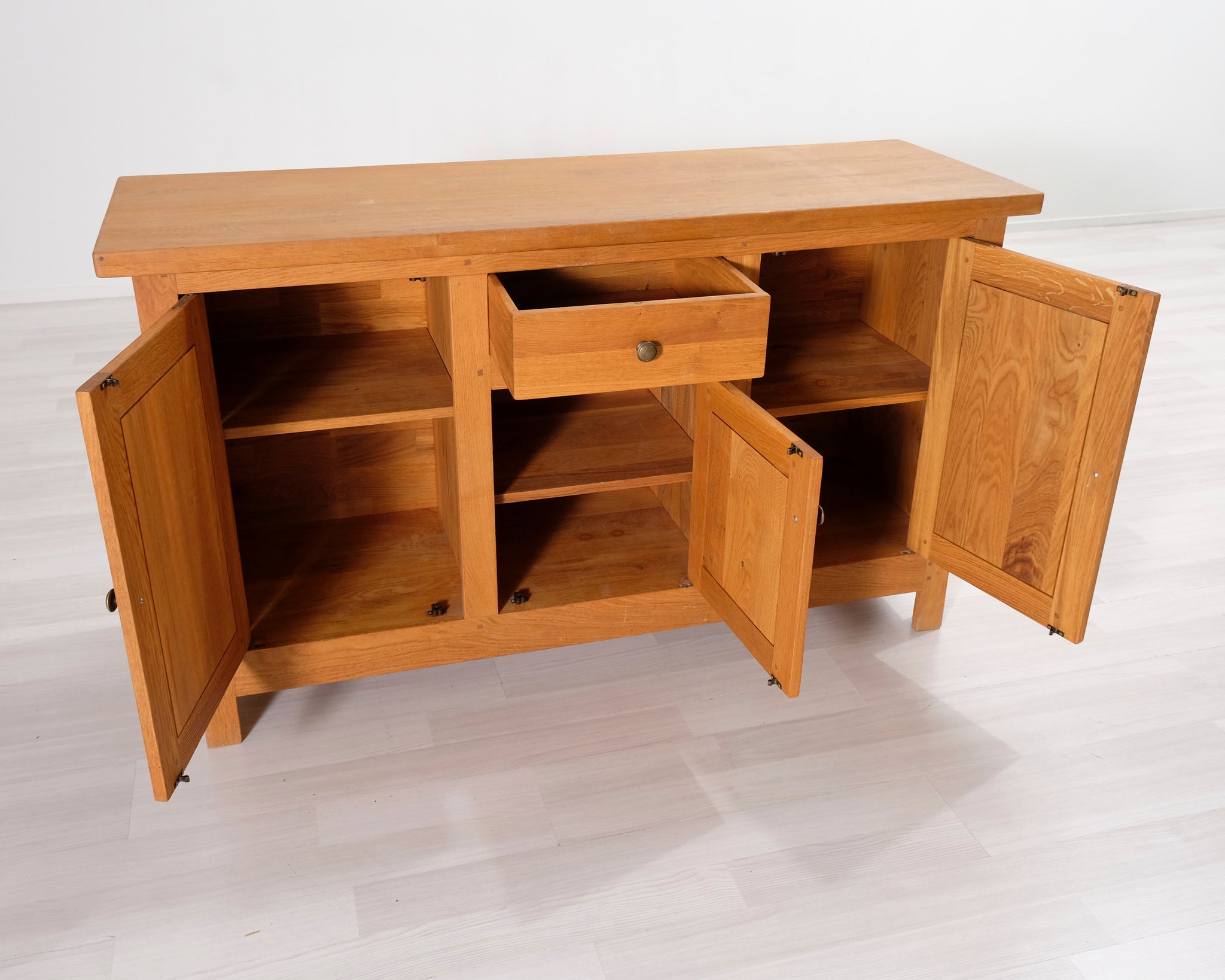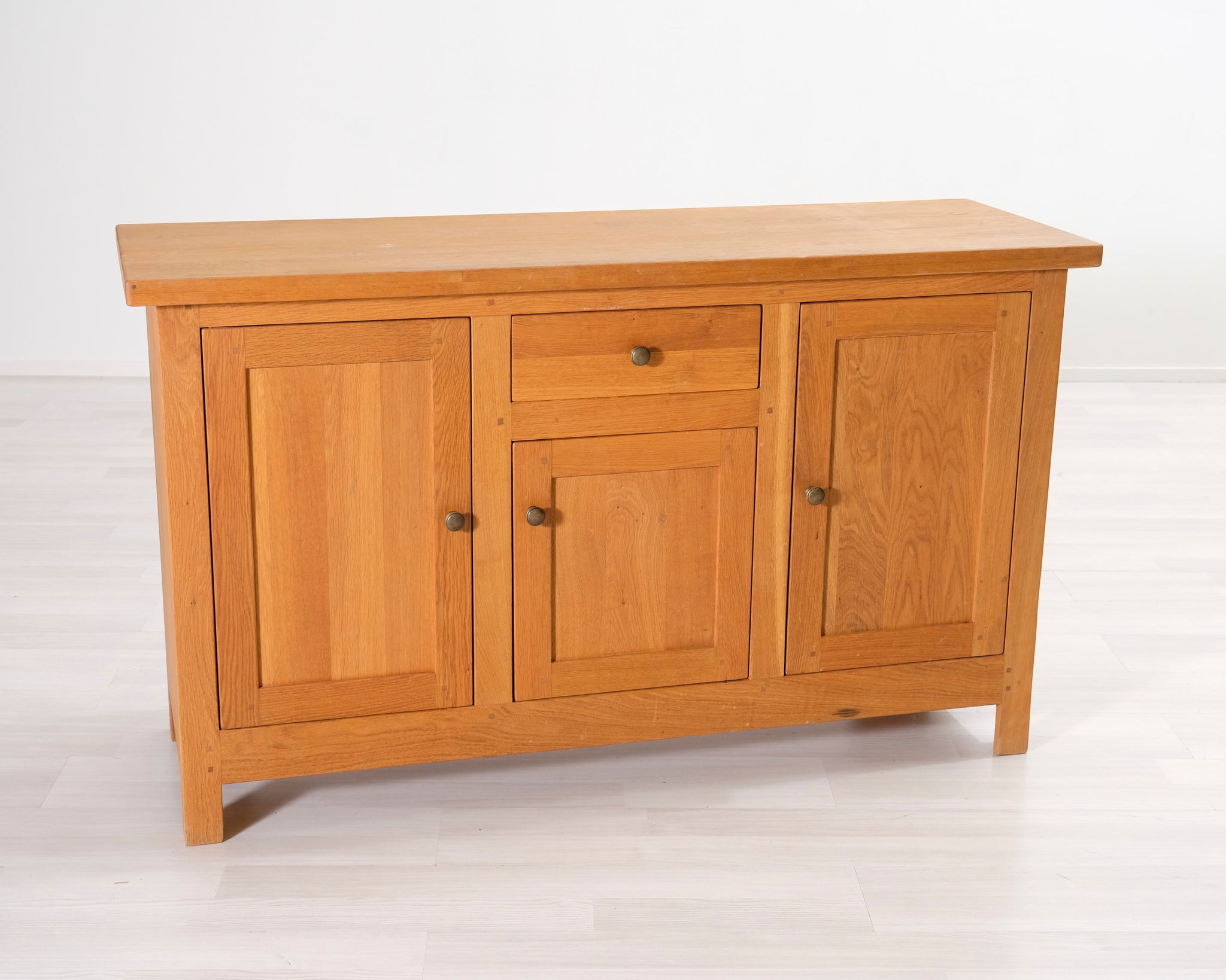 Perinteinen koivusenkki. Kolme sivuille avautuvaa ovea sekä pieni vetolaatikko keskellä.