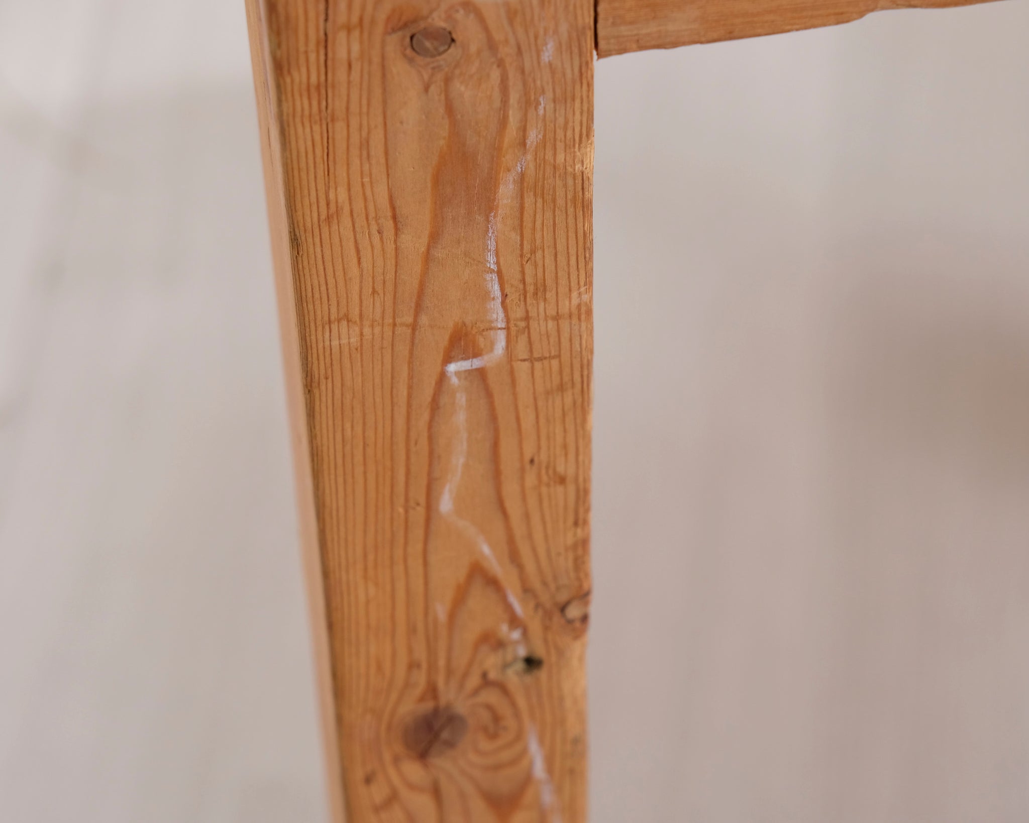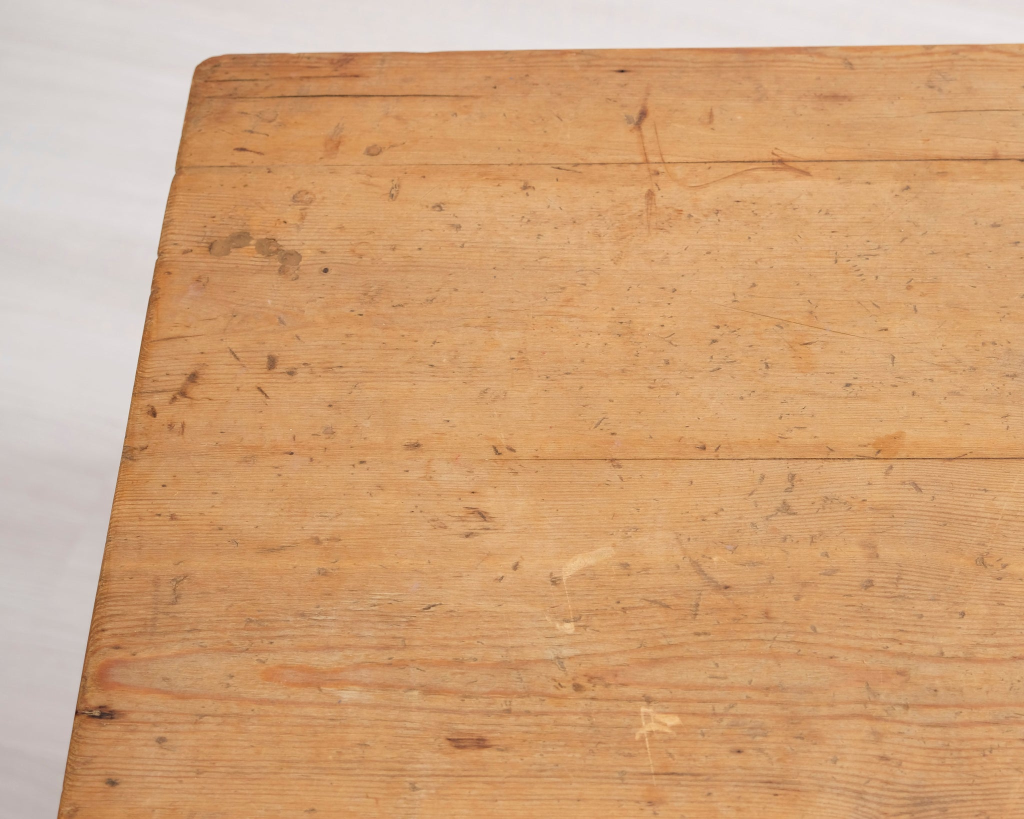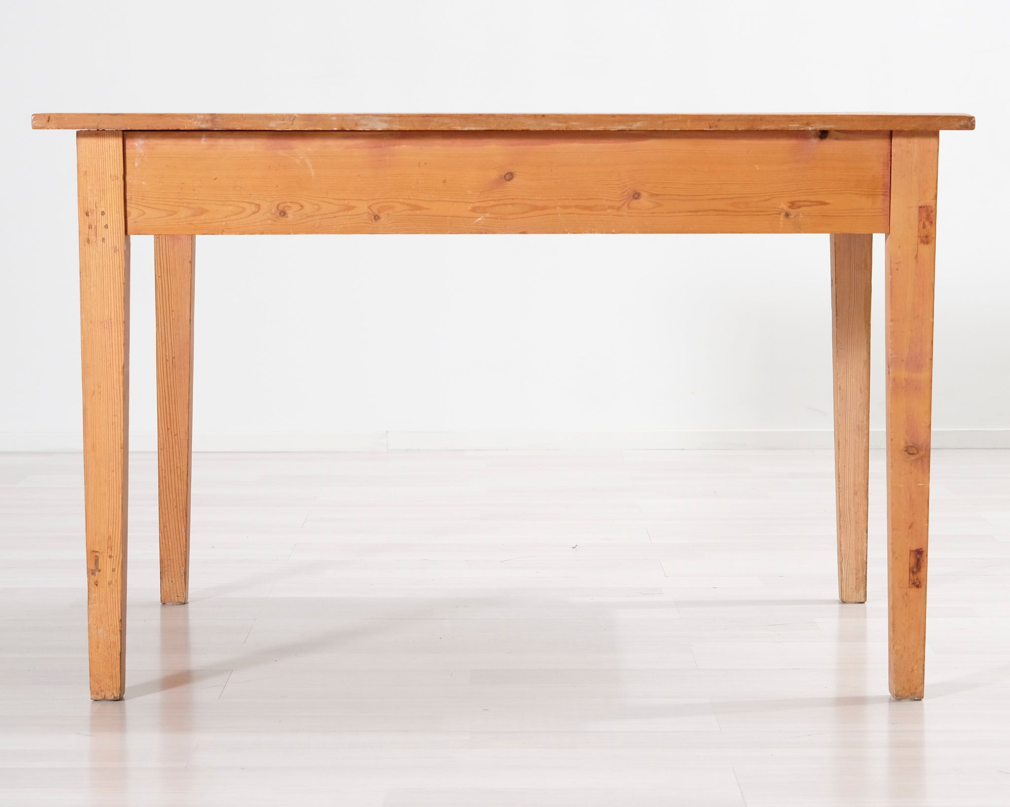 Kaunis puinen pöytä, jonka päädyssä ulosvedettävä laatikko. Sopii rustiikkiseen sisustukseen.