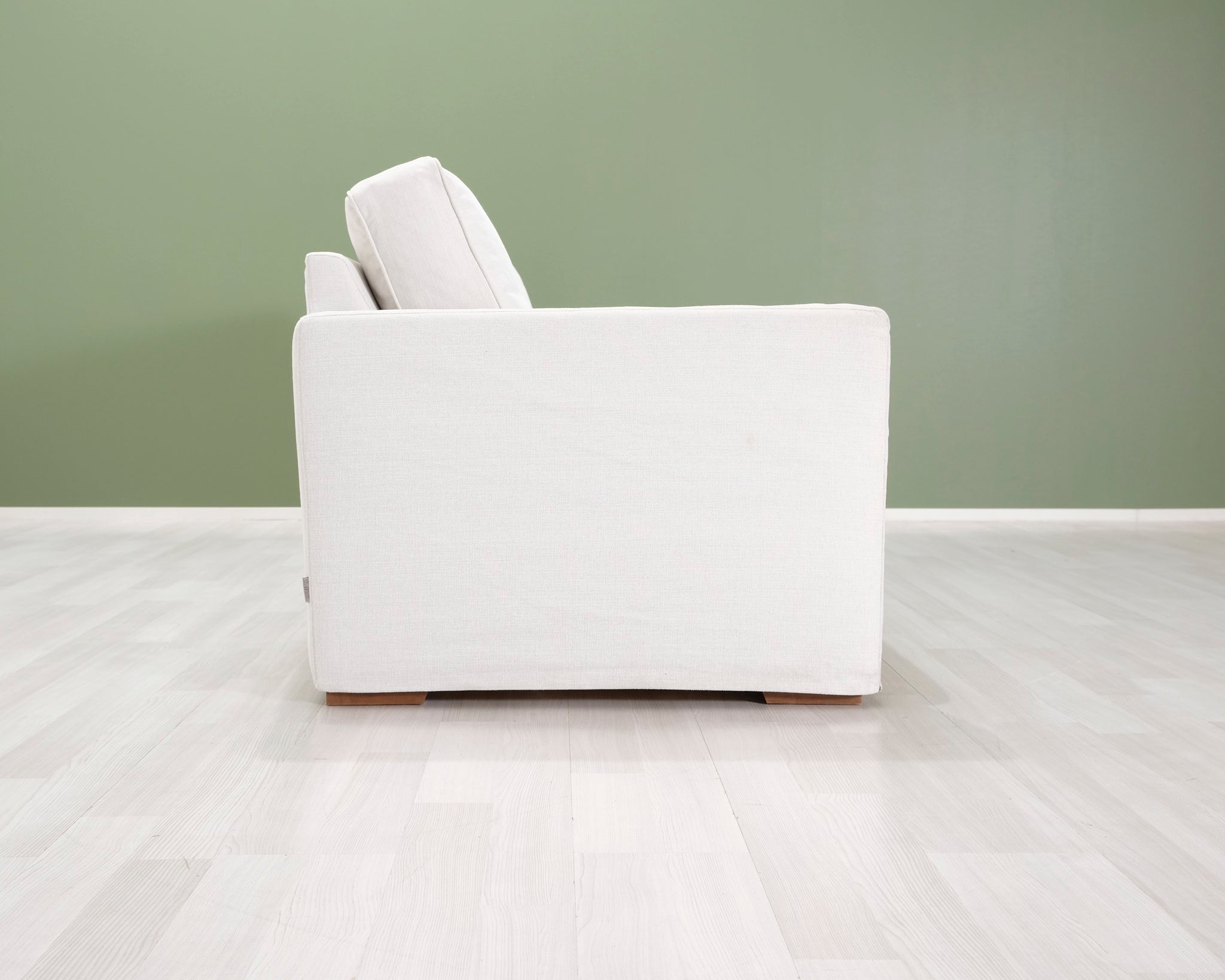 Armetal Italian -merkkinen vuodesohva. Valkoinen verhoilu.