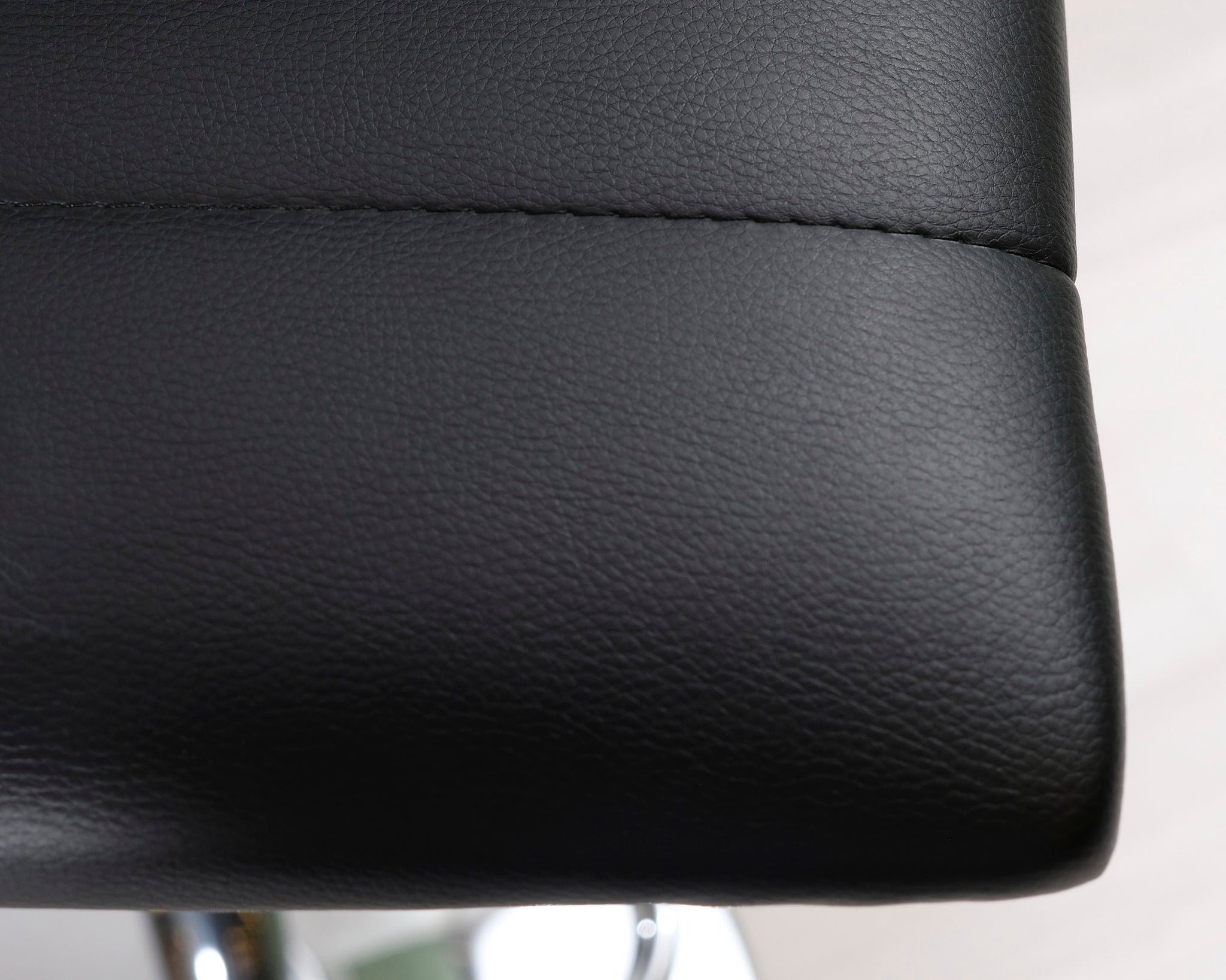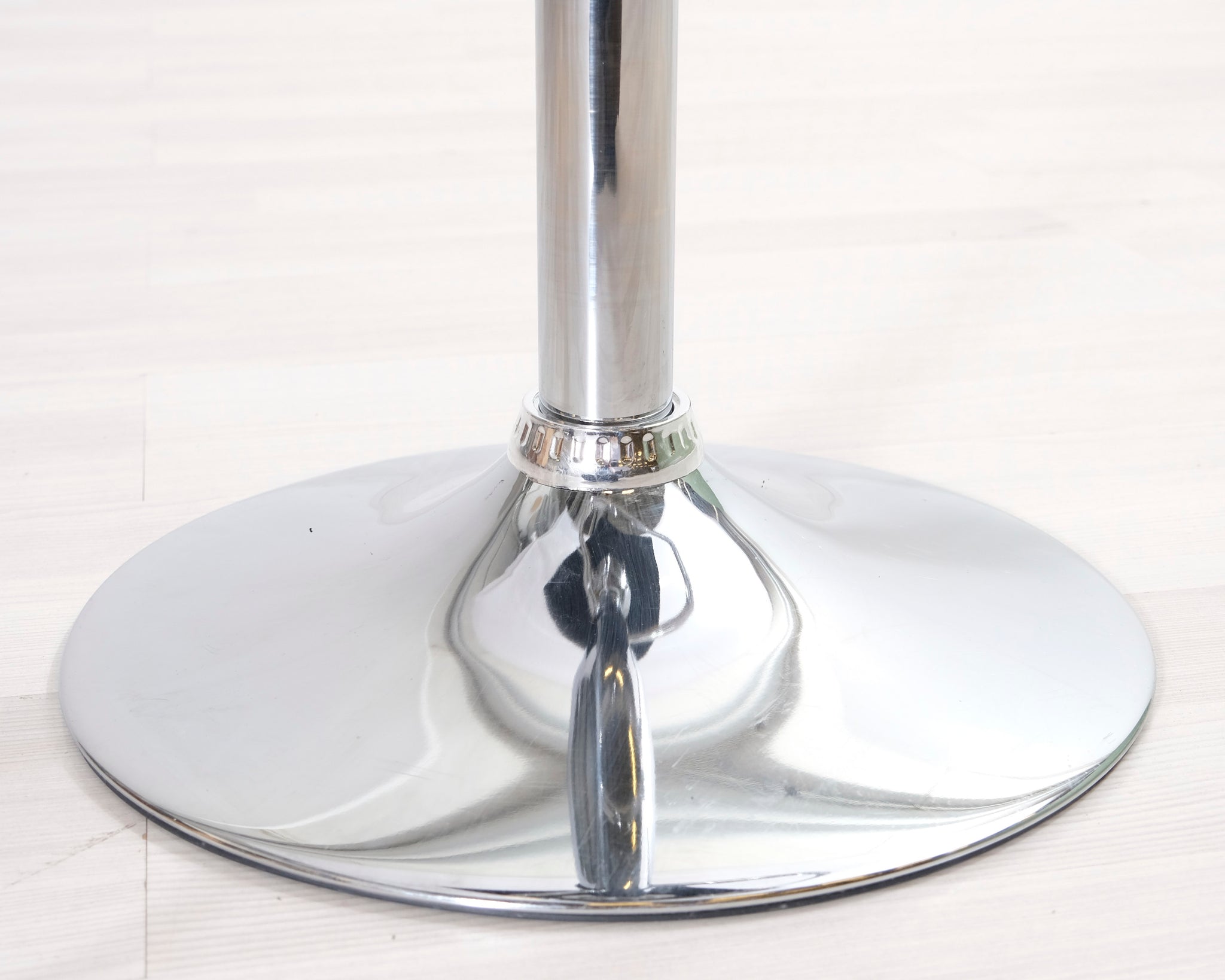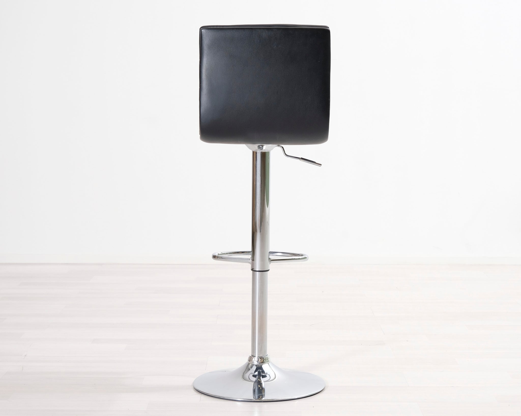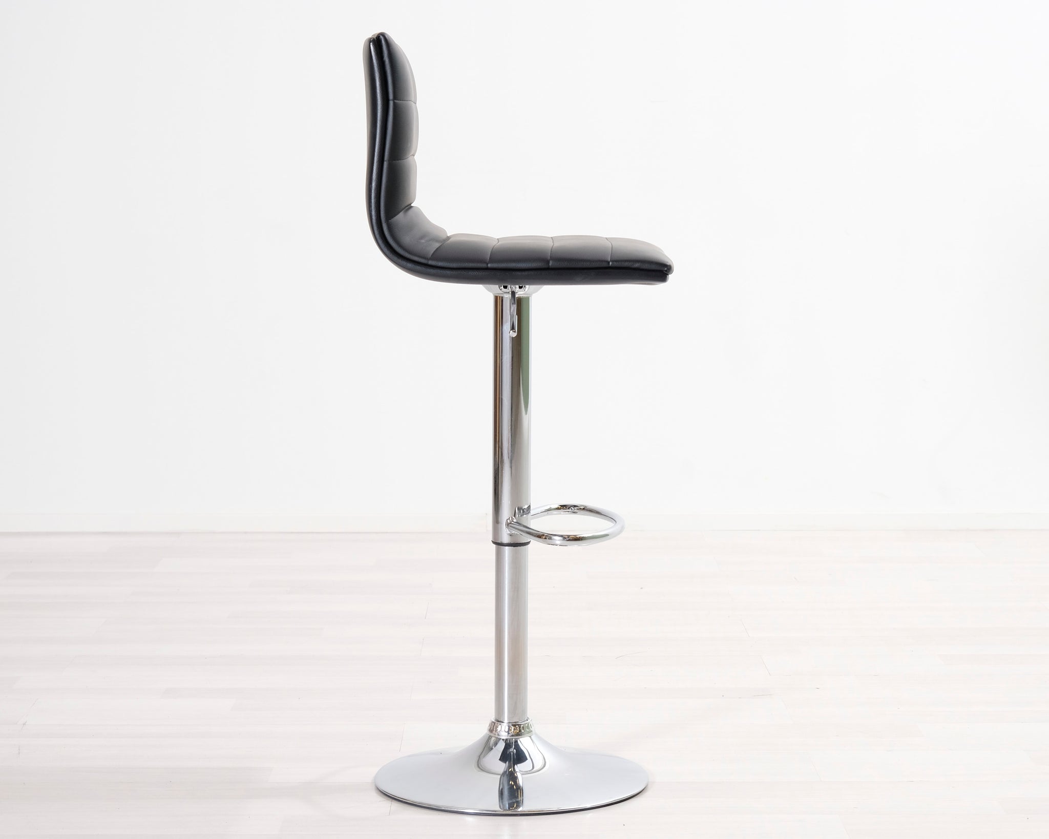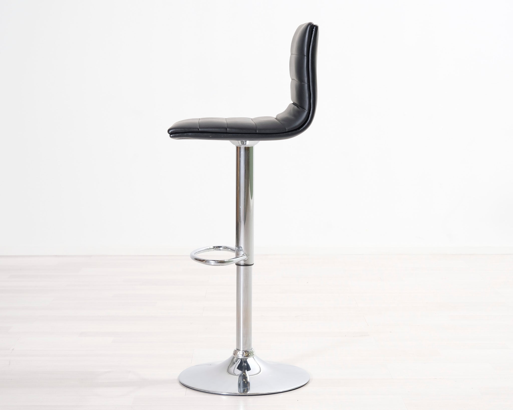Baarituoli metallijalalla. Musta istuin. Tuolin korkeus on säädettäv.