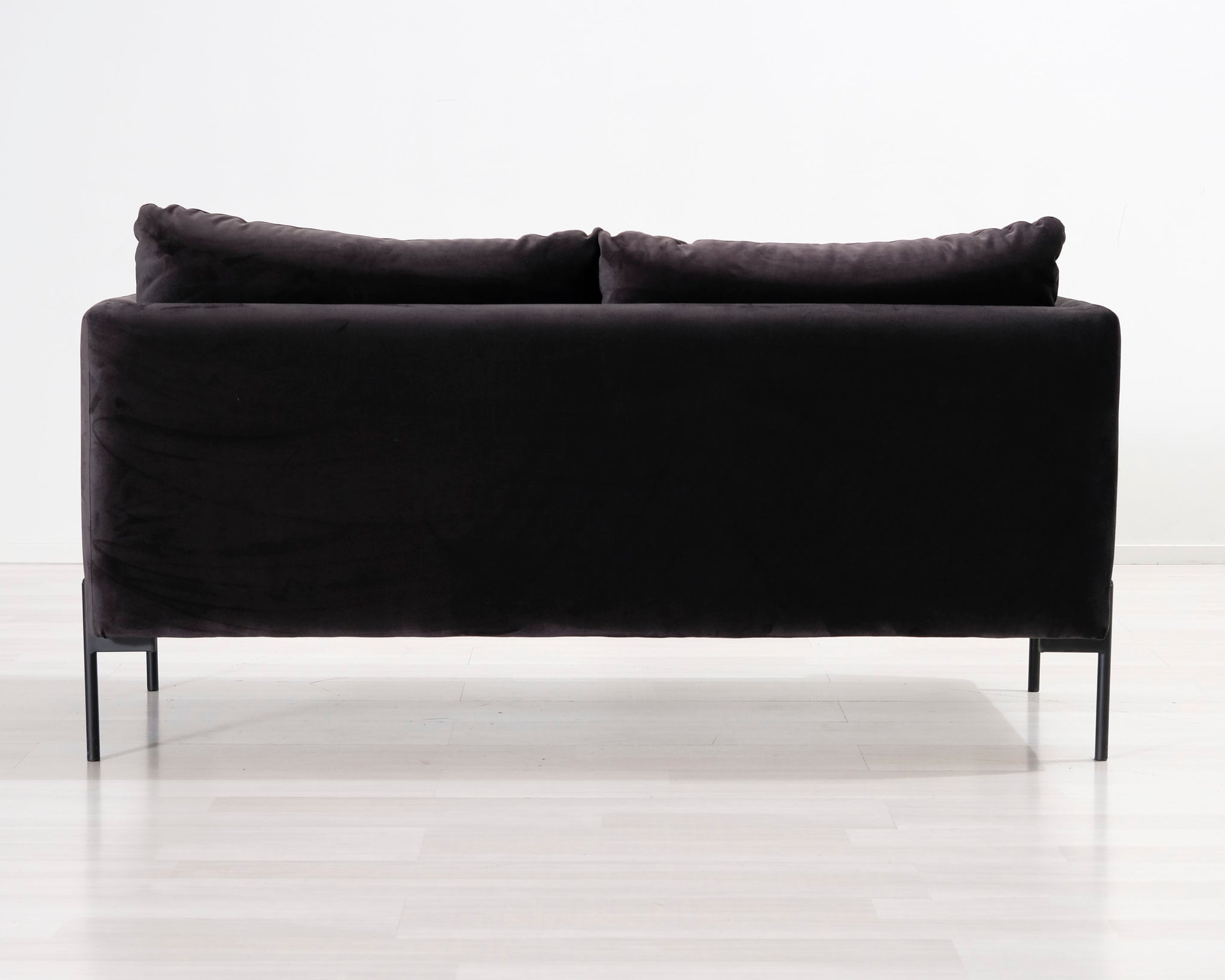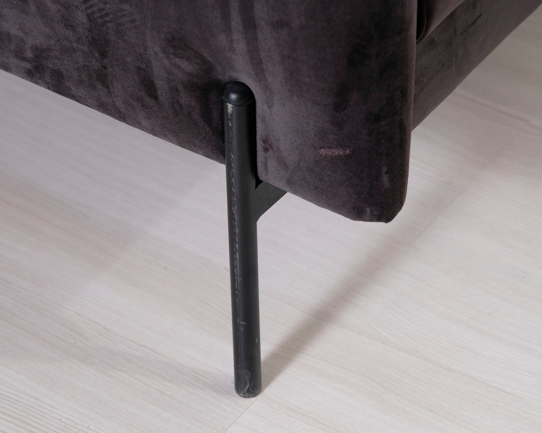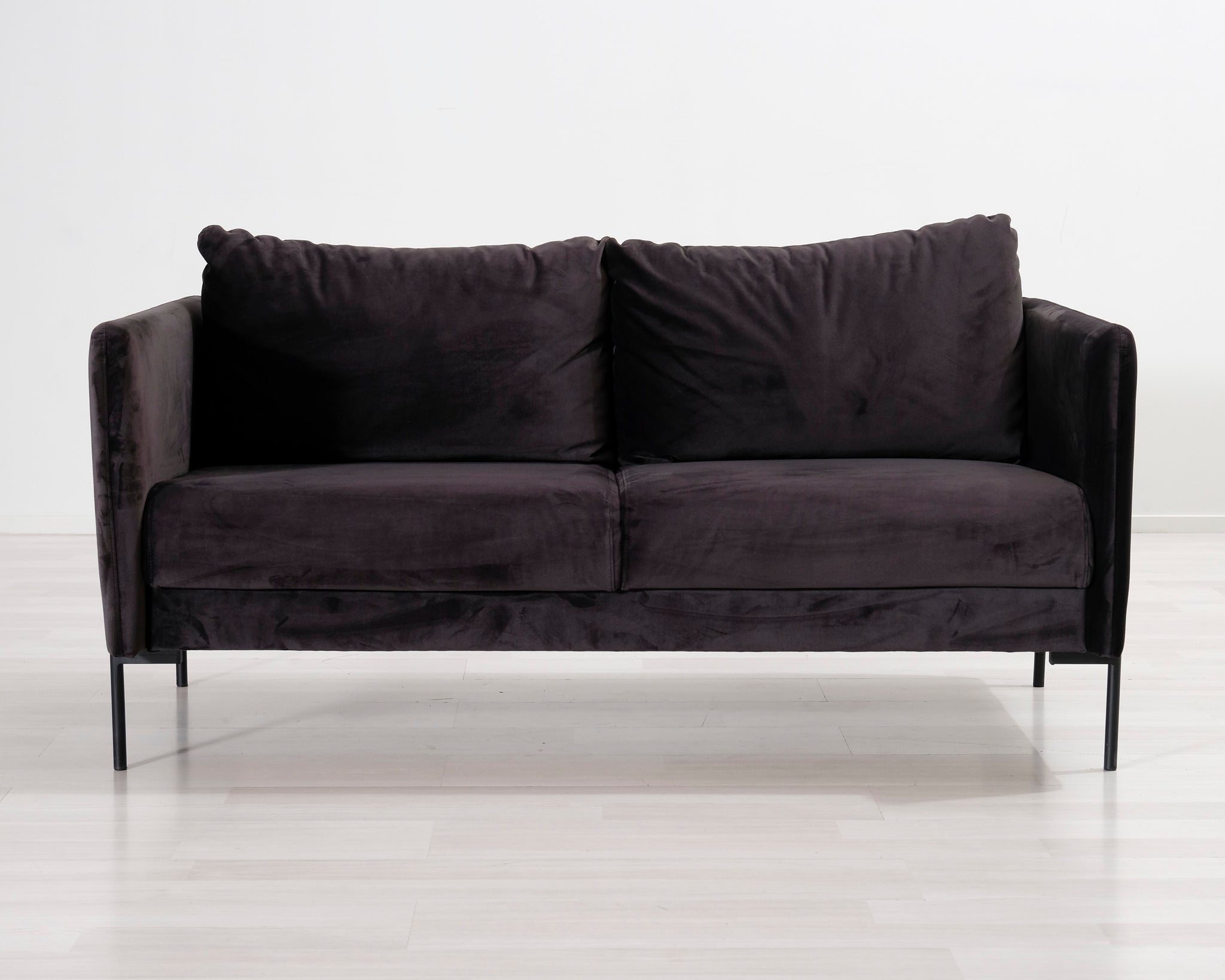 Tässä sohvassa kohtaa kompakti koko ja trendikkyys! Sohva sopii kahdelle hengelle ja se on verhoiltu tummanharmaalla samettikankaalla. Korkeat jalat antavat sohvalle ilmavan ilmeen ja helpottaa imuroimista sohvan alta.