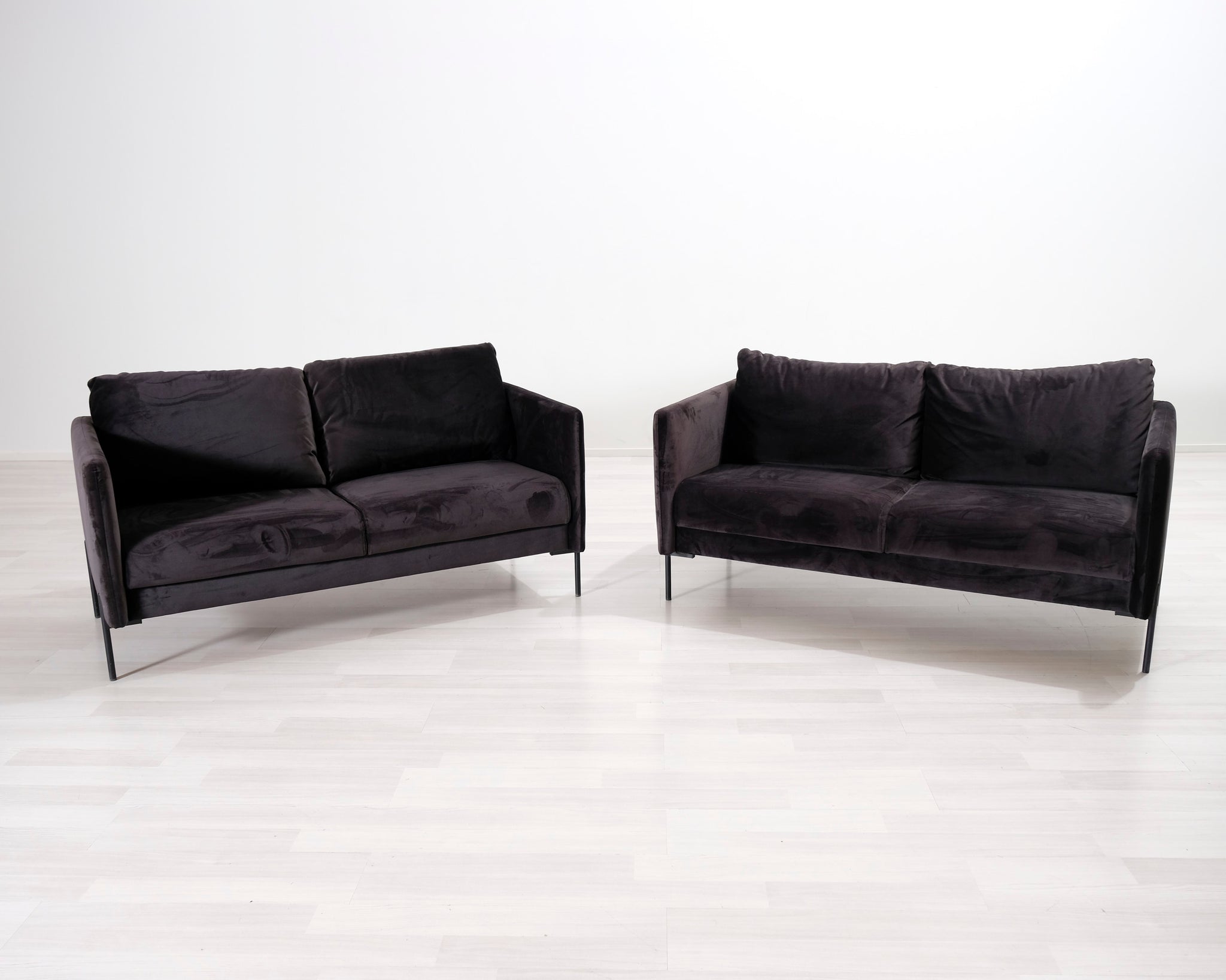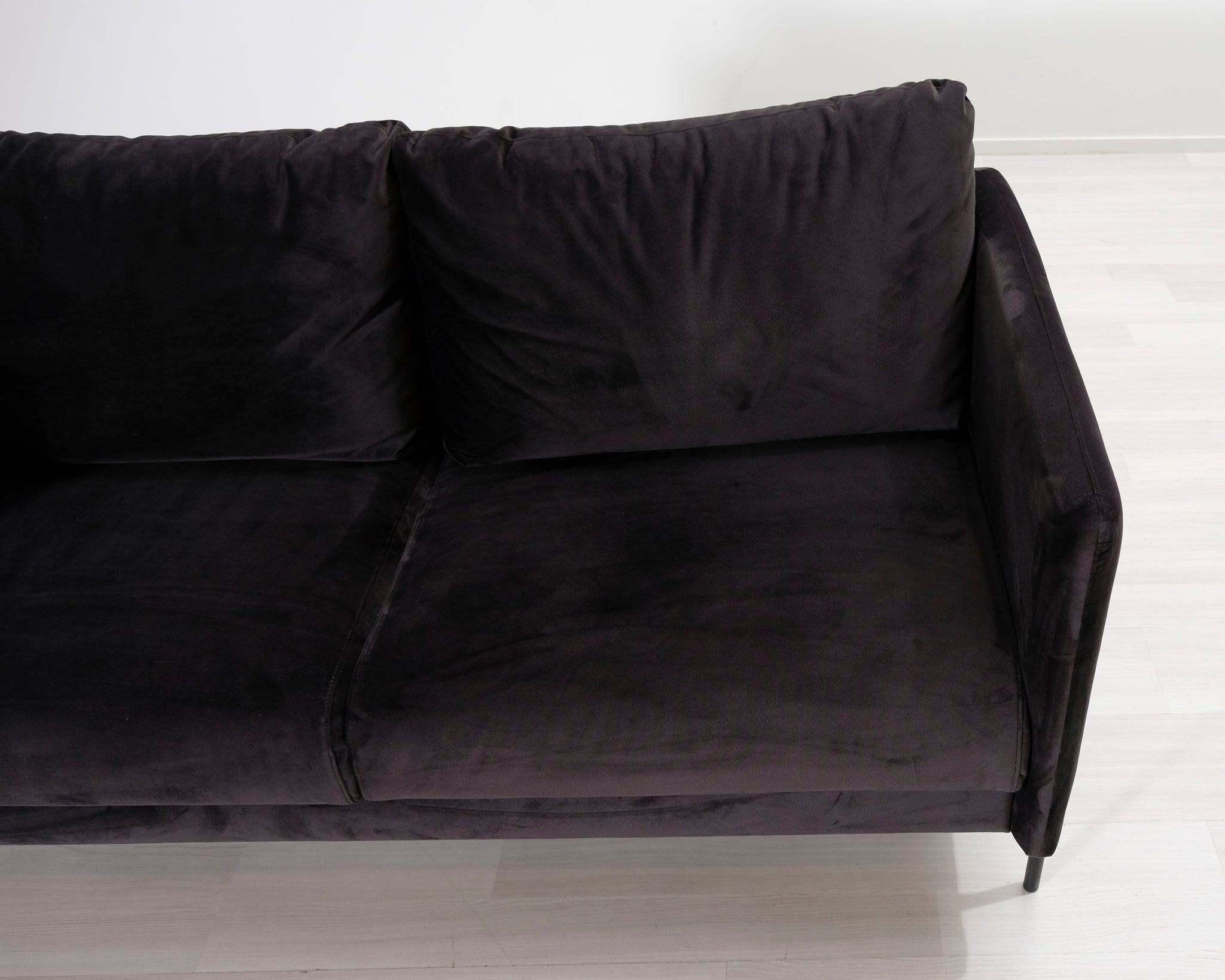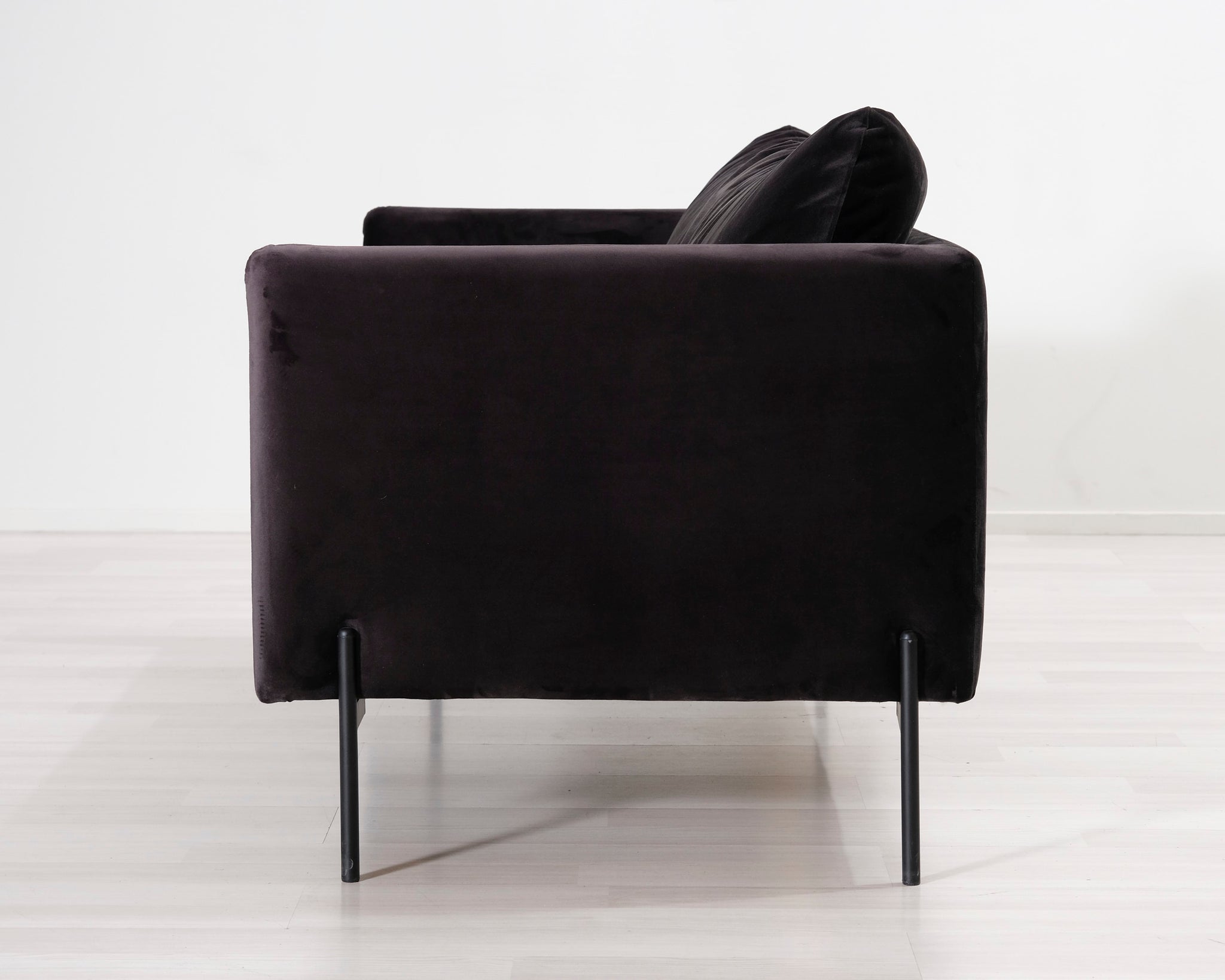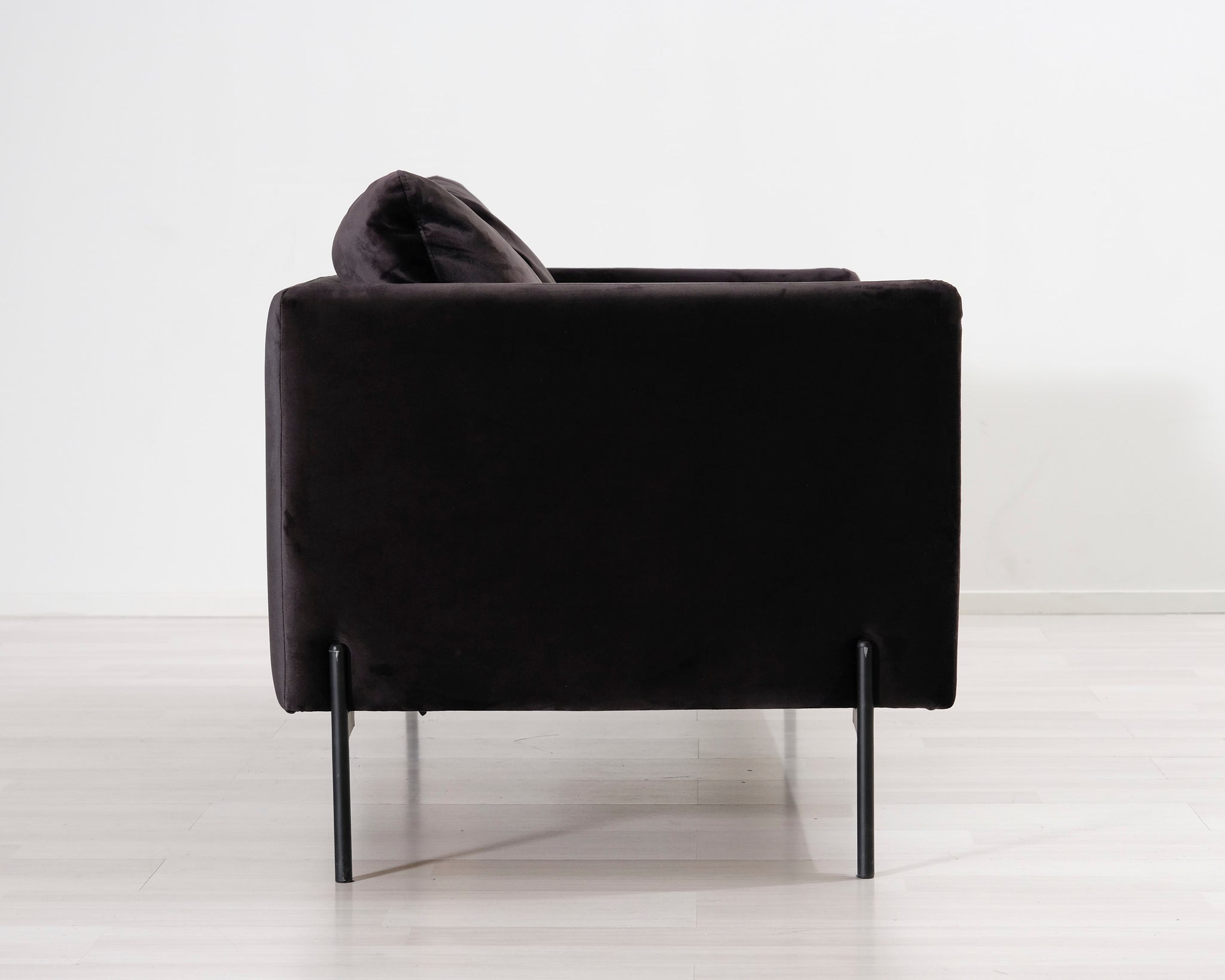 Tässä sohvassa kohtaa kompakti koko ja trendikkyys! Sohva sopii kahdelle hengelle ja se on verhoiltu tummanharmaalla samettikankaalla. Korkeat jalat antavat sohvalle ilmavan ilmeen ja helpottaa imuroimista sohvan alta.