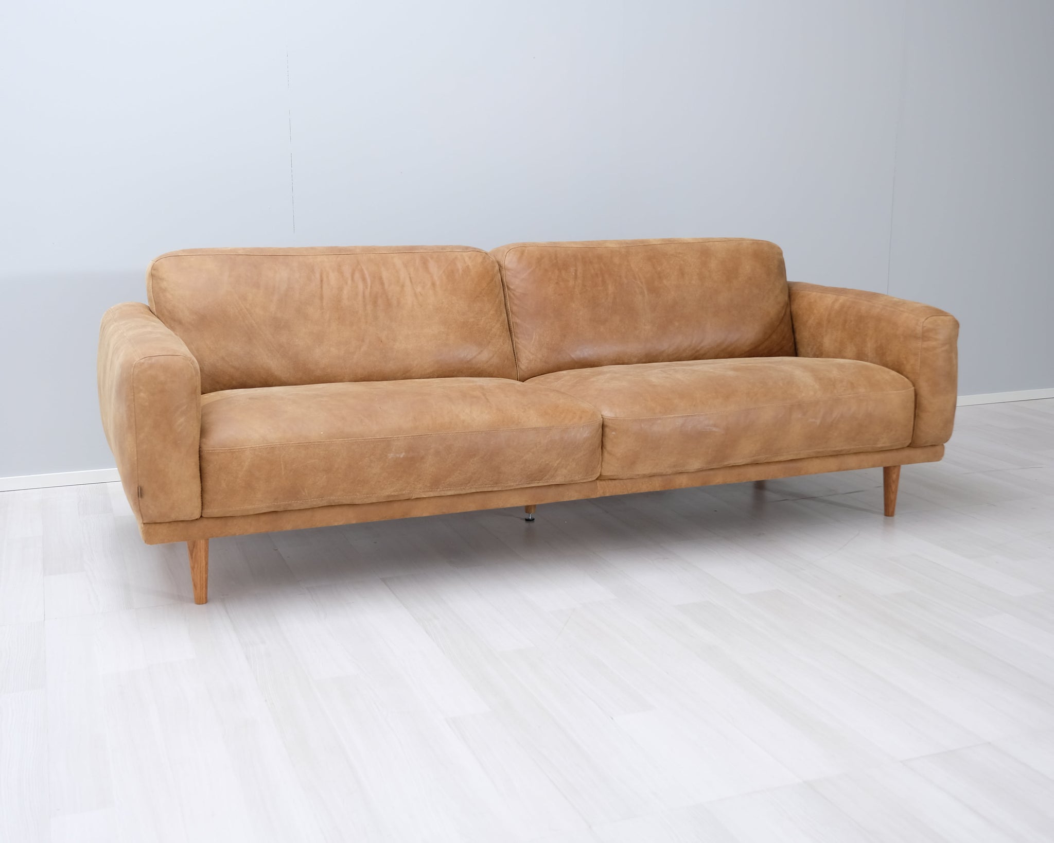 Askon näyttävä Kendo-sohva on trendikäs valinta kotiin kuin kotiin. Ruskea nahaverhoilu on klassinen valinta, joka vain paranee ajan myötä. Puusta valmistetut jalat.