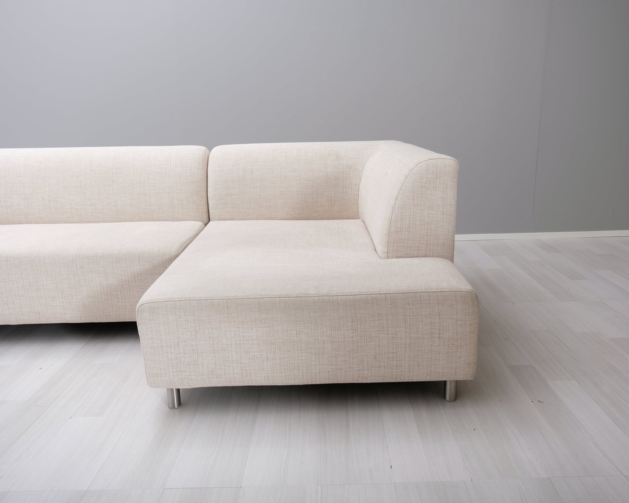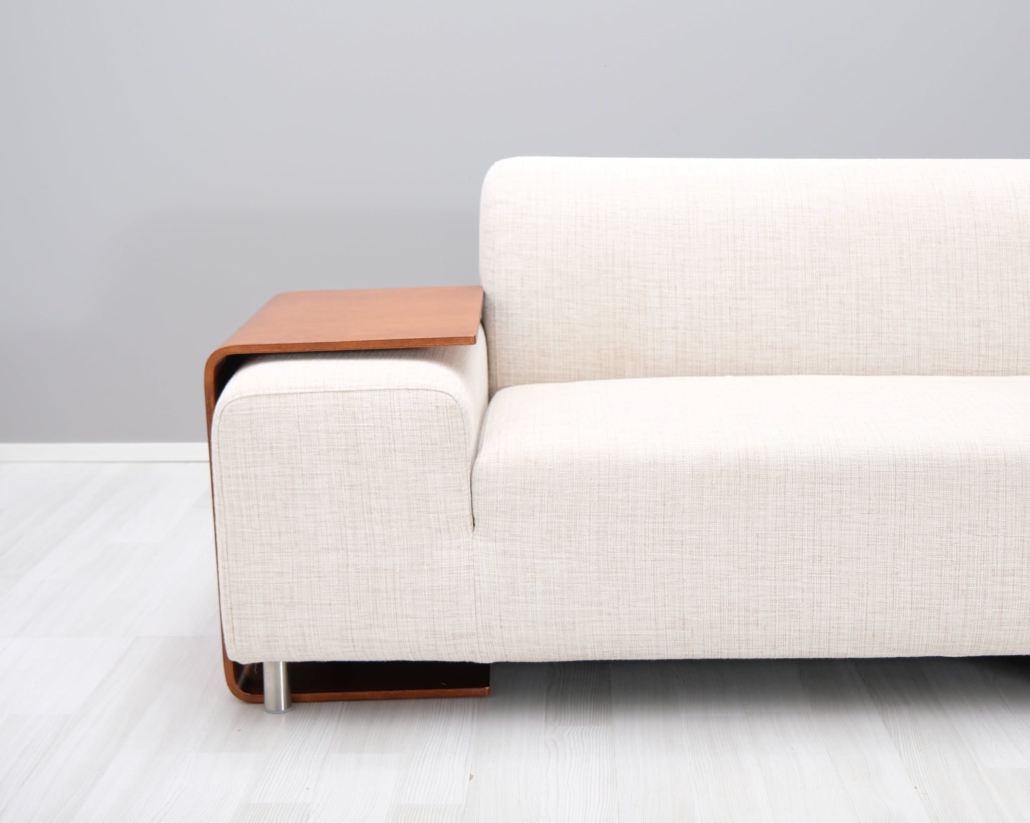 Adean Camp-sohva on ajaton moduulisohva, jonka paksut käsinojat ja selkeä muoto luovat ryhdikkään ilmeen. Moduulit ovat aina kauttaaltaan verhoiltuja, joten voit käyttää niitä yhdistettynä toisiinsa tai erillisinä istuimina. Irrotettava kangasverhoilu mahdollistaa helpon pesun ja tarjoaa myös mahdollisuuden muuttaa sohvan ulkonäköä. Tällä sohvalla on rungon puolesta vielä reippaasti käyttöikää jäljellä, mutta verhoilu vaatii päivityksen.