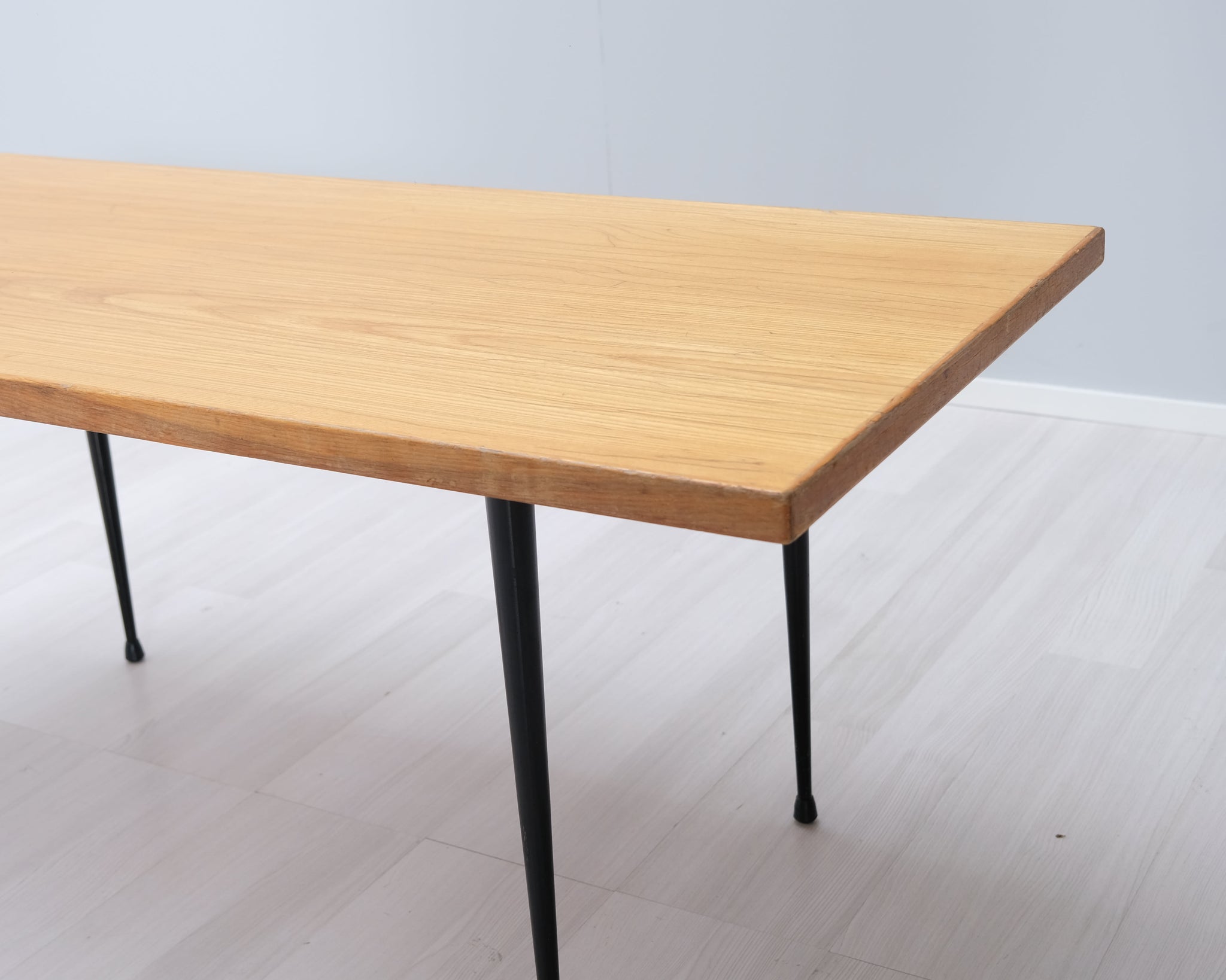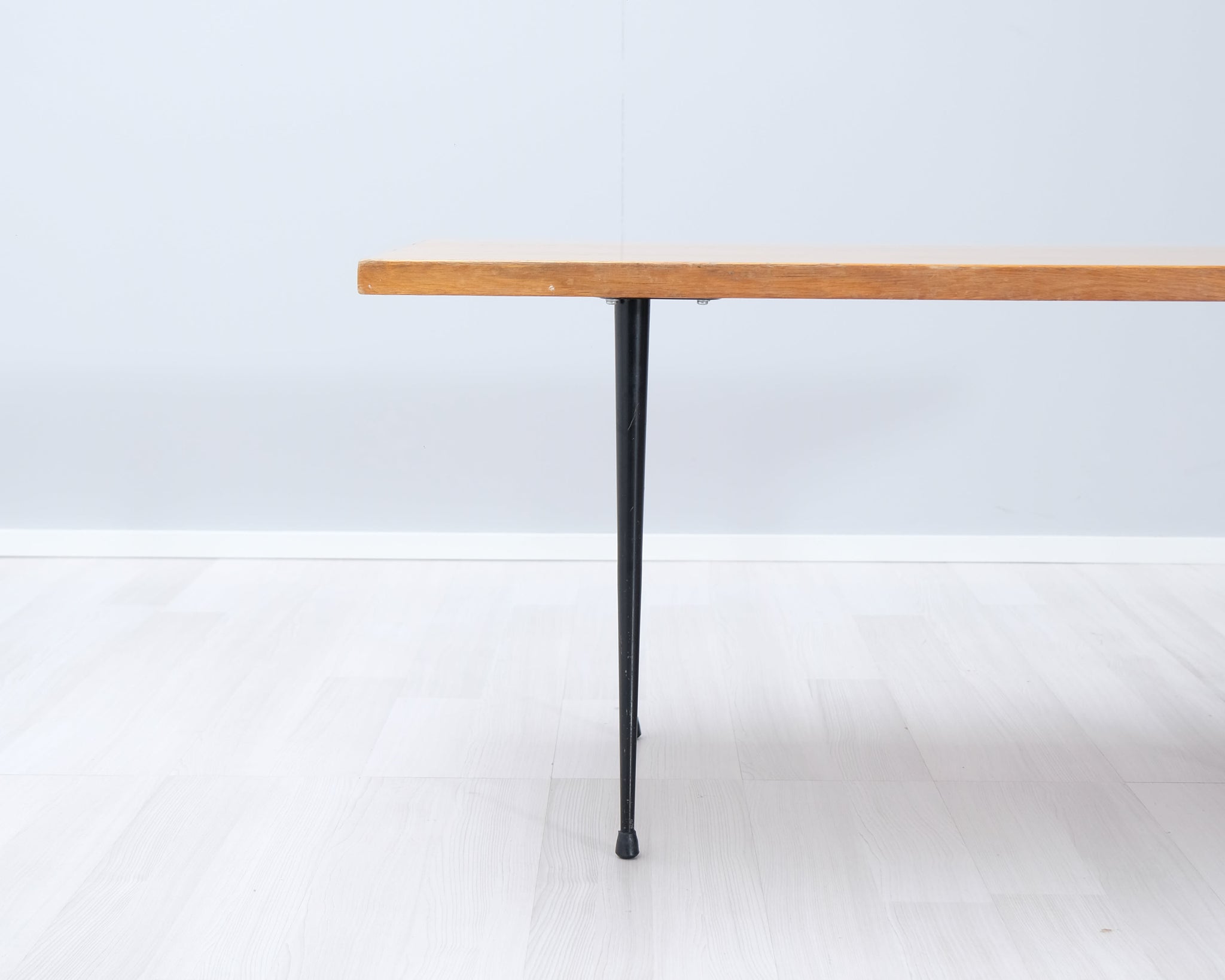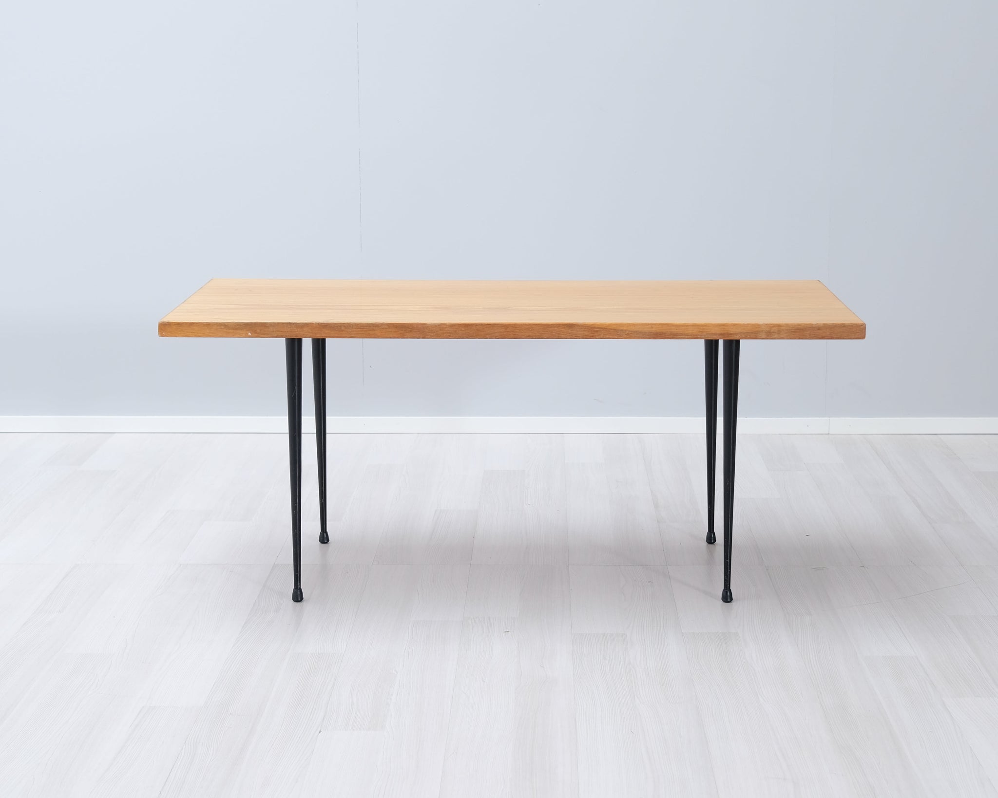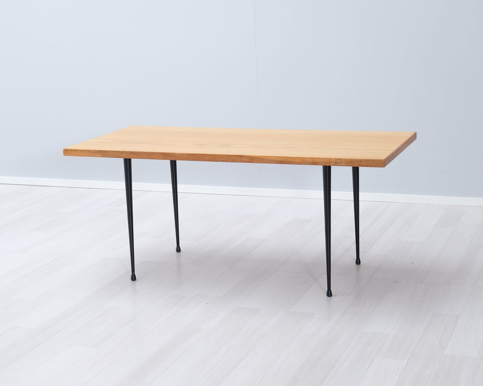 Kaunis 50-luvun vintage-sohvapöytä. Askon mallistoa, suunnittelijana tunnettu kotimainen suunnittelija Ilmari Lappalainen. Malli 3418. Kansi jalavaa, mustat metallijalat.